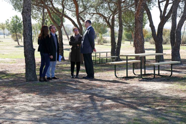 Imagen en alta resolución. Este enlace se abrirá mediante lightbox, puede haber un cambio de contextoLa Alcaldesa Noelia Posse, junto con el Concejal de Mejora y Mantenimiento de los Espacios Públicos, David Muñoz, y el concejal de Recursos Humanos Tecnológicos y Financieros y también presidente de la Junta de Distrito 3, Aitor Perlines, ha visitado hoy el Parque Nelson Mandela donde se han instalado mesas merendero. Se trata de una de las propuestas aprobadas por los vecinos y vecinas en los Presupuestos Participativos, a iniciativa de la Asociación de Vecinos Constelaciones.