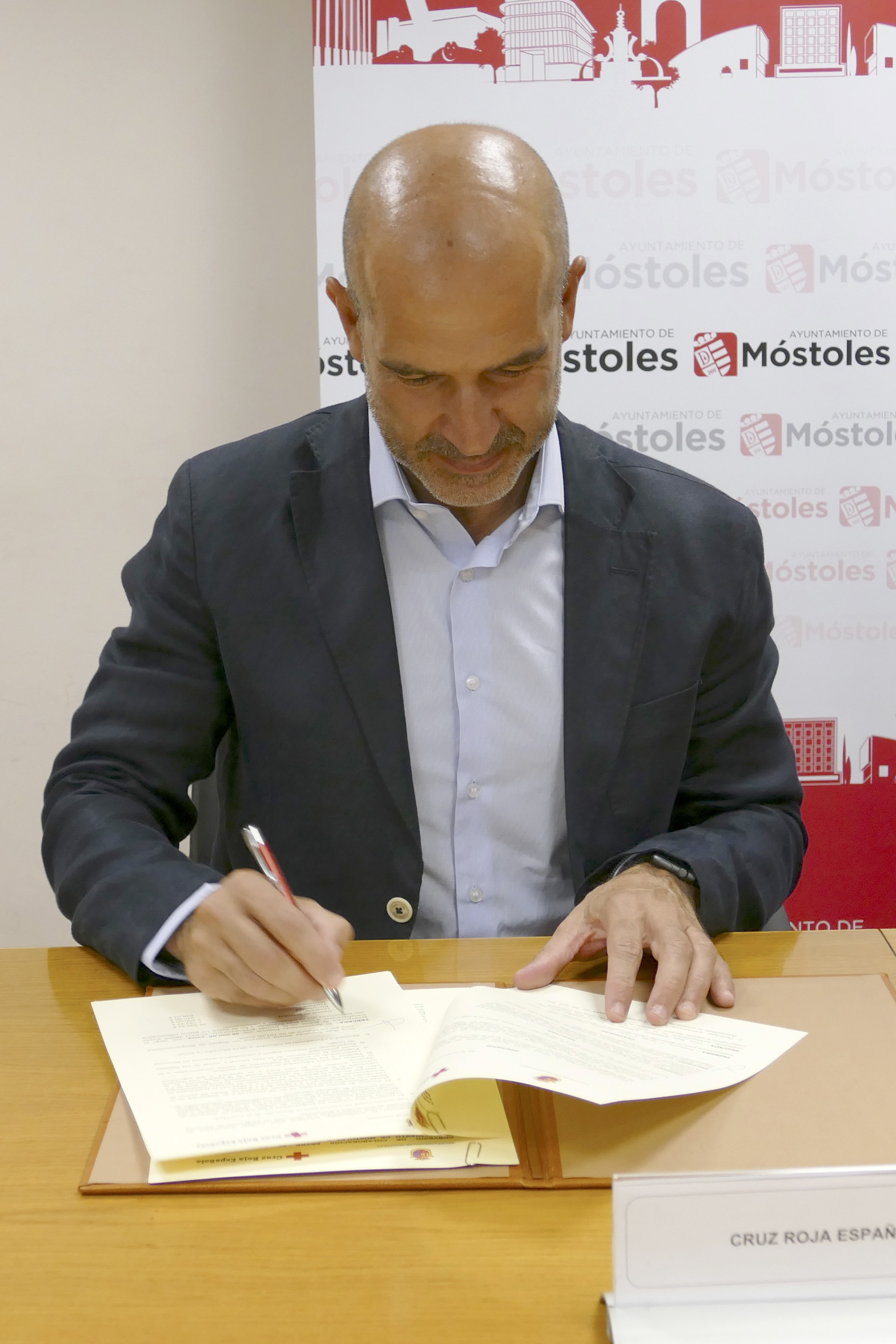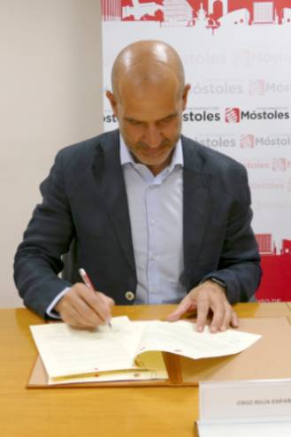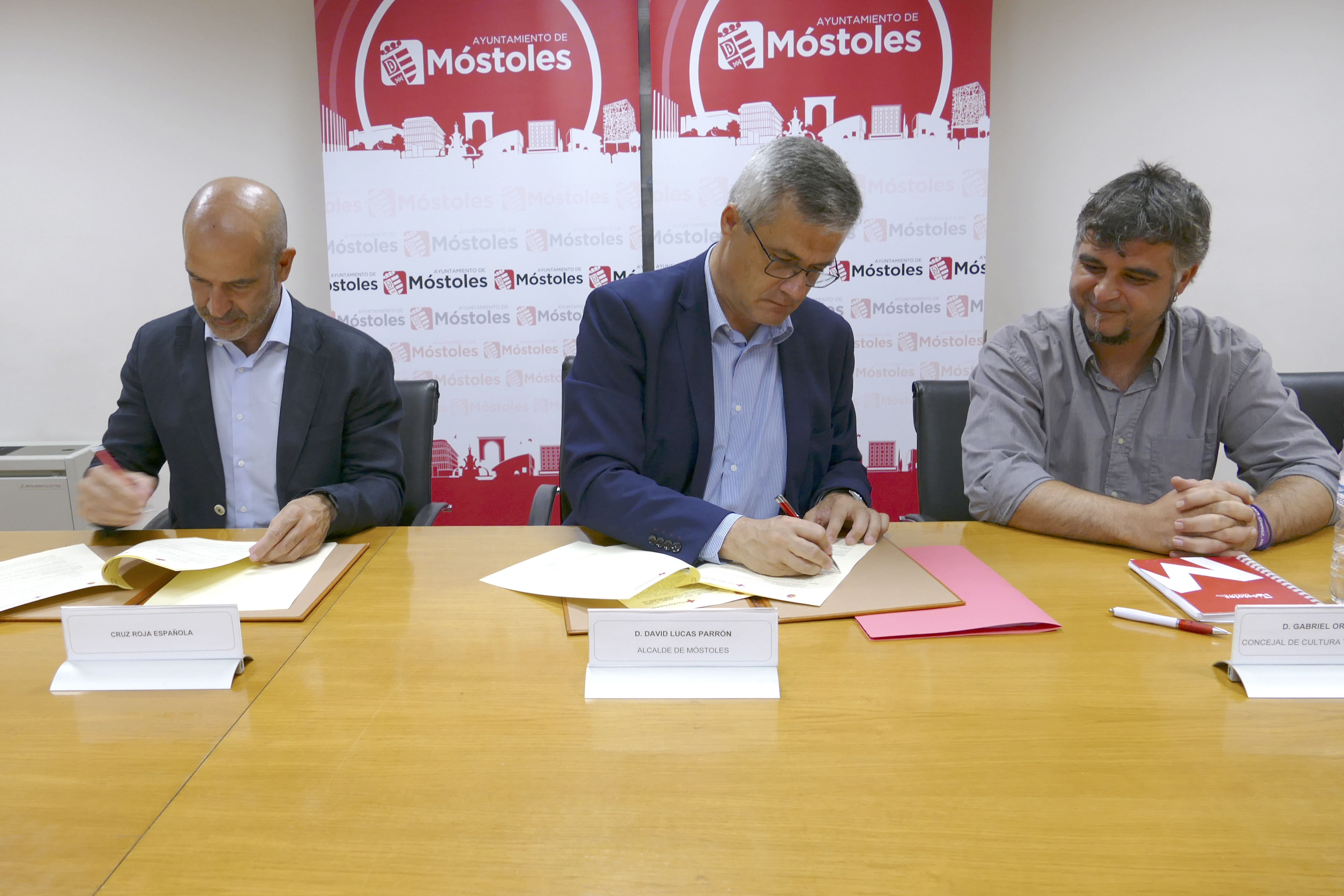 Imagen en alta resolución. Este enlace se abrirá mediante lightbox, puede haber un cambio de contextoEl alcalde de Móstoles, David Lucas, y el concejal de Cultura y Bienestar Social, Gabriel Ortega, han firmado esta mañana varios convenios de colaboración con RAIS Fundación, Punto Omega, Cruz Roja-Móstoles y el Grupo AMÁS-Social.