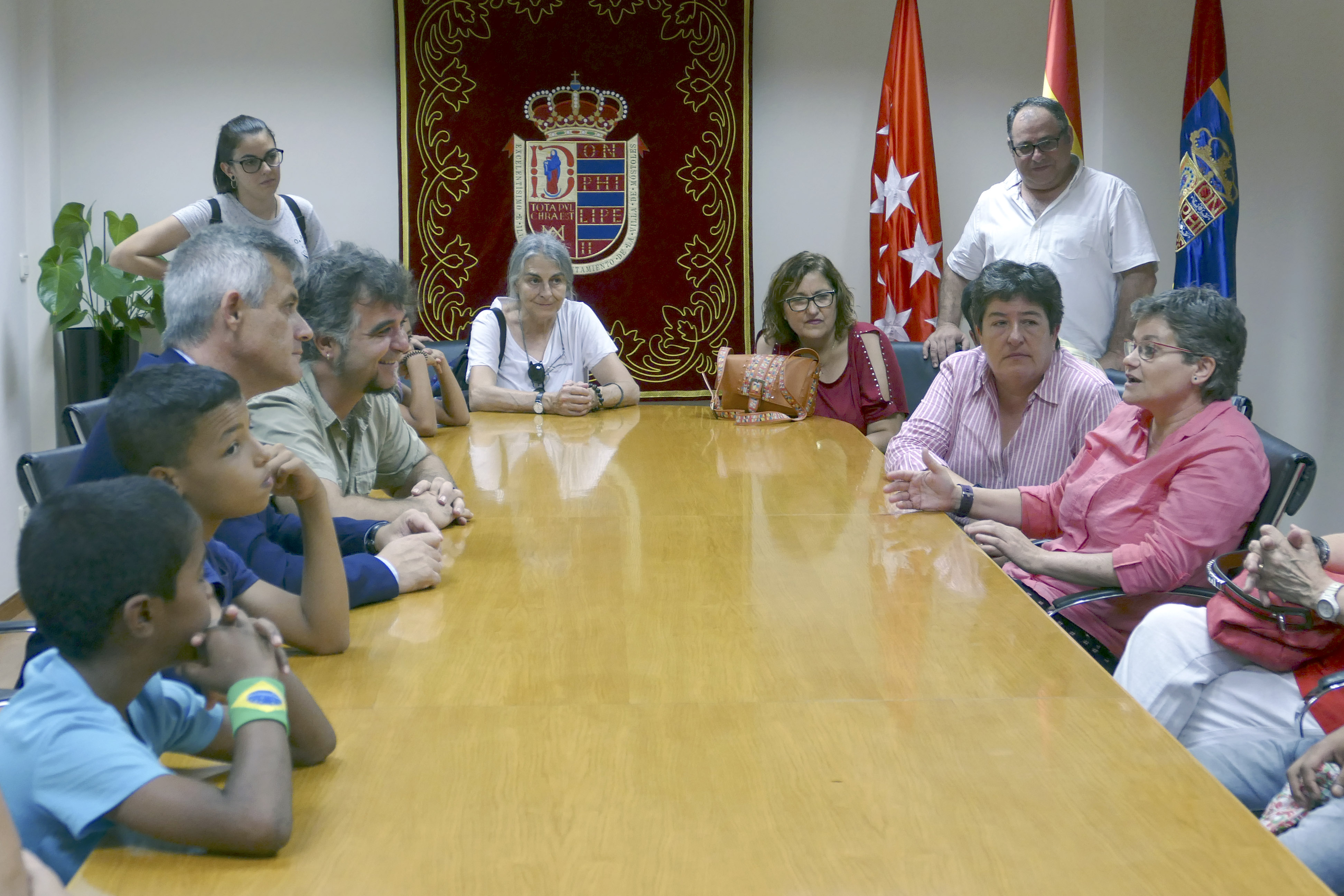 Esta tarde, el alcalde de Móstoles, David Lucas, y el concejal de Cultura y Bienestar Social, han recibido a los saharauis que conviven desde el pasado 23 de junio con familias de acogida mostoleñas, acompañados del presidente de la Asociación Móstoles con el Pueblo Saharaui, Carlos de la Mata, así como por el delegado saharaui en Madrid, Abdulah Arabi, y el secretario general de UJsario –Unión de Jóvenes, Mansur Moh-Fahdel.