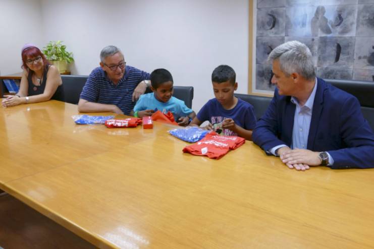• En este contexto, el alcalde de Móstoles, David Lucas, y el concejal de Cultura y Bienestar Social, Gabriel Ortega, han recibido esta tarde a los niños y niñas saharauis y sus familias de acogida.