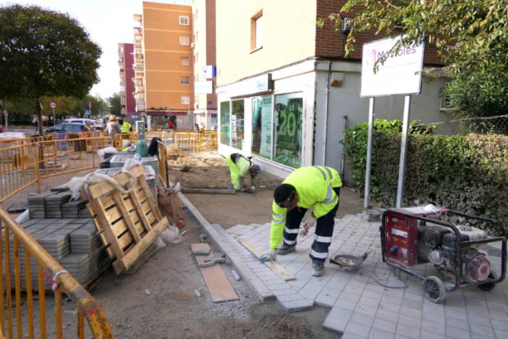 La obra ha sido visitada esta mañana por la alcaldesa de Móstoles, Noelia Posse y por el concejal de Deportes, Obras, Infraestructuras y Mantenimiento de Vías Públicas, Agustín Martín.