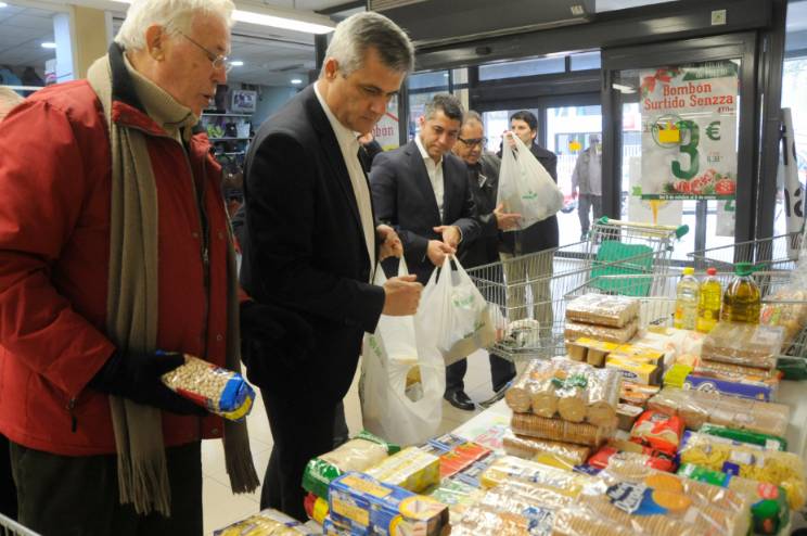 Imagen en alta resolución. Este enlace se abrirá mediante lightbox, puede haber un cambio de contextoEl alcalde, David Lucas, el concejal de Presidencia, Roberto Sánchez, el concejal de Hacienda y Patrimonio, Javier Gómez, concejal de Cultura y Bienestar Social, Gabriel Ortega, la concejala de Juventud y Participación Ciudadana, Arancha Fernández, la concejala de Régimen Interior, Susana García, el concejal de Medio Ambiente, Parques y Jardines y Limpieza Viaria, Miguel Angel Ortega, y la concejala de Educación, Isabel Cruceta, han participado esta mañana en la labor solidaria de recogida de alimentos a favor del Comedor Social Beato Simón de Rojas. La acción, organizada por la Federación de Asociaciones de Vecinos de Móstoles (FAVEM), ha tenido lugar en el Mercadona de la Calle Río Júcar, (frente al Hospital), en horario de 10 a 13 horas.