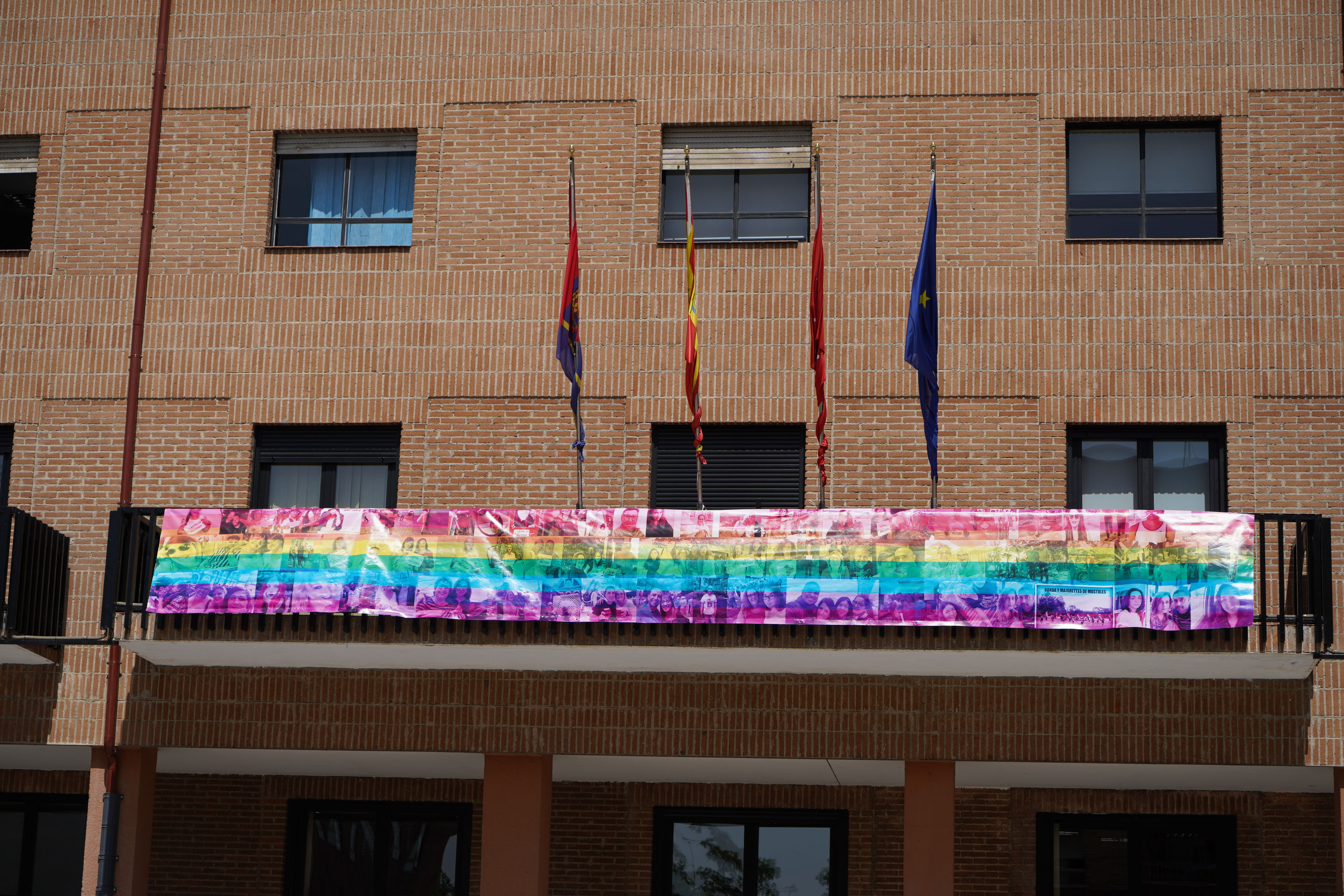 Imagen en alta resolución. Este enlace se abrirá mediante lightbox, puede haber un cambio de contextoCon motivo de la celebración del Día Internacional del Orgullo LGTBIQ, esta mañana se ha desplegado en el balcón de la Casa Consistorial la bandera multicolor que contiene las fotografías de las y los 120 primeros mostoleños que han participado en la propuesta promovida desde el Ayuntamiento, quienes han enviado sus fotos en redes sociales con el hashtag #MostolesconOrgullo.