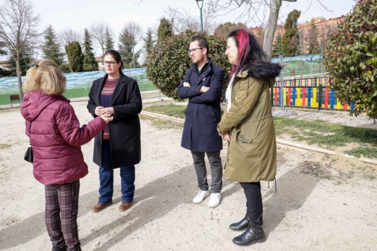 La Alcaldesa, Noelia Posse, acompañada del Concejal de Mejora y Mantenimiento de los Espacios Públicos, David Muñoz, y la Portavoz de Podemos, Mónica Monterreal, ha visitado hoy esta nueva área infantil.