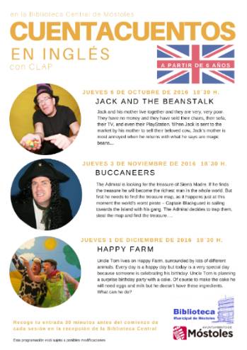 Paralelamente, se retoman los cuentacuentos en inglés, una actividad de animación a la lectura dirigida a niños a partir de 6 años que pretende aunar, de una manera lúdica, la enseñanza del idioma con la narración oral. Serán los primeros jueves de mes a las 18:30 horas en la Biblioteca Central, de la mano del grupo Clap.