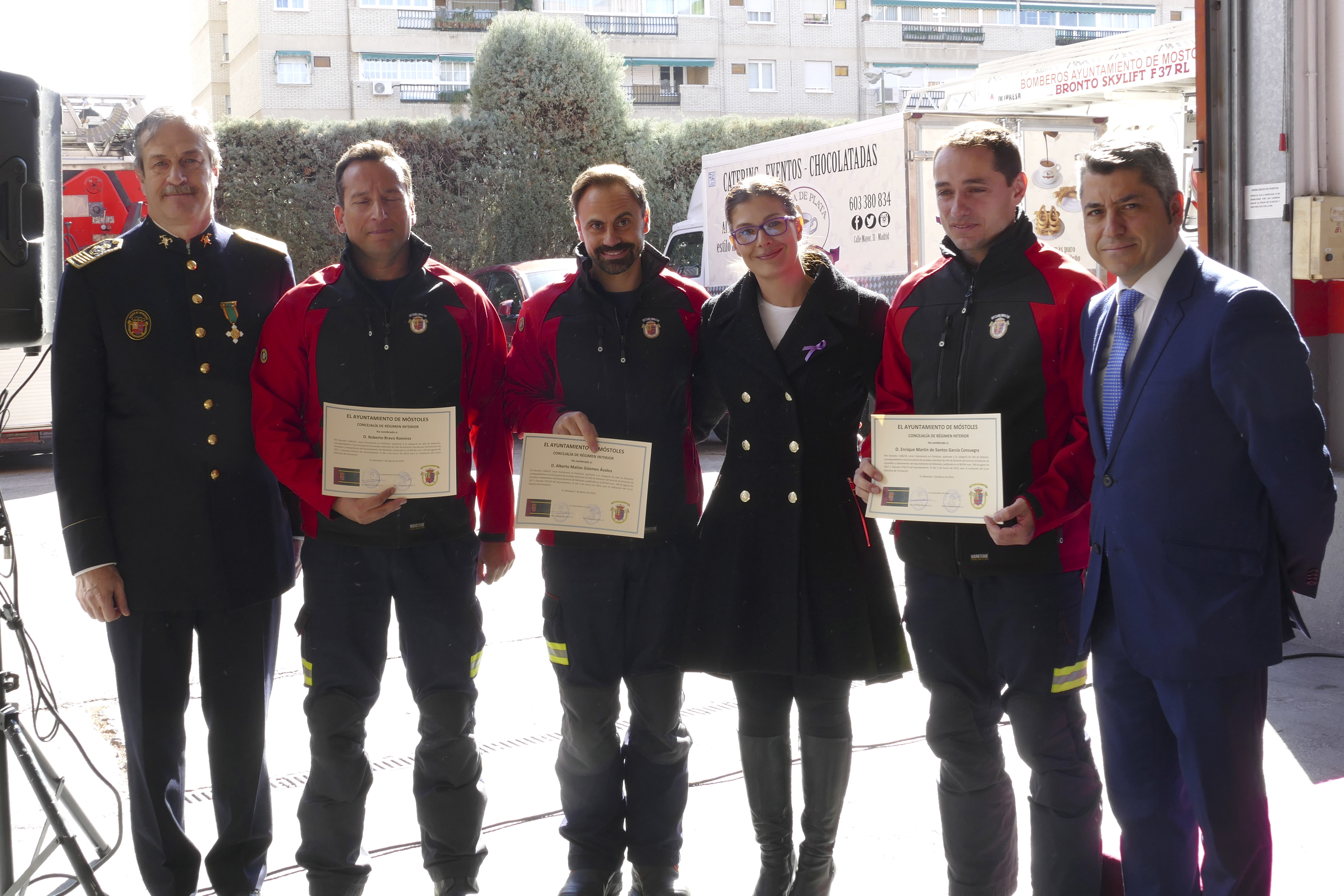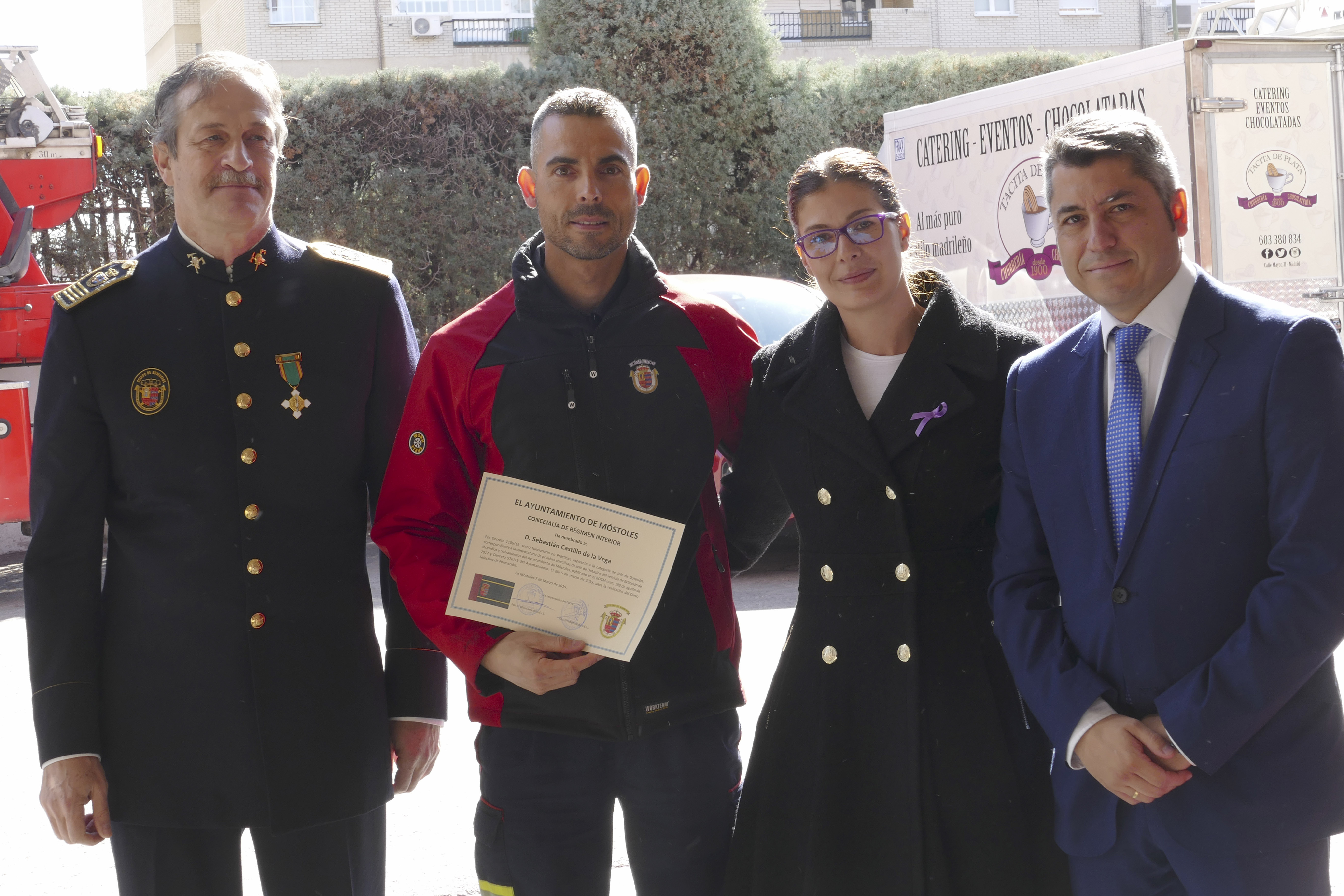 • La alcaldesa de Móstoles, Noelia Posse, agradeció el trabajo del concejal de Presidencia y Seguridad Ciudadana, Roberto Sánchez, y la "labor y entrega absoluta" de los bomberos de la ciudad.
