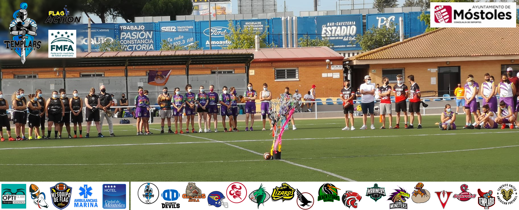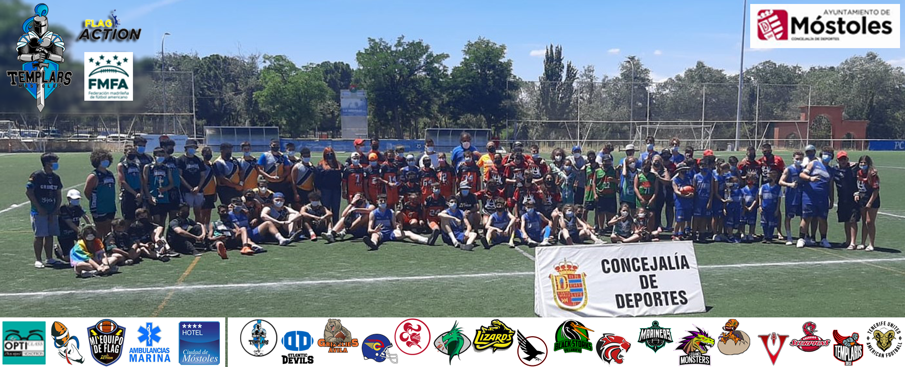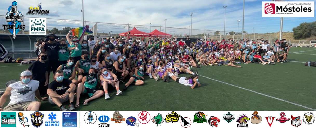 Imagen en alta resolución. Este enlace se abrirá mediante lightbox, puede haber un cambio de contextoEl torneo de Promoción e Integración del Flag Football organizado por Opticlass Móstoles Templars, Flag Action y FMFA, regresó por todo lo alto a Móstoles en los Campos de Iker Casillas. Dos años después, tras el parón derivado de la pandemia, regresaba la Iberian Flag Bowl a Móstoles, con medidas y protocolos COVID la jornada se desarrolló con absoluta normalidad, volviendo a tener un macro evento que reunió a 305 deportistas de 17 clubes con 26 equipos, en categorías Femenina, Open, U18 y U13, viniendo de Asturias, Castilla y León, Canarias, Cataluña, Valencia y Extremadura, con récord de participación de equipos de nueva formación.