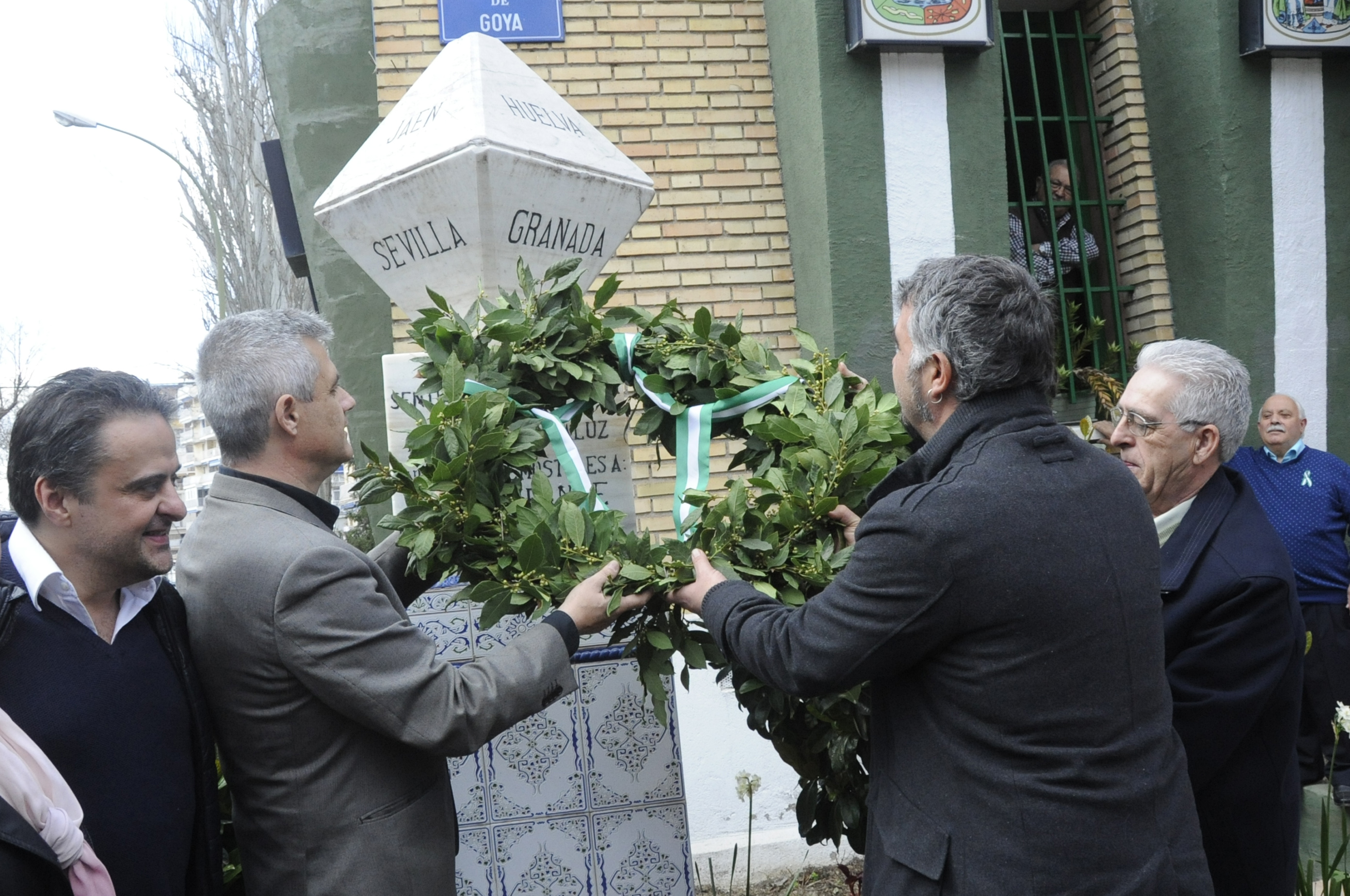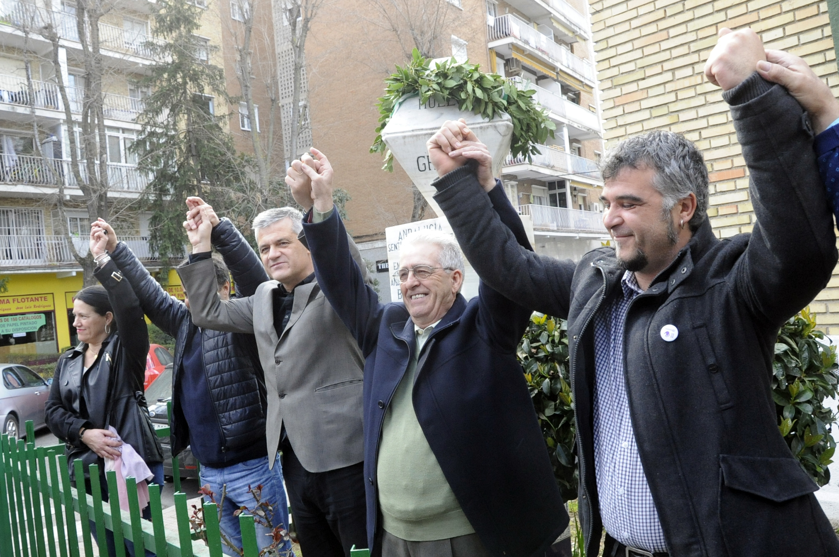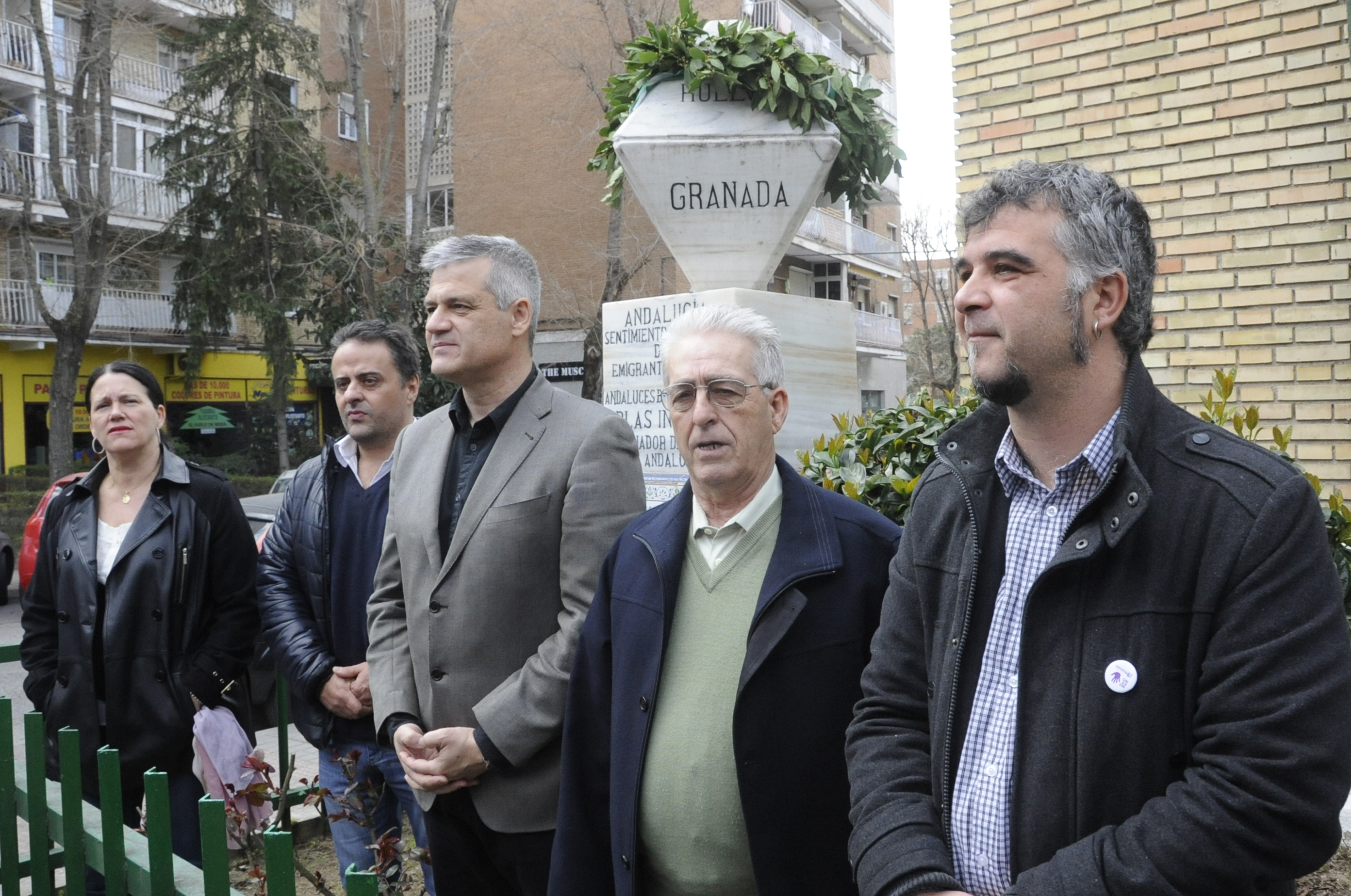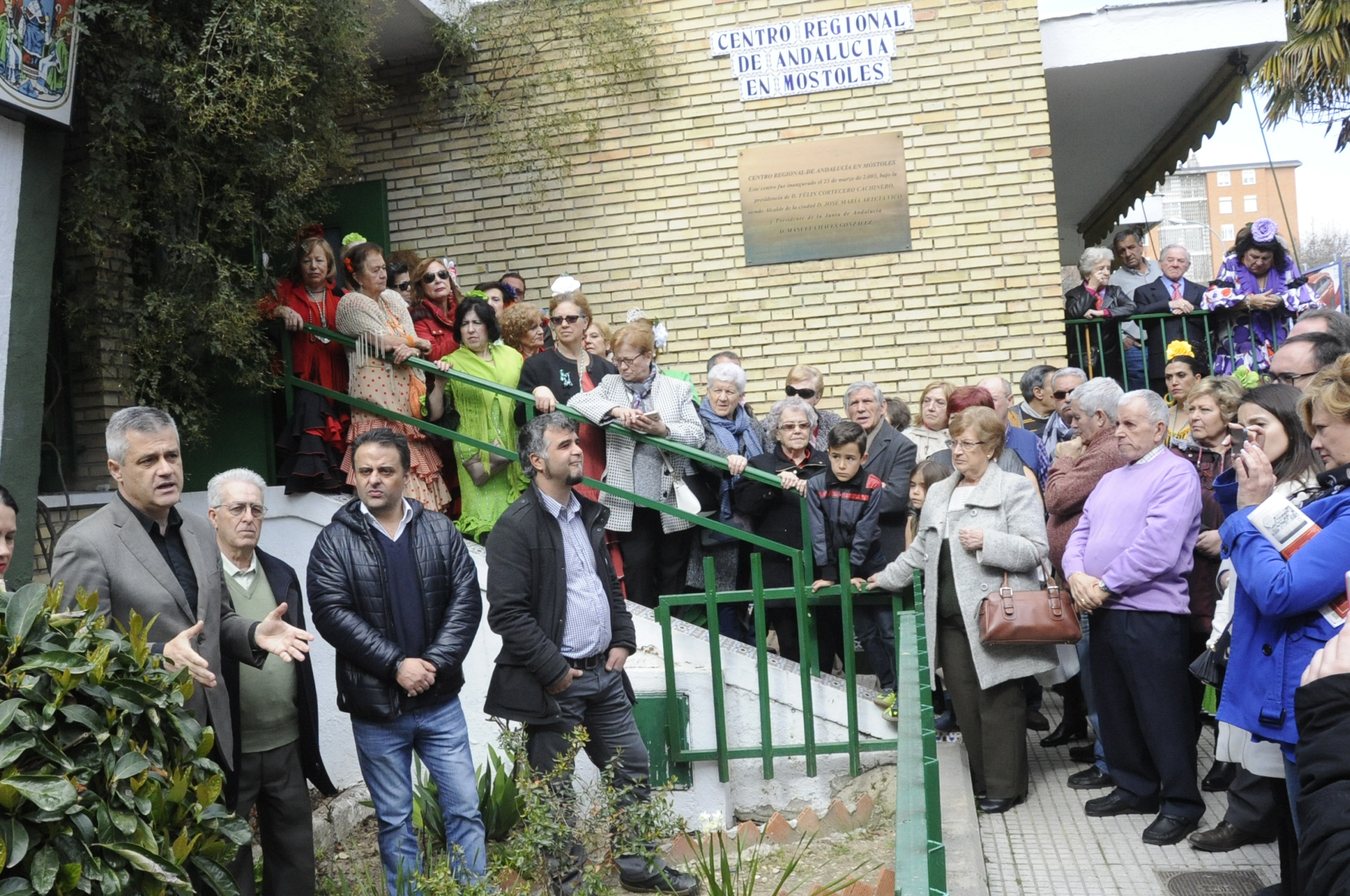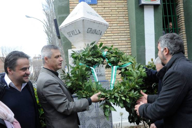 Imagen en alta resolución. Este enlace se abrirá mediante lightbox, puede haber un cambio de contextoUn emotivo acto que ha tenido lugar este domingo, en la sede de la Casa Regional de Andalucía de Móstoles, rodeado de un centenar de amigos, familiares y ciudadanos que quisieron acercarse hasta el citado lugar, donde tras unas palabras de bienvenida del presidente, Sebastián Romero, y de los representantes políticos, se colocó una corona de laurel sobre el monolito exterior y se escuchó el himno de Andalucía.