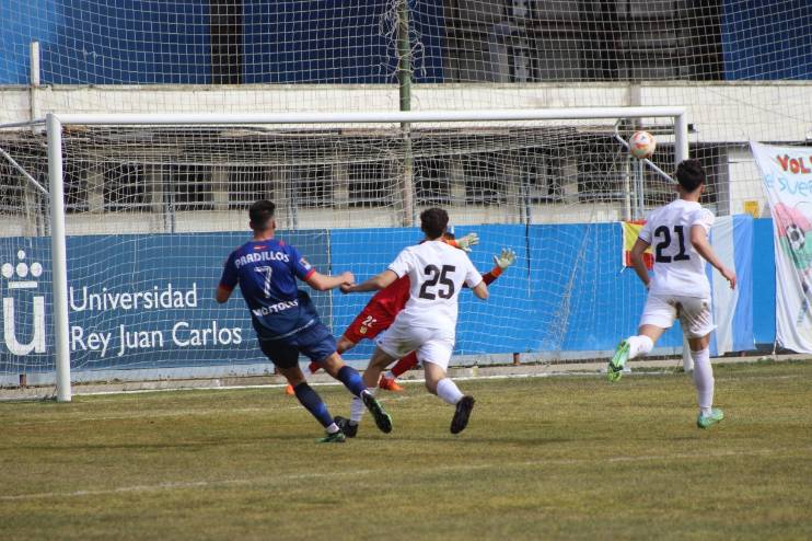 Desde el pitido inicial, el conjunto mostoleño salió decidido a sumar los tres puntos para desquitarse de la derrota ante el Aranjuez en el último partido de liga. A los 7 minutos Portilla certificaba el dominio local con un golazo. El capitán mostoleño inauguraba el marcador con un zurdazo desde fuera del área. Y 18 minutos después, en el 25, Portilla volvía a marcar gracias a una bonita vaselina que batía al guardameta visitante.
