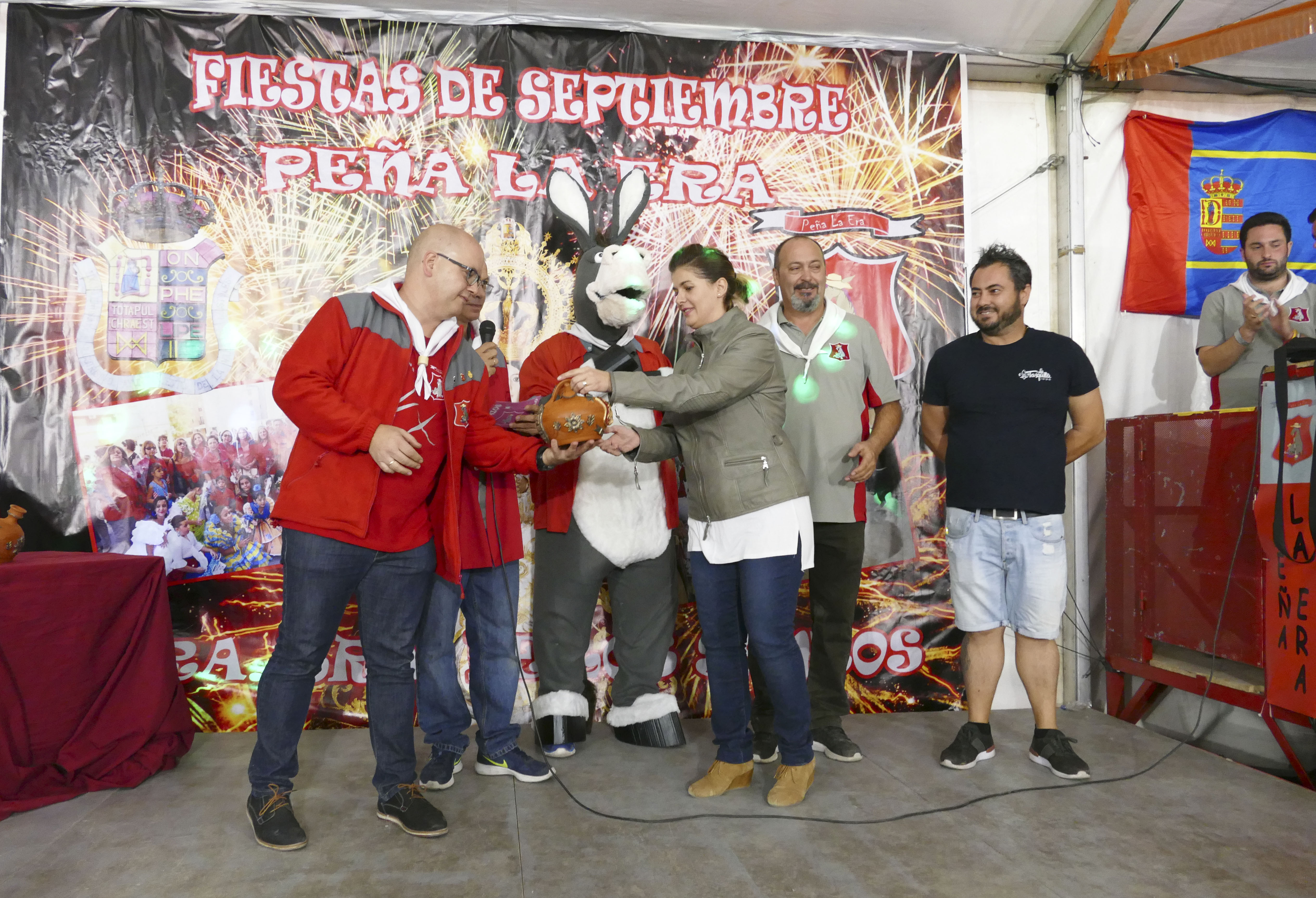 Como todos los años y con motivo de las Fiestas Patronales, la Peña la Era hizo entrega, en la noche del viernes, de los premios `Borriquillo´ en su caseta de Finca Liana. En esta ocasión, los premios han recaído en la Banda Municipal Juvenil de Móstoles, recogido por Juan Miguel López, en el propietario del bar la Tasquita, Óscar Gordo, y en el primer presidente de la Federación de Peñas de Móstoles, Adolfo Ruiz.