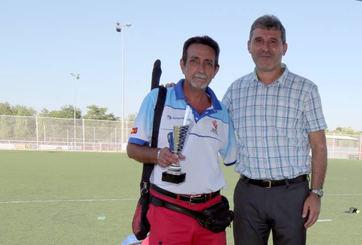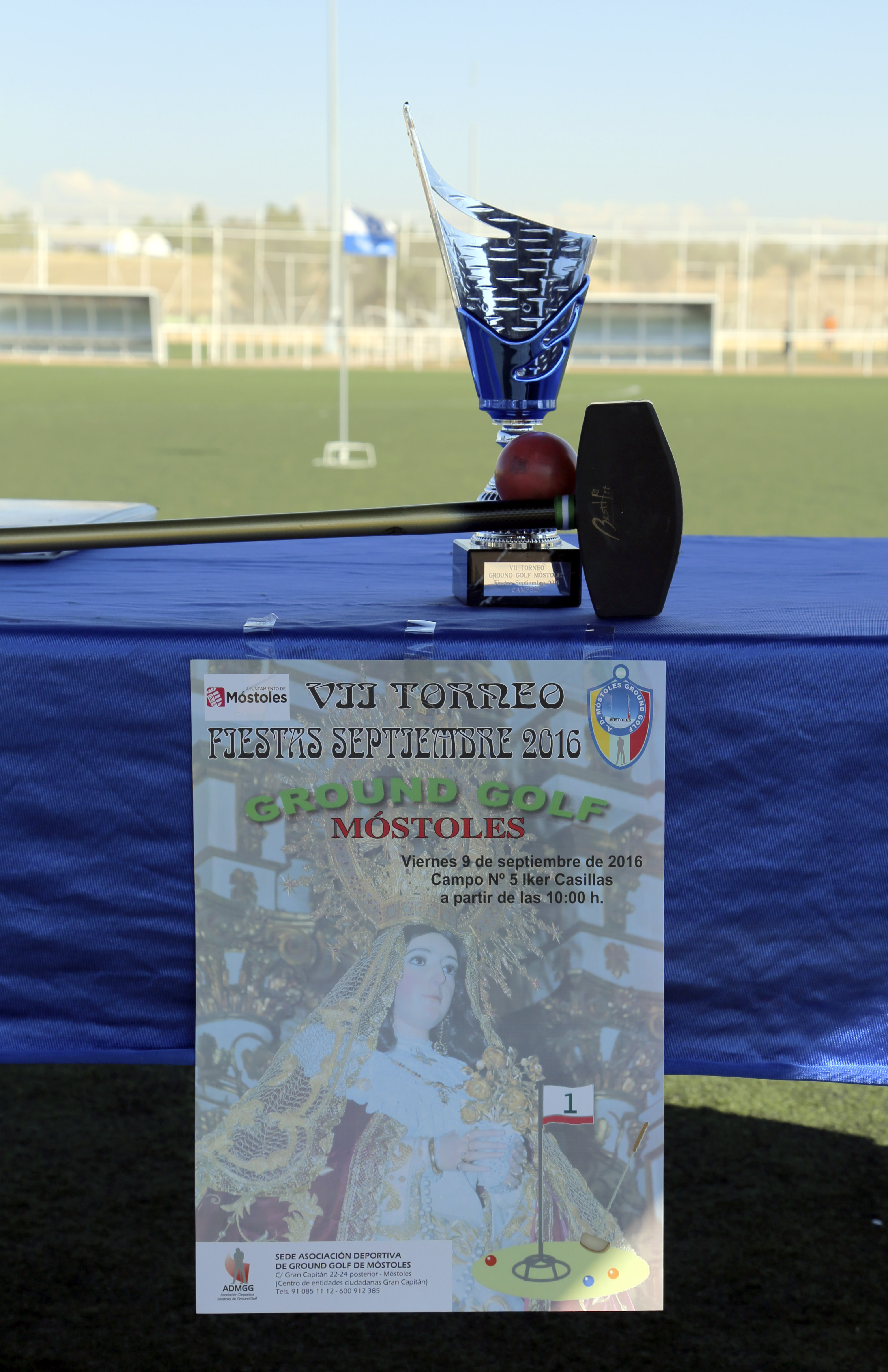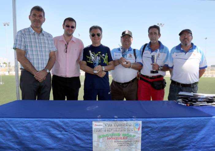 Imagen en alta resolución. Este enlace se abrirá mediante lightbox, puede haber un cambio de contextoEsta mañana se ha desarrollado en los campos de fútbol Iker Casillas de Móstoles, en el marco del programa de las Fiestas de septiembre, el VII Torneo Internacional de Ground Golf . Al acto ha asistido el concejal de Deportes, Agustín Martín, quien ha entregado los trofeos a los ganadores.