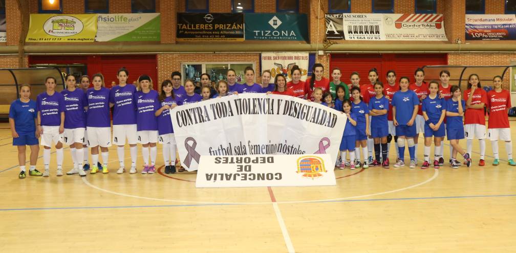 Niñas y chicas de las categorías alevín, infantil, cadete y juvenil del F.S.F. Móstoles jugaron con el objetivo de visibilizar el fútbol femenino como una muestra para conseguir la Igualdad en la sociedad. Posteriormente, se procedió a la lectura de un manifiesto reclamando el derecho de las mujeres a disfrutar de las mismas oportunidades que los hombres y a vivir una vida libre de violencia y discriminación.