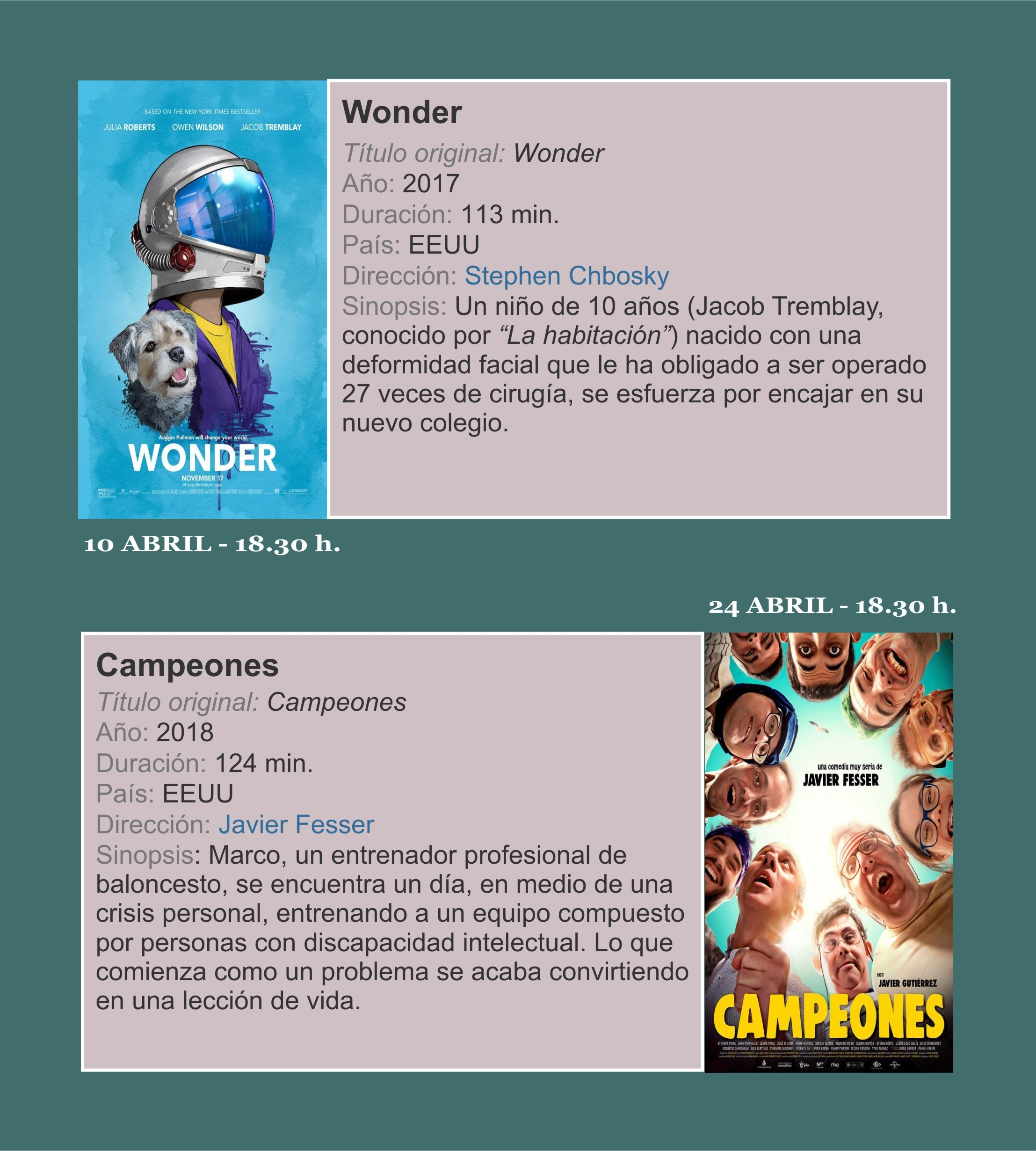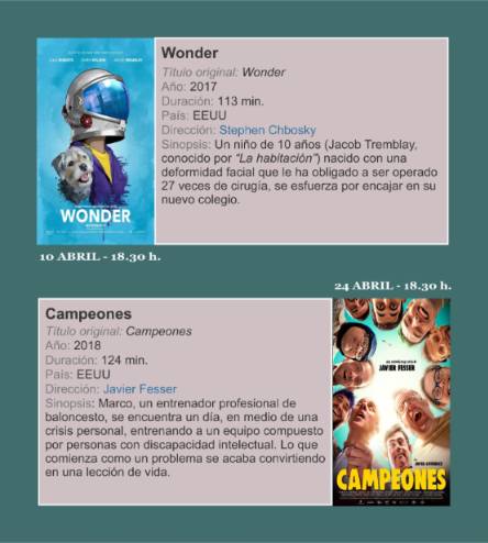 - Todos los miércoles de abril, a las 18:30 horas, con entrada gratuita, en versión original con subtítulos en castellano.