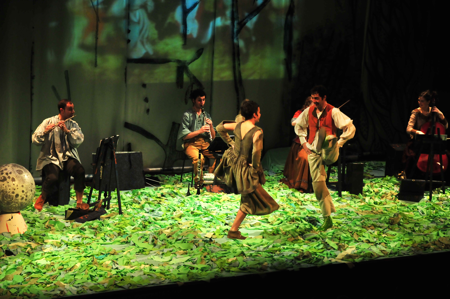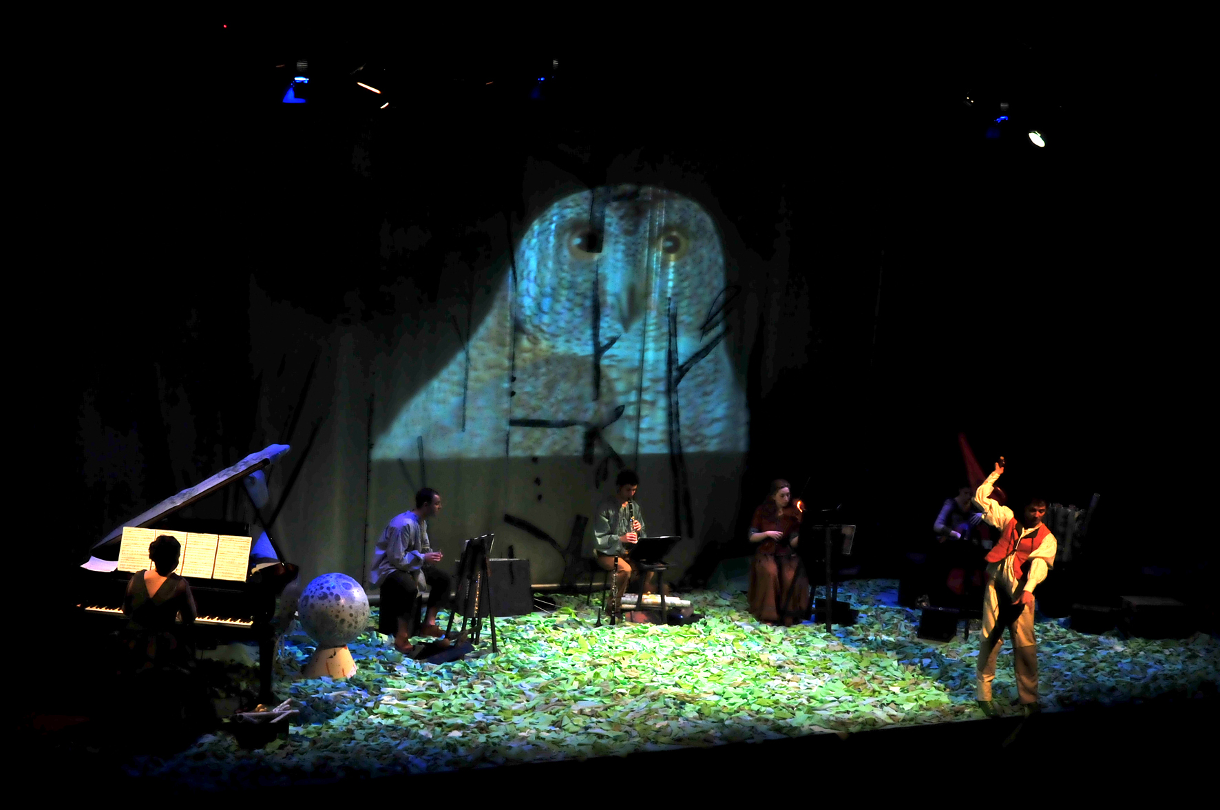Durante el espectáculo, de una hora de duración aproximadamente, se escuchan diversos sonidos que se distinguen en un mismo paraje durante el día y la noche y podremos percibir cómo estos sonidos naturales son absorbidos por instrumentos que los convierten en música de compositores extraordinarios, como Stravinsky o Béla Bartók.