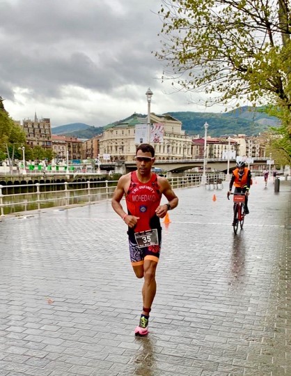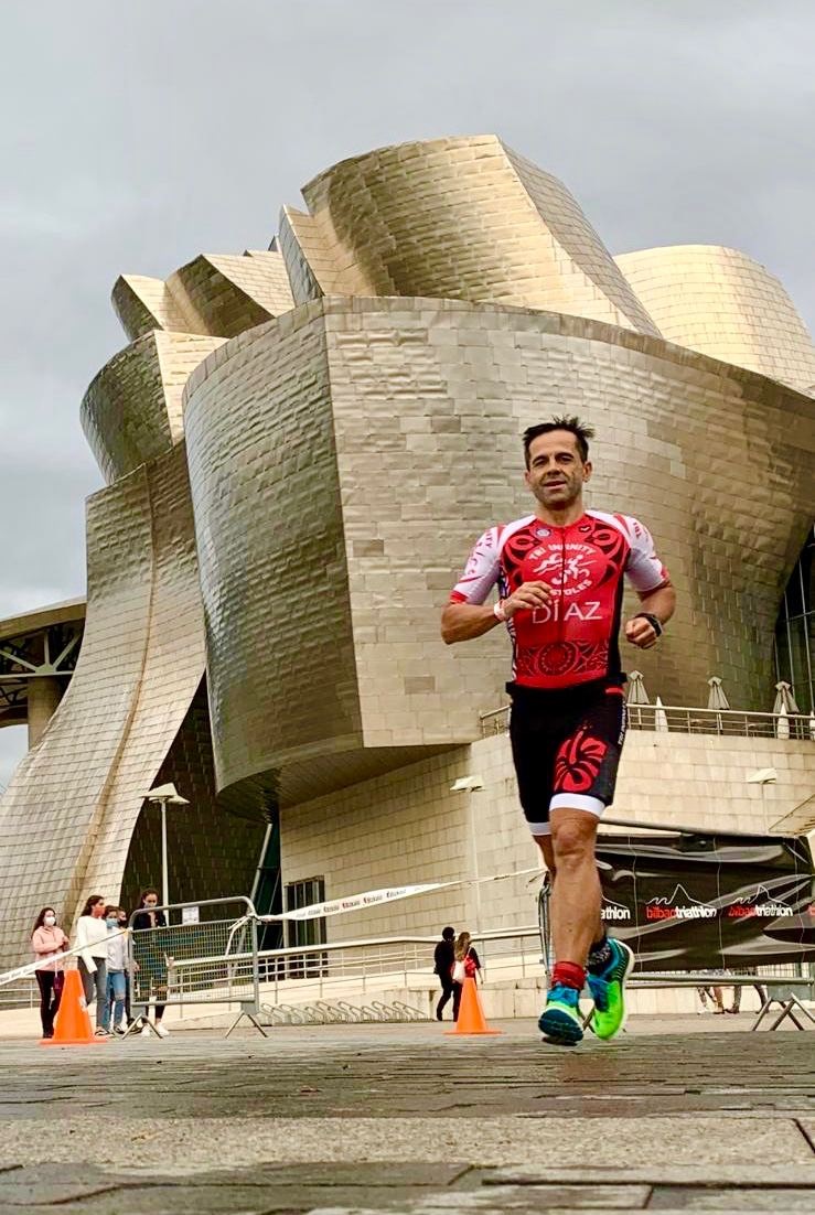 Imagen en alta resolución. Este enlace se abrirá mediante lightbox, puede haber un cambio de contextoEl pasado sábado 26 de septiembre se celebró en Bilbao el Campeonato de España de Triatlón de media distancia que, a pesar de las condiciones meteorológicas adversas, congregó a cerca de 500 triatletas. La prueba constó de 1,9 km de natación en la ría de Bilbao, 84 km de ciclismo a una sola vuelta y 20 km de carrera a pie junto a la ría.