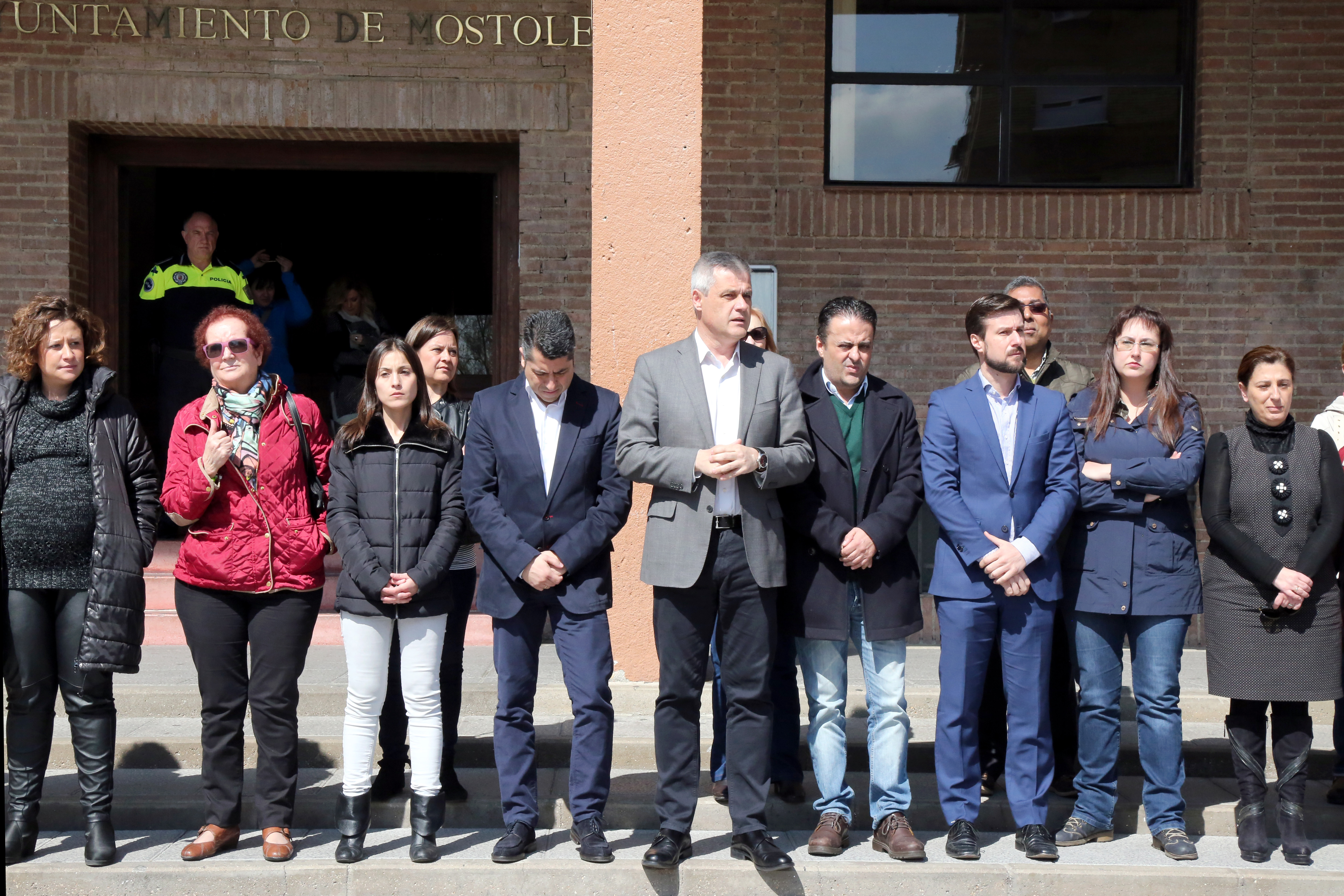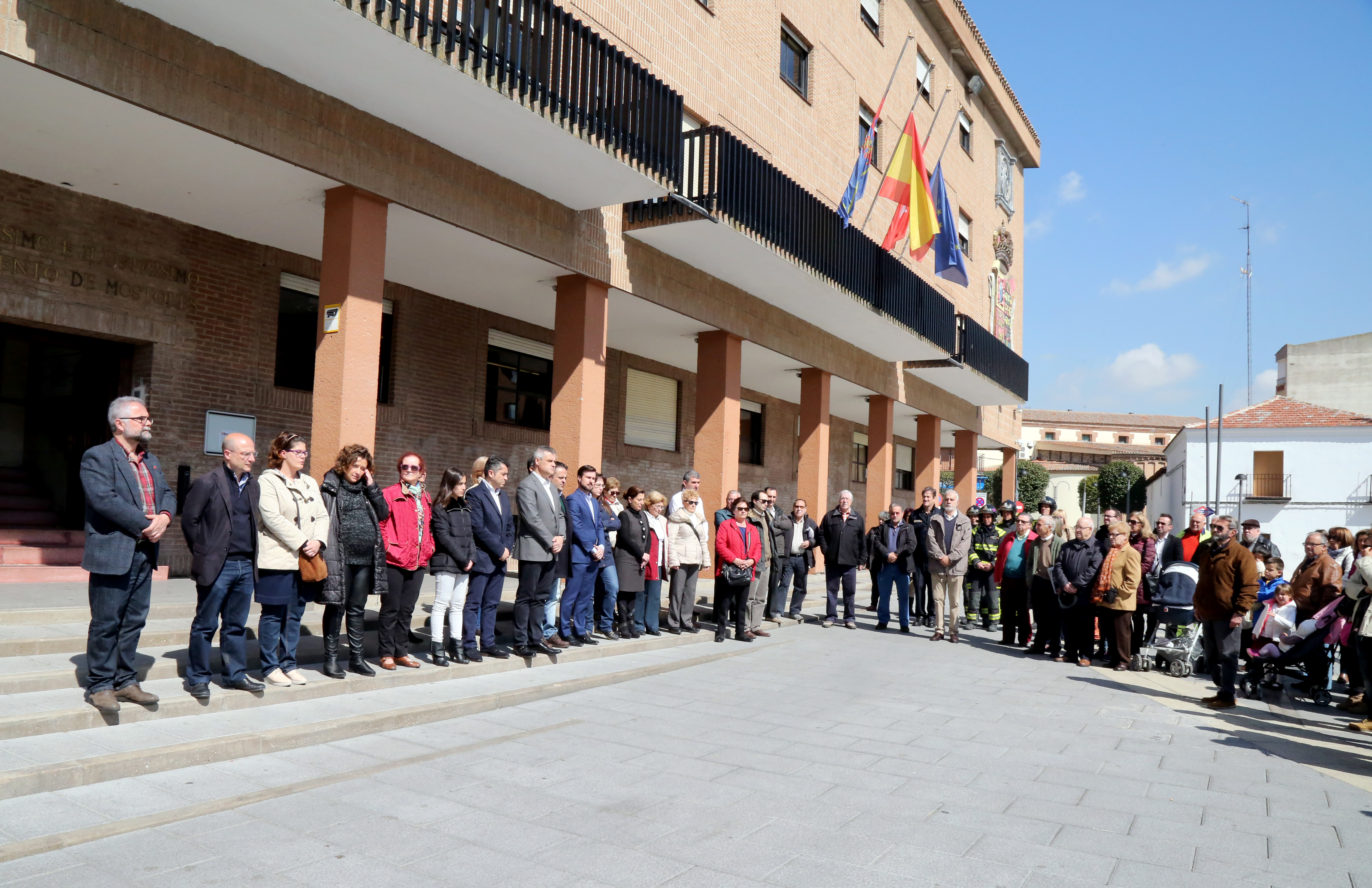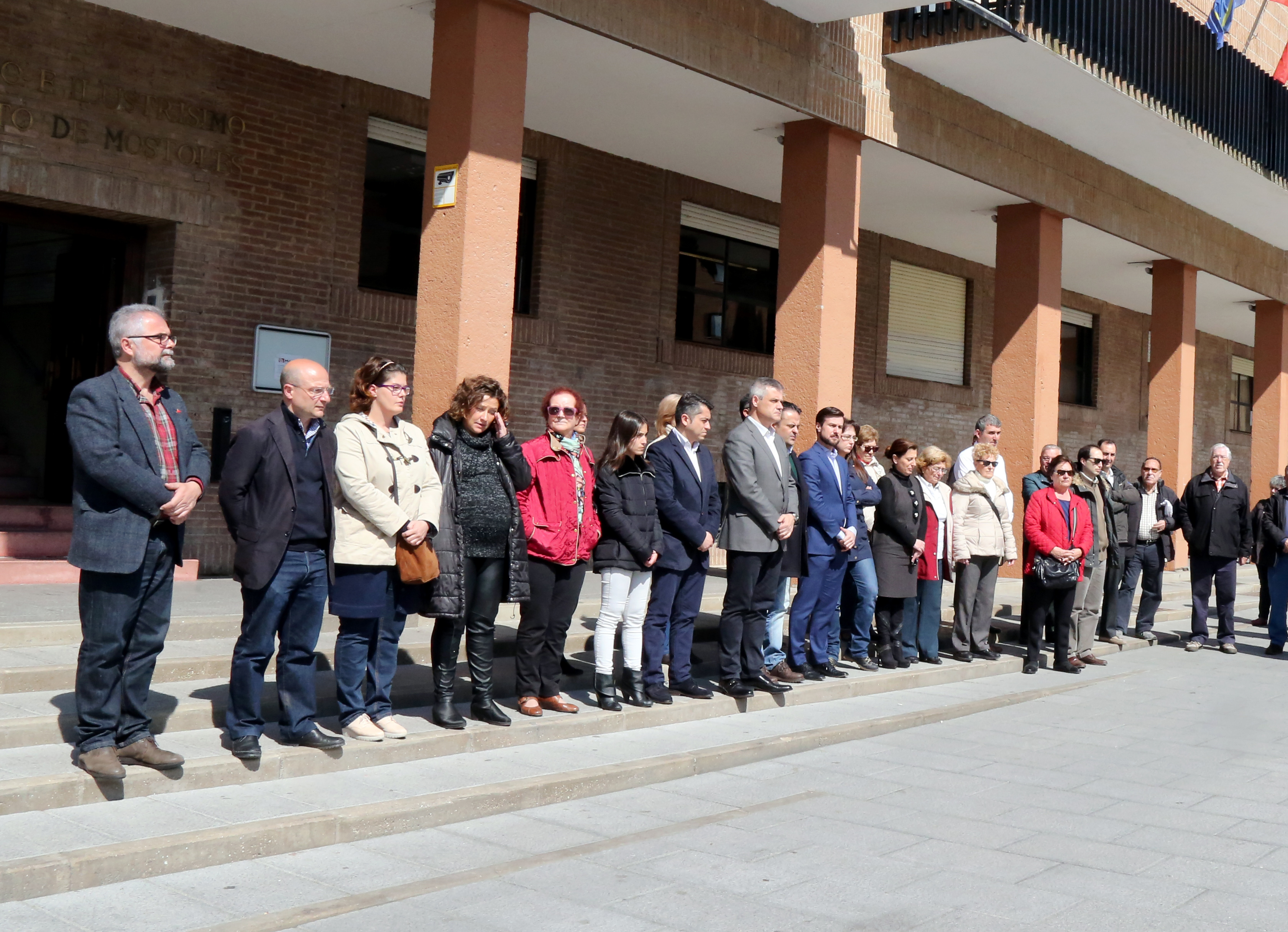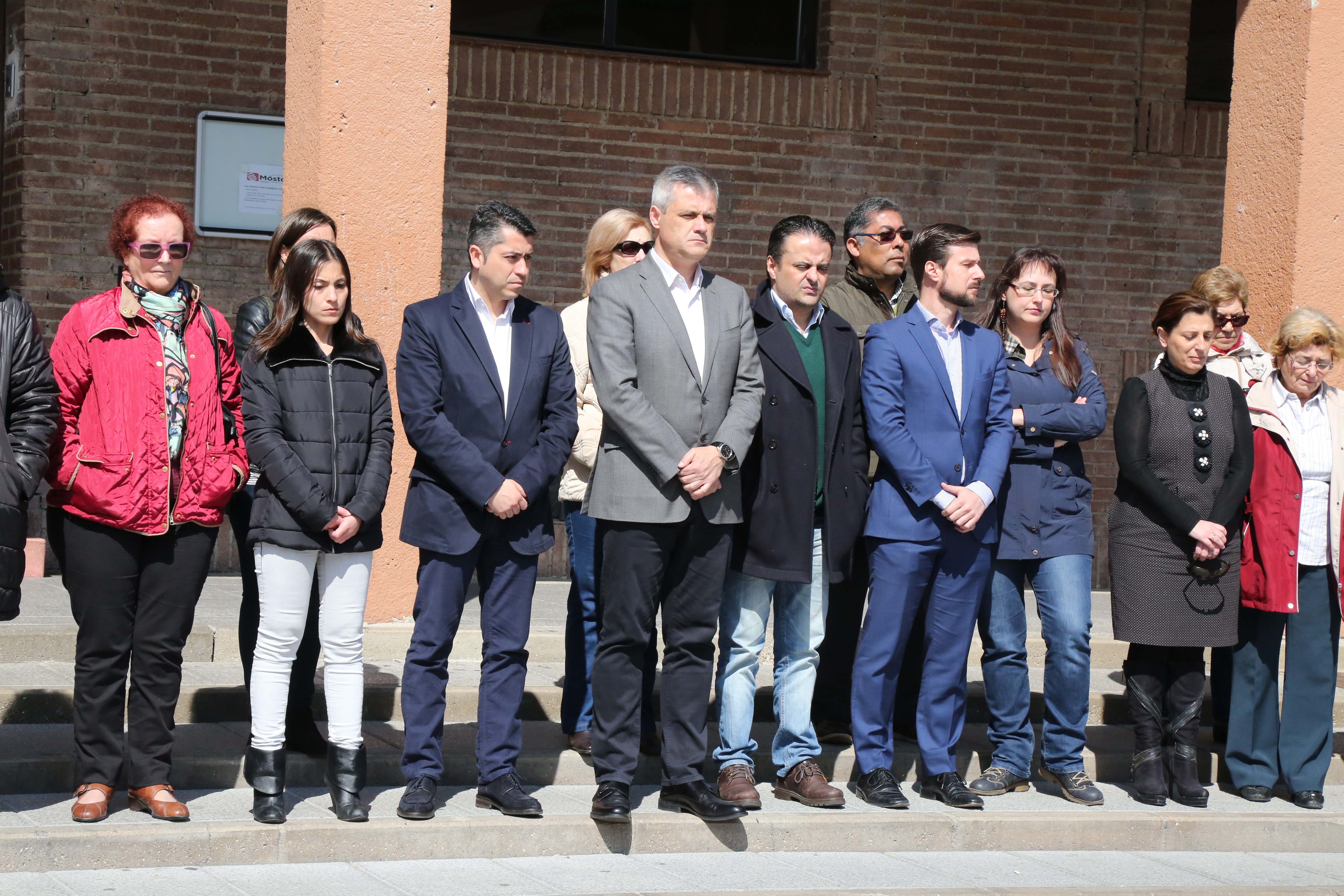 Imagen en alta resolución. Este enlace se abrirá mediante lightbox, puede haber un cambio de contextoLa Corporación Municipal, junto a vecinos de Móstoles, han guardado este medio día un minuto de silencio en repulsa por los atentados de Bruselas ocurridos en el día de ayer.
