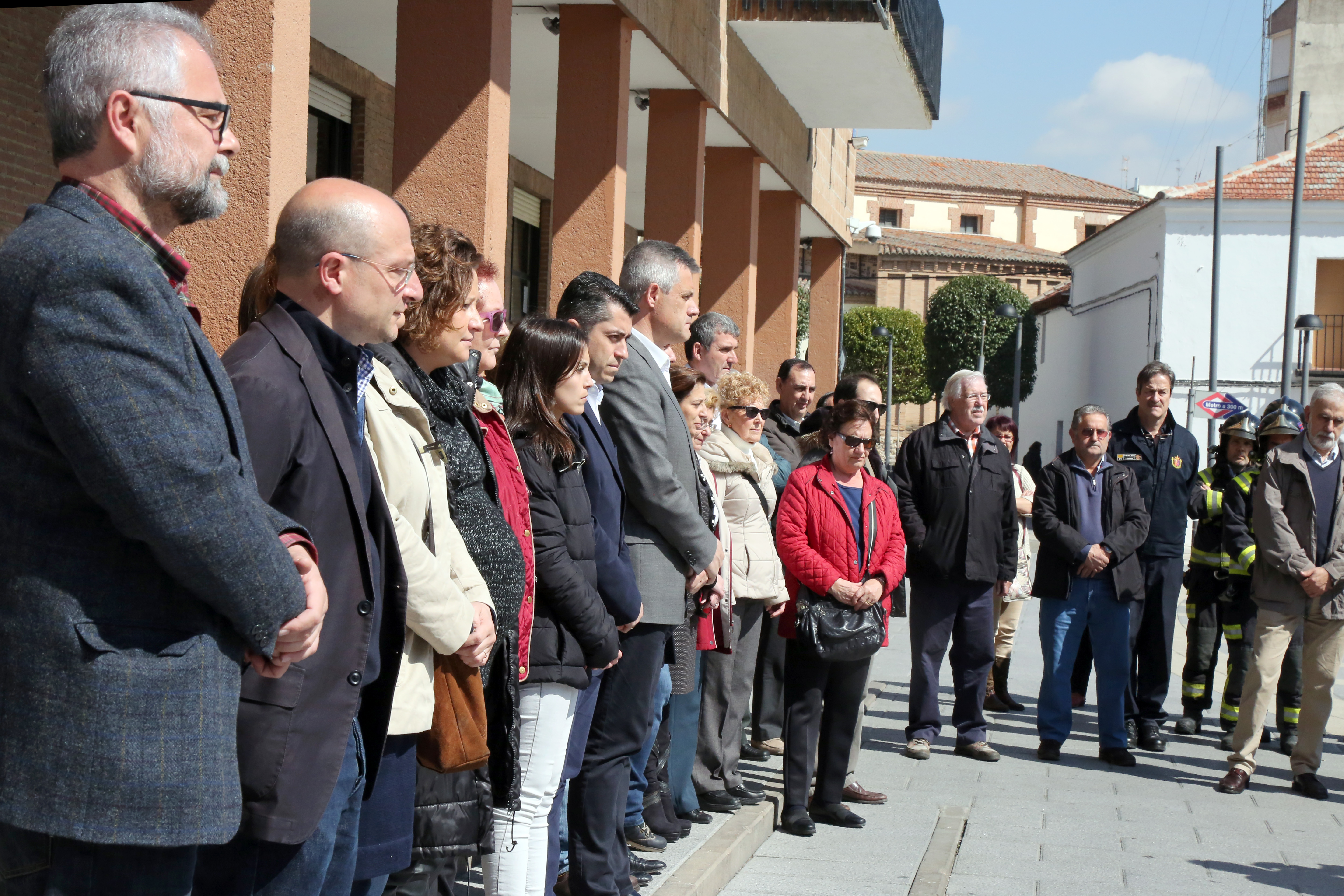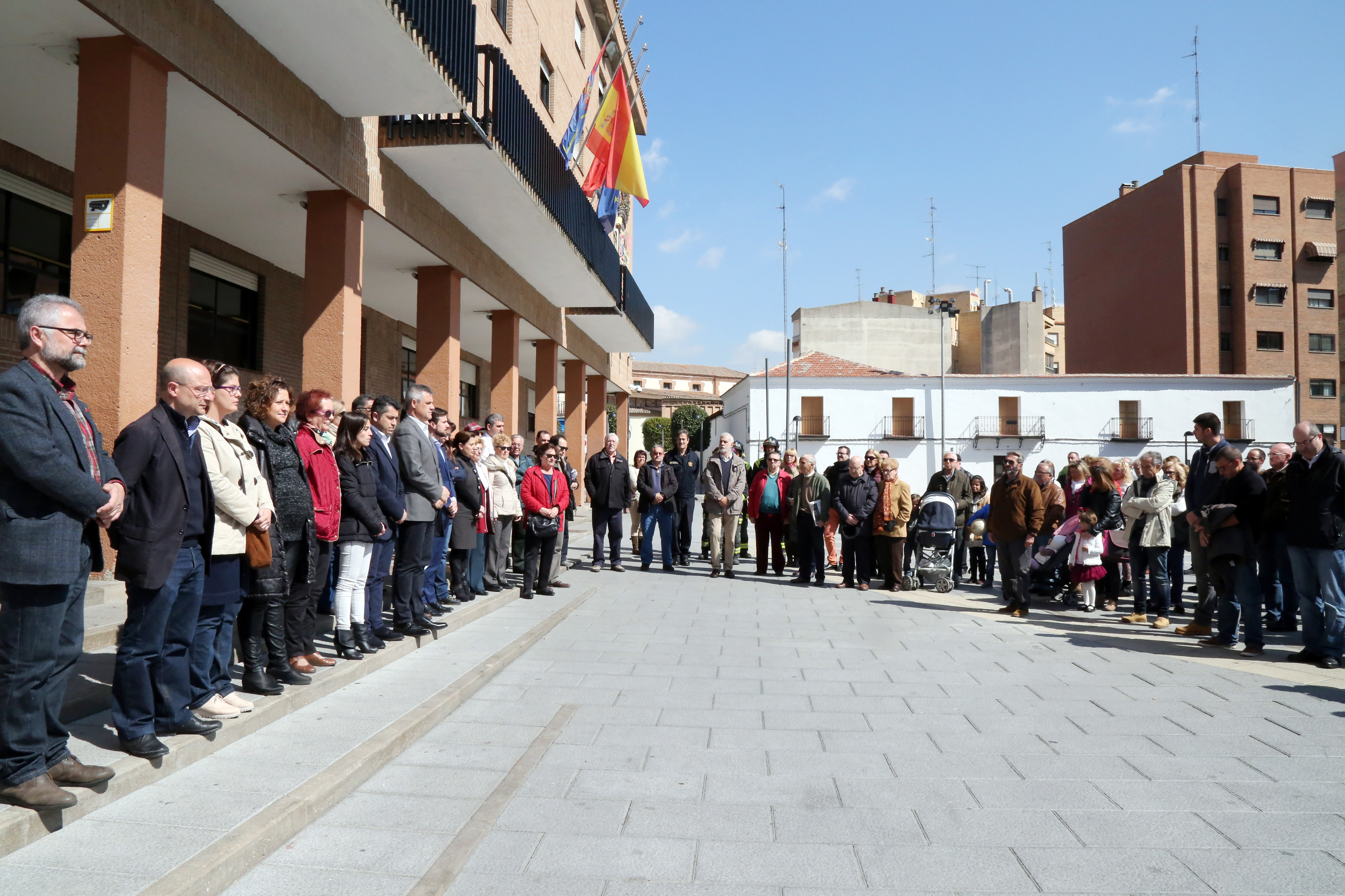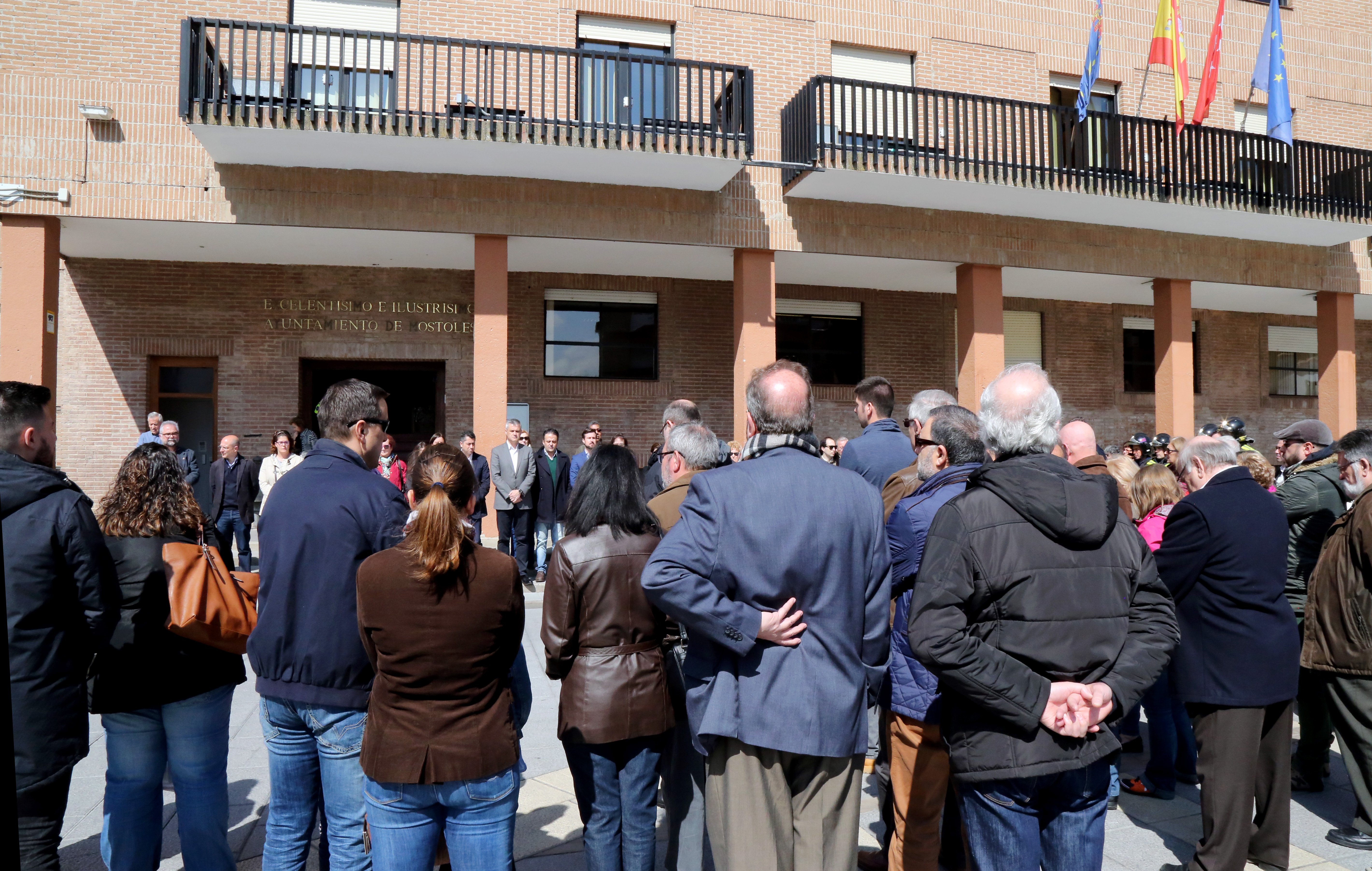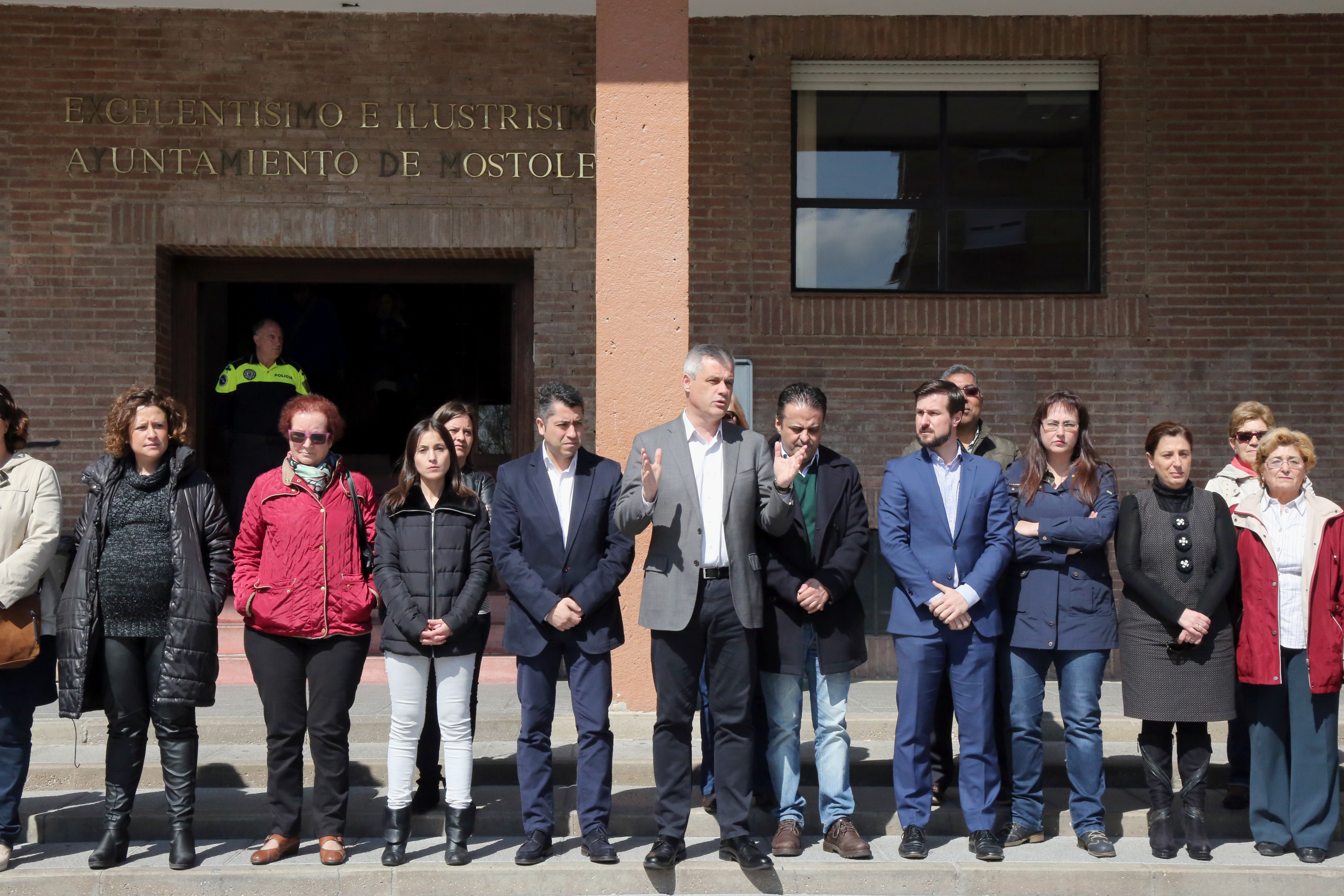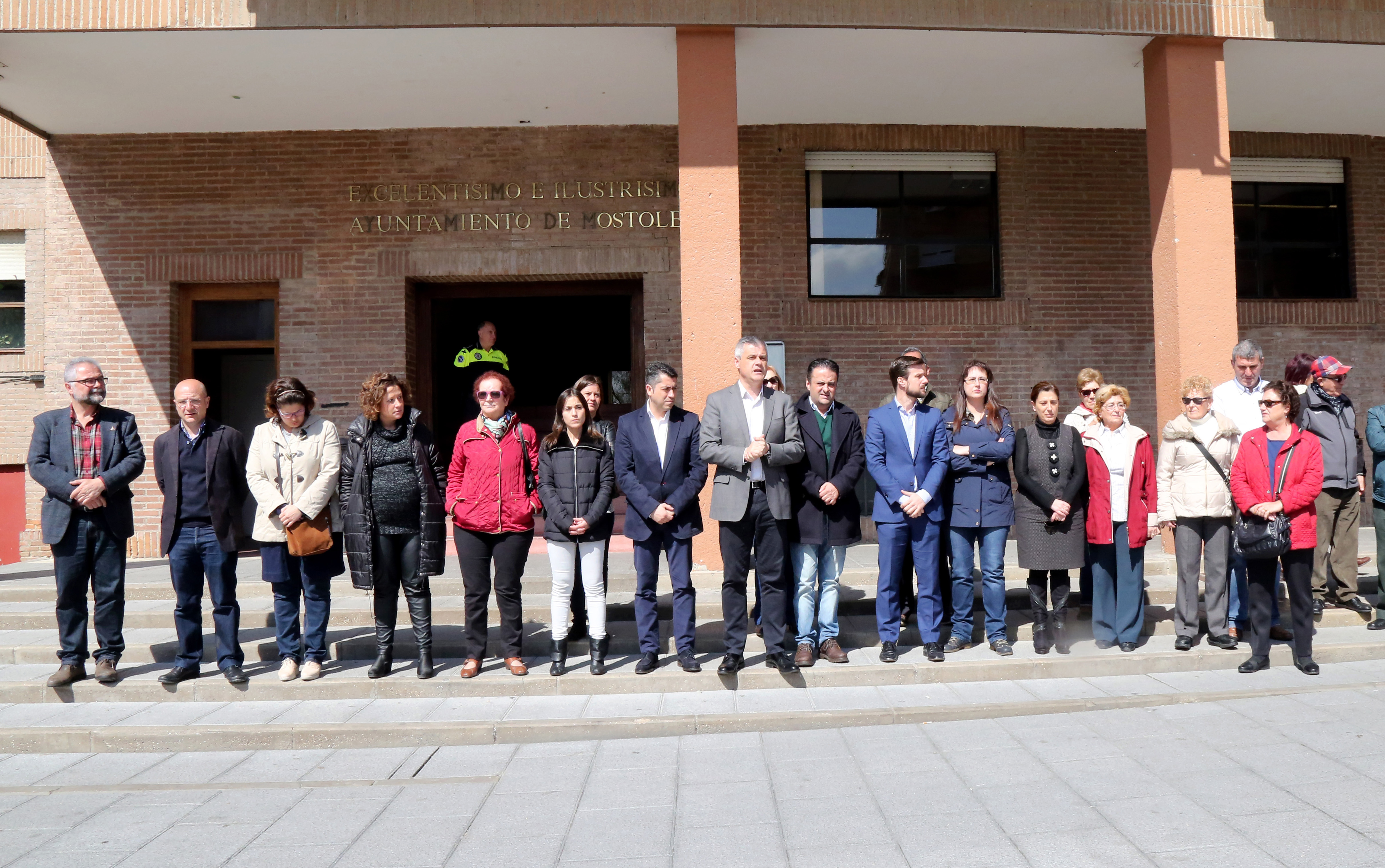Imagen en alta resolución. Este enlace se abrirá mediante lightbox, puede haber un cambio de contextoLa Corporación Municipal, junto a vecinos de Móstoles, han guardado este medio día un minuto de silencio en repulsa por los atentados de Bruselas ocurridos en el día de ayer.