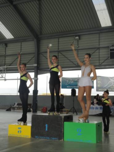 Imagen en alta resolución. Este enlace se abrirá mediante lightbox, puede haber un cambio de contextoEl pasado sábado el CPA Móstoles compitió en el IX Trofeo Nacional de Mejorada del Campo, donde las patinadoras obtuvieron los siguientes resultados: Raquel Martín 1ª y Andrea Oñate 5ª (D mayores); Lucía Sanz 2ª (B pequeños); Miriam Ventosa 6ª (B Mayores); Nadine Chiloeches 7ª (Certificado Mayores) y Sara Canseco 2ª (Categoría Cadete).