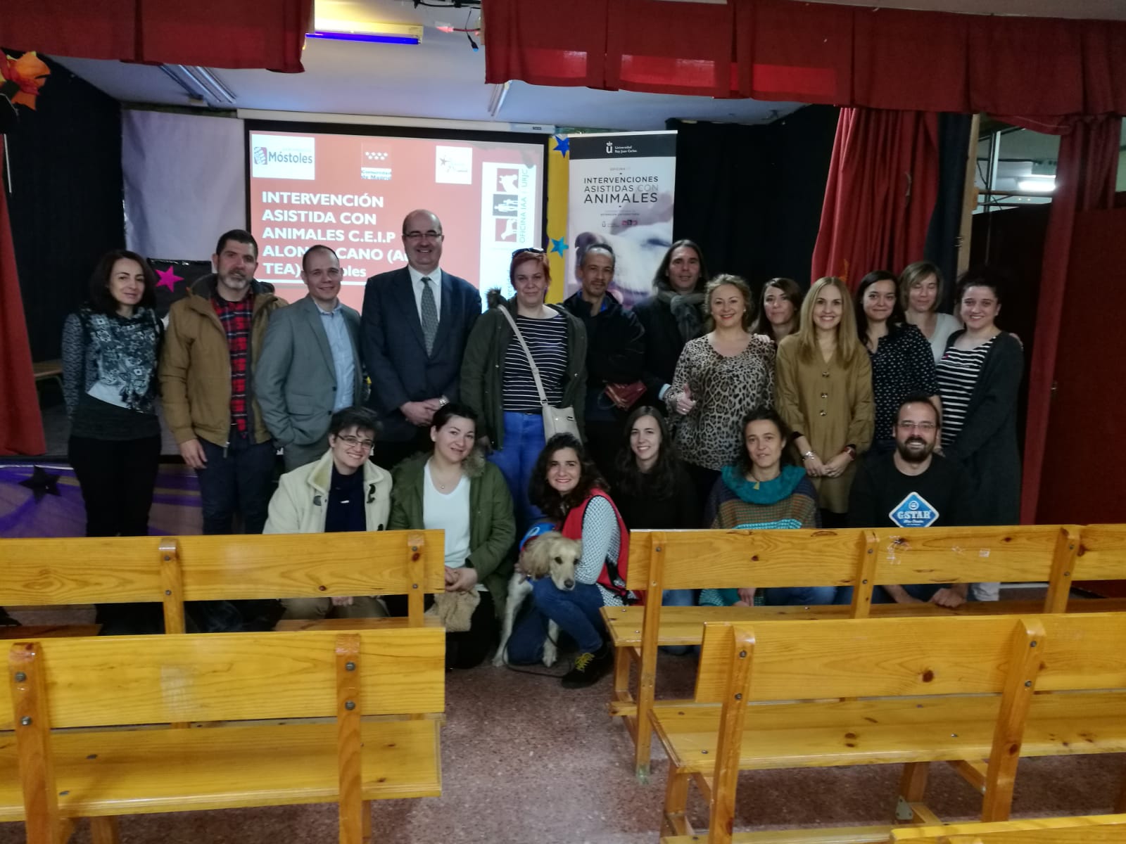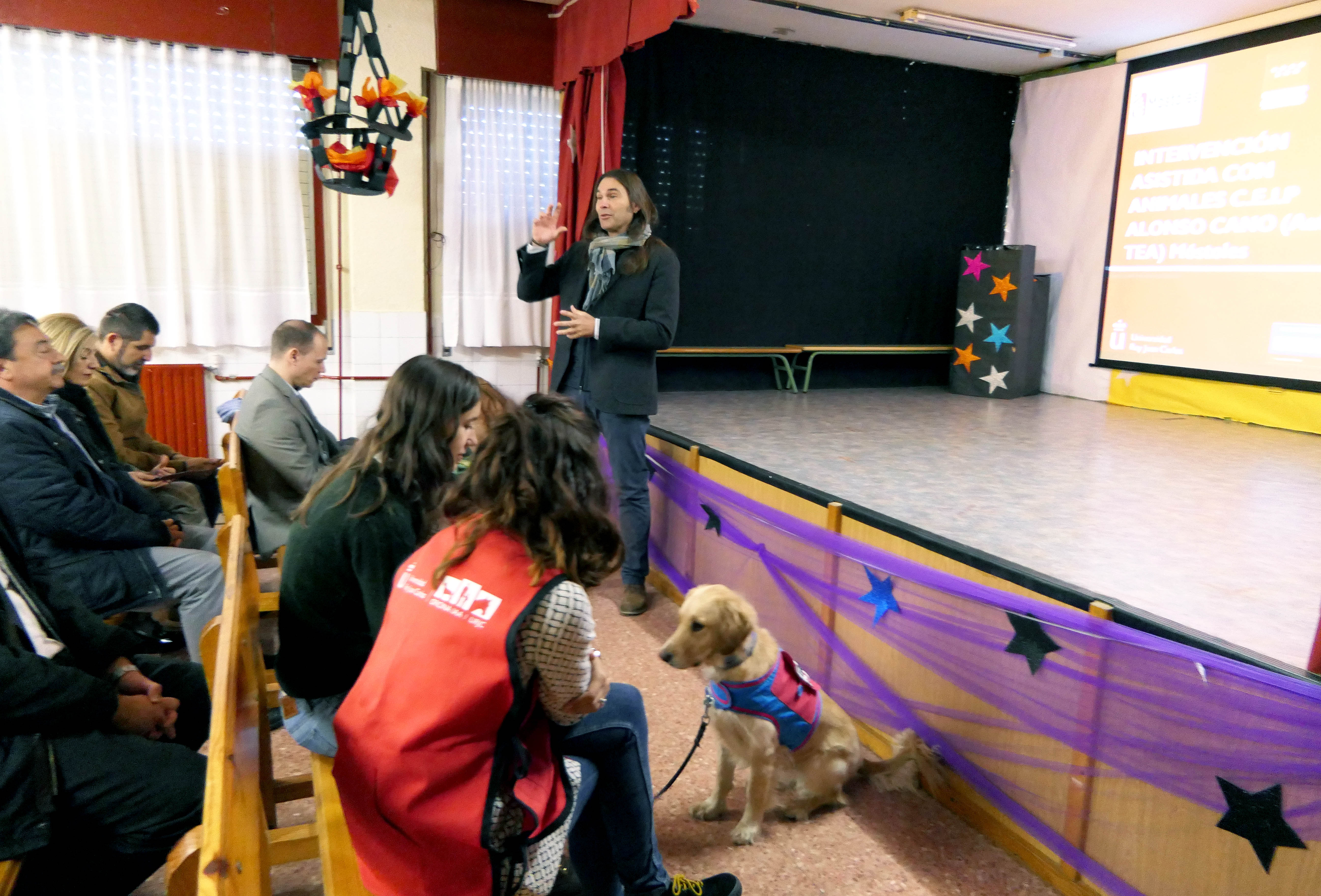 Proyecto IAA 1Imagen en alta resolución. Este enlace se abrirá mediante lightbox, puede haber un cambio de contextoProyecto IAA 1La Oficina de Intervención Asistida con Animales (IAA) de la URJC, en colaboración con el Ayuntamiento de Móstoles, ha organizado esta mañana en el CEIP Alonso Cano de Móstoles una charla dirigida a profesores y padres de alumnos, a la que también ha asistido la concejala de Educación, Isabel Cruceta.