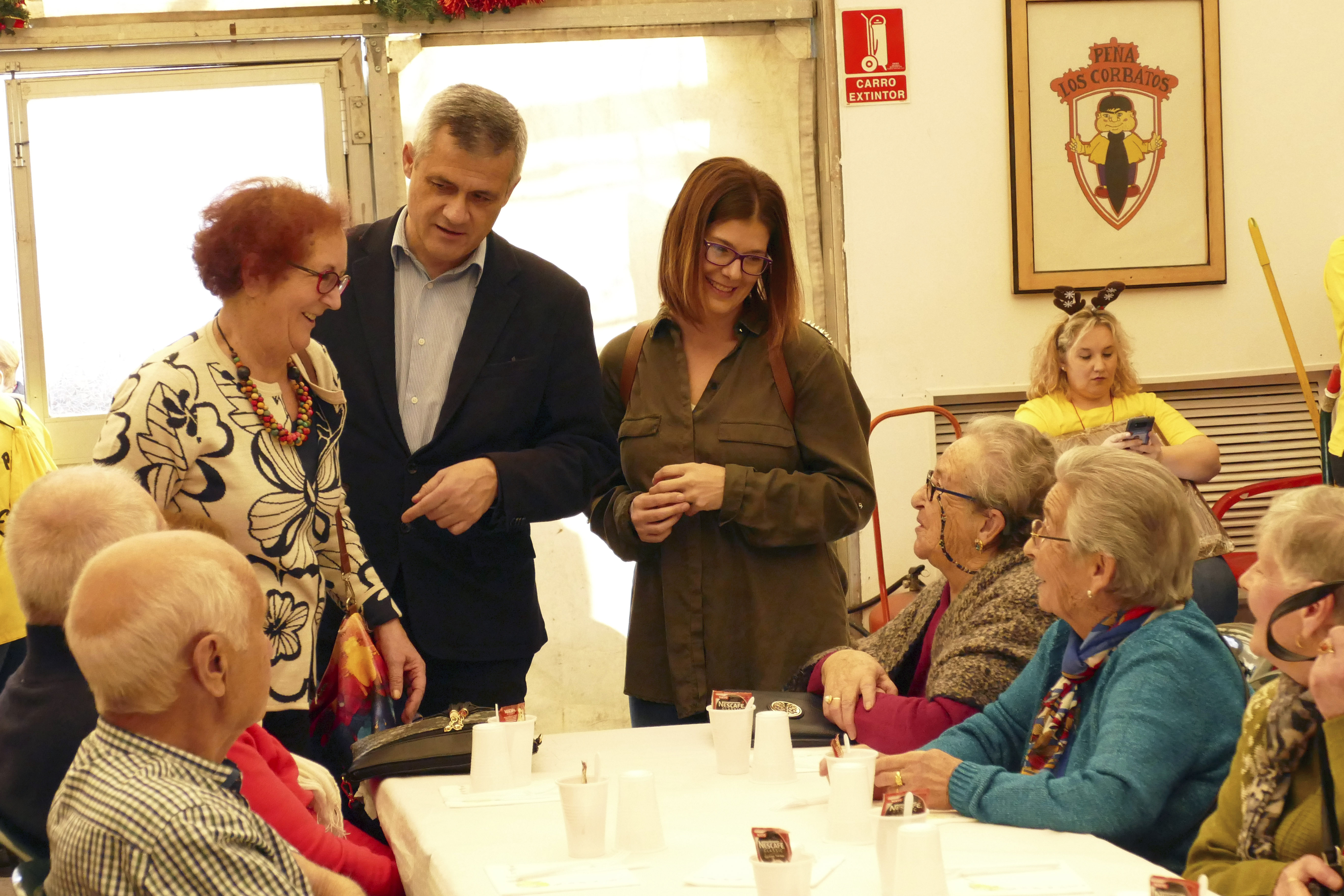 Comida Peña Los Corbatos 1Imagen en alta resolución. Este enlace se abrirá mediante lightbox, puede haber un cambio de contextoComida Peña Los Corbatos 1Como todos los años por estas fechas próximas a la Navidad, la Peña Los Corbatos celebró en su sede una comida de confraternización para homenajear a los Mayores de nuestro municipio, en la que estuvieron presentes el Alcalde, David Lucas, la Concejala de Igualdad, Sanidad y Mayores, Ana María Rodrigo, la concejala de Obras, Infraestructuras, Mantenimiento de Vías Públicas y Festejos, Noelia Posse, y la concejala de Juventud y Participación Ciudadana, Arancha Fernández.