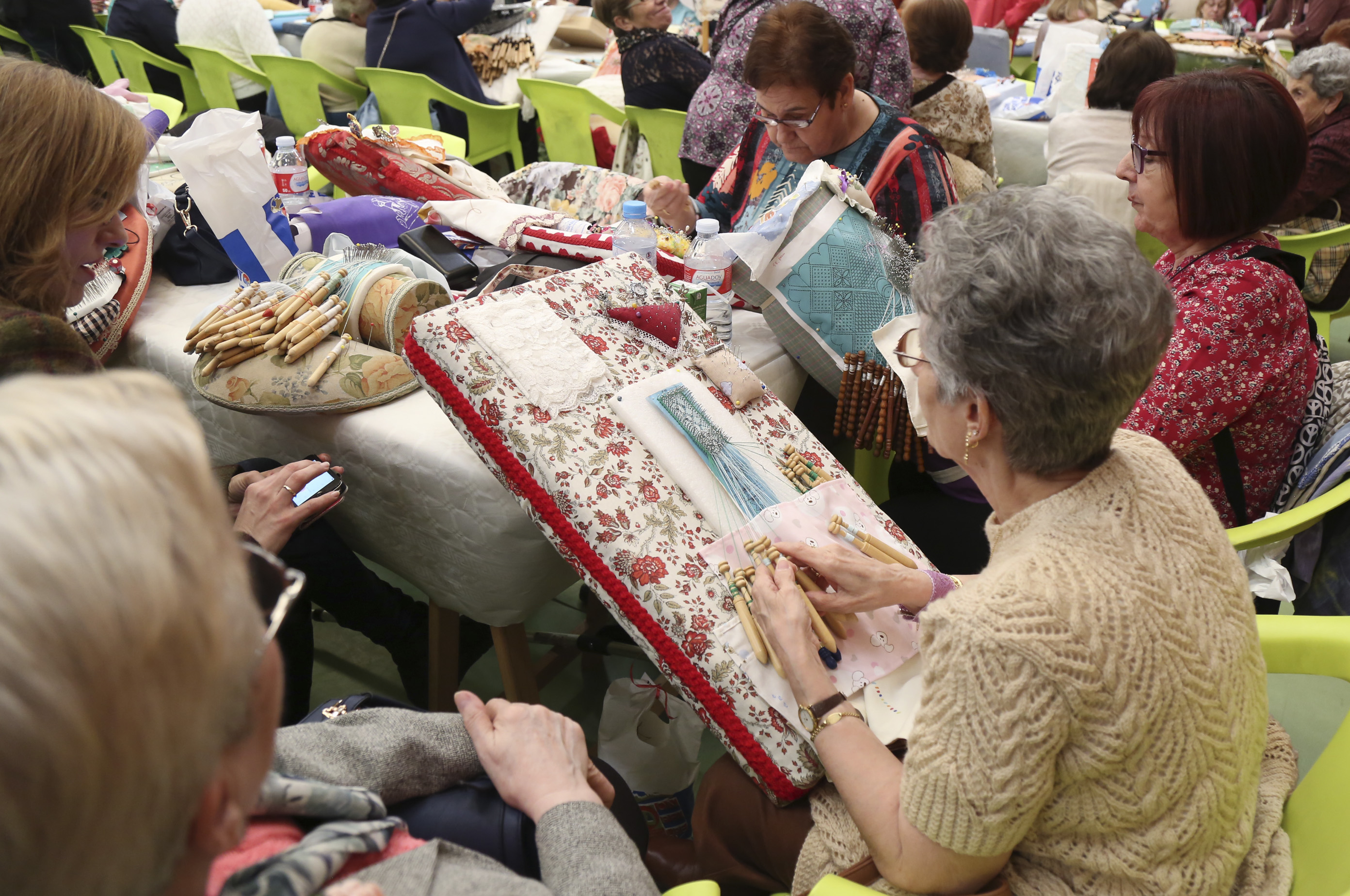 Imagen en alta resolución. Este enlace se abrirá mediante lightbox, puede haber un cambio de contextoCerca de 400 encajeras, procedentes de toda España, se han dado cita esta mañana en el polideportivo del colegio público Julián Besteiro, dentro del VI Encuentro Nacional de Encajeras de Bolillos organizado por la Asociación Agua Viva y la Concejalía de Igualdad, Sanidad y Mayores. La jornada formaba parte de los actos programados durante el mes de marzo con motivo de la celebración del Día Internacional de las Mujeres.