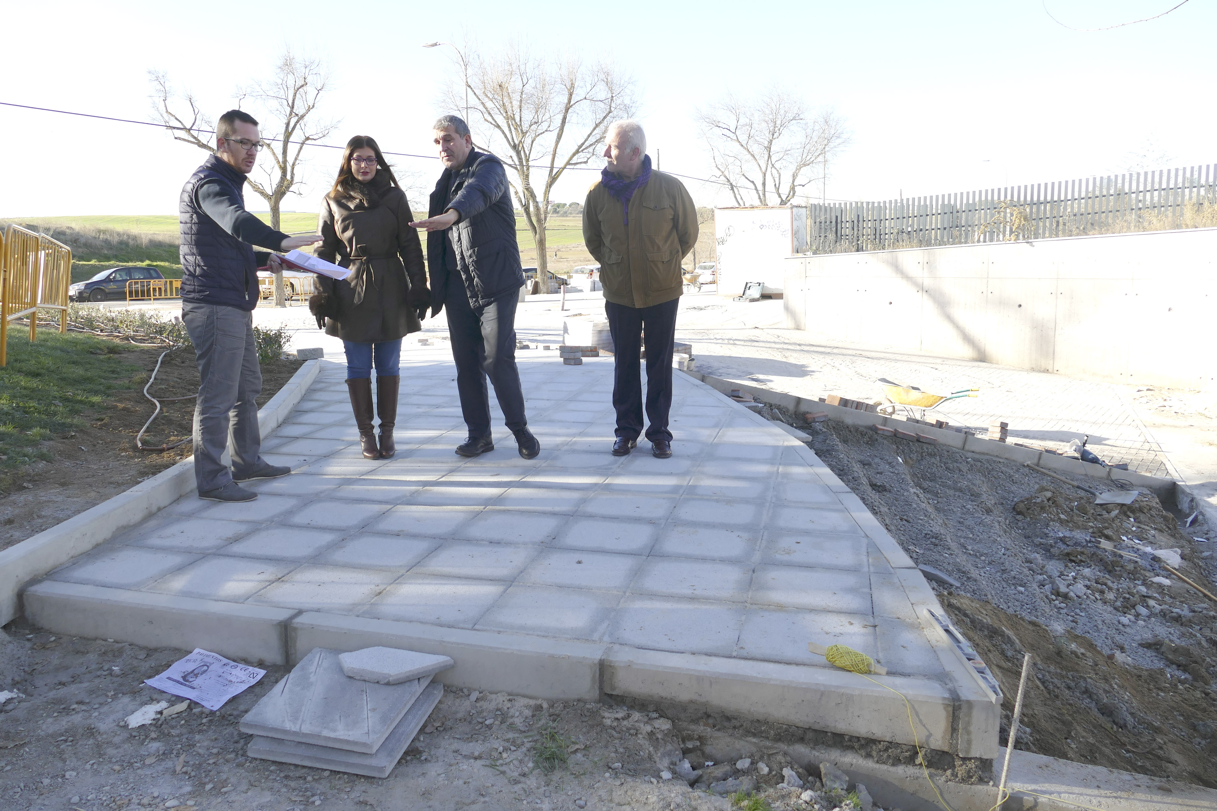 Imagen en alta resolución. Este enlace se abrirá mediante lightbox, puede haber un cambio de contextoLa alcaldesa de Móstoles, Noelia Posse, y el concejal de Deportes, Obras, Infraestructuras y Mantenimiento de Vías Pública, Agustín Martín, han visitado esta mañana el estado de las obras de acondicionamiento del acceso al pabellón polideportivo Andrés Torrejón. Una actuación con la que el Gobierno de Móstoles da respuesta .a una "reivindicación de las vecinas y vecinos, en este caso del Soto, de hace muchos años, recuperando espacios desaprovechados para uso de todas y todos", ha indicado la primera edil.