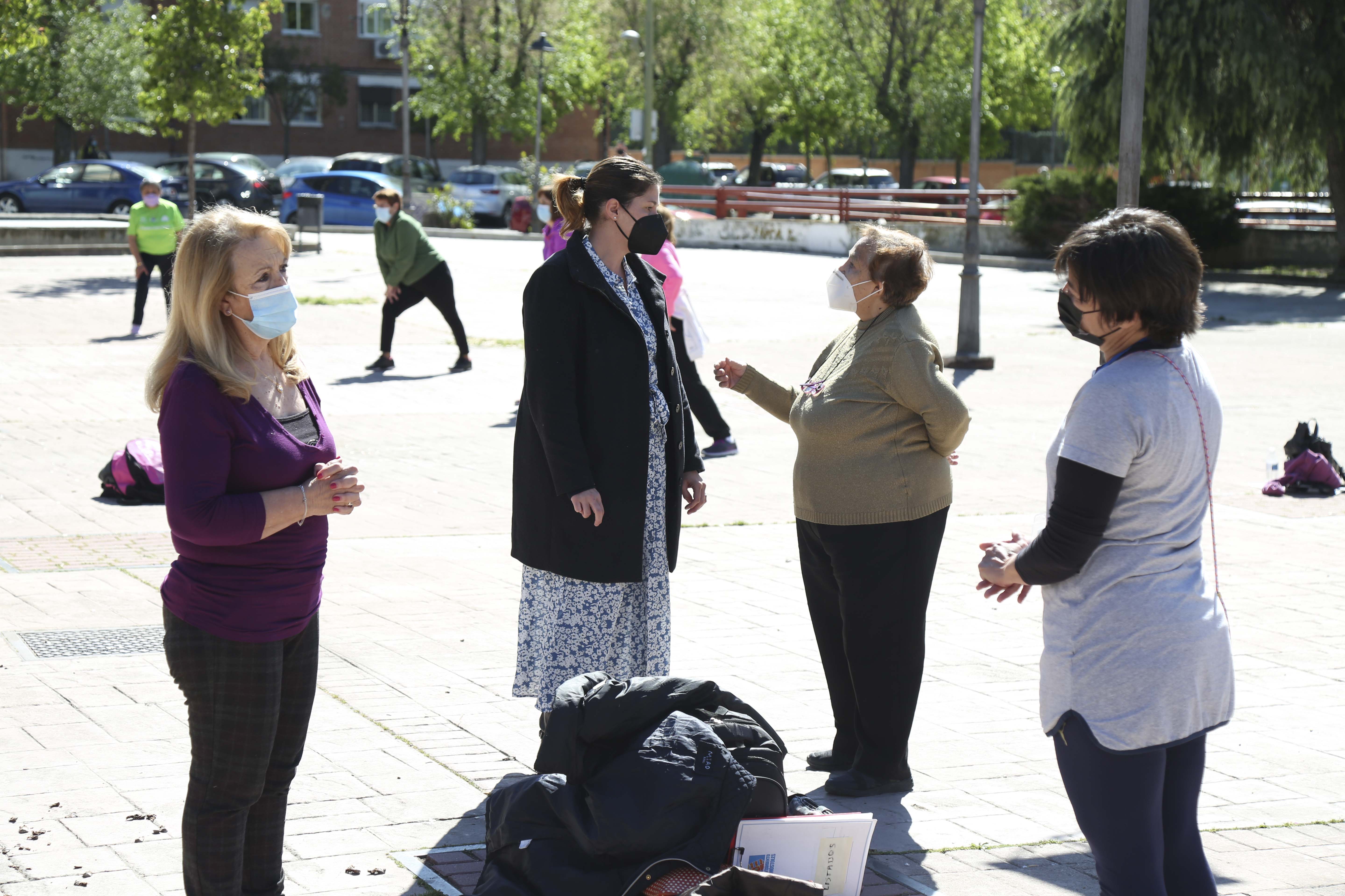 La Alcaldesa de Móstoles, Noelia Posse, acompañada por la Concejala de Derechos Sociales y Mayores, Lola Triviño, ha visitado esta mañana a los alumnos que realizan talleres de psicomotricidad en el Parque Cuartel Huerta. Una iniciativa con la que se pretende mejorar el bienestar de los mayores y fomentar actividades y actuaciones que favorezcan la socialización y eviten el aislamiento de los mayores.