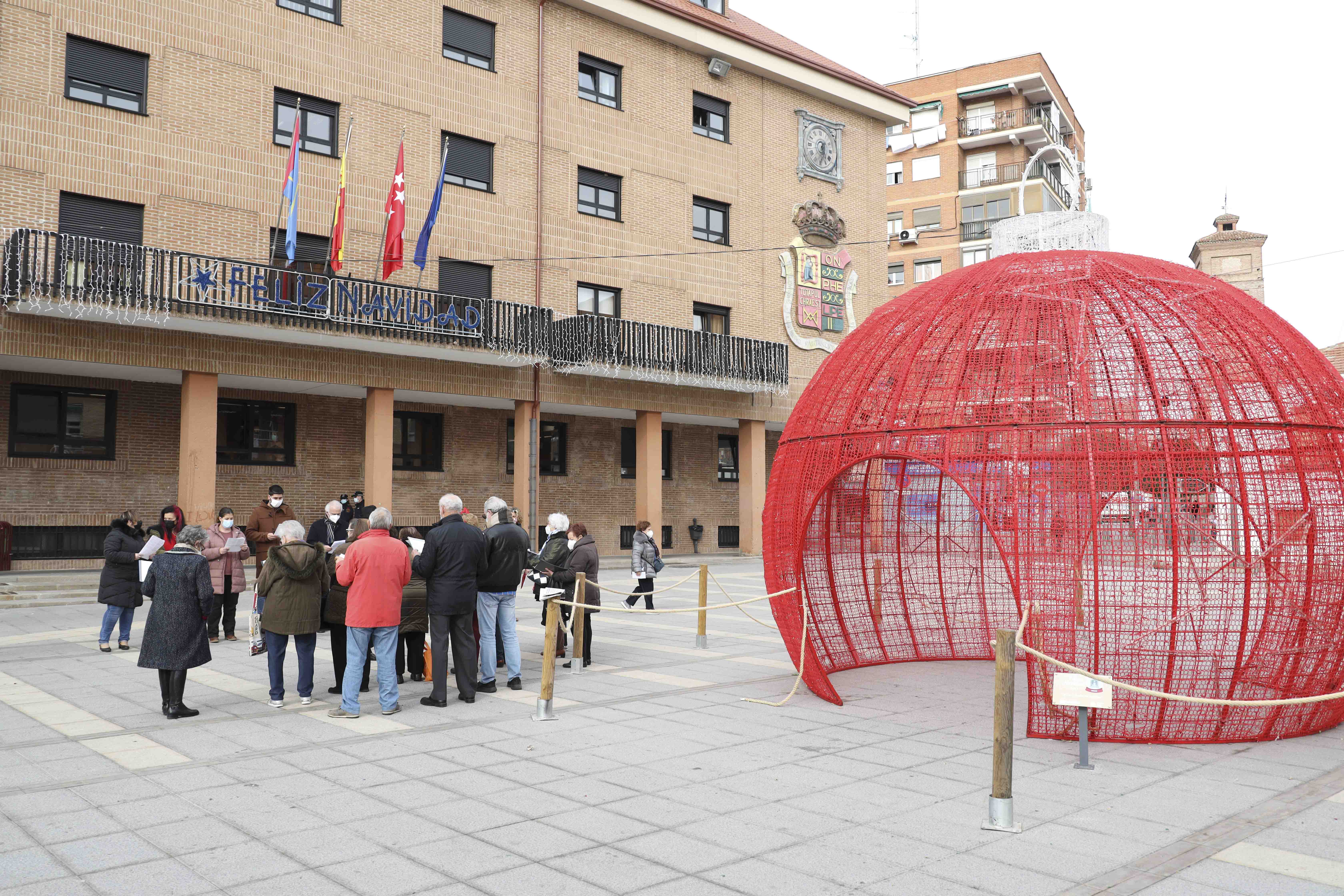 La Coral de Mayores Juan XXIII ha interpretado en la Plaza de la Constitución, frente al Ayuntamiento de Móstoles, su tradicional repertorio de villancicos y canciones navideñas, en el que han participado la Alcaldesa, Noelia Posse, la Concejala de Presidencia y Desarrollo Urbano, Marisa Ruiz, el Concejal de Seguridad, Convivencia y Transición Ecológica, Álex Martín, la Concejala de Derechos Sociales y Mayores, Ángela Viedma, el Concejal de Hacienda, Victorio Martínez, y la Portavoz de Podemos, Mónica Monterreal.