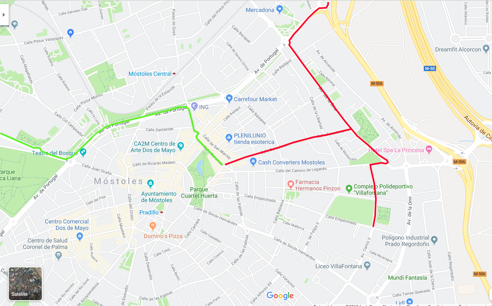 Sentido Mostoles: ruta habitual.