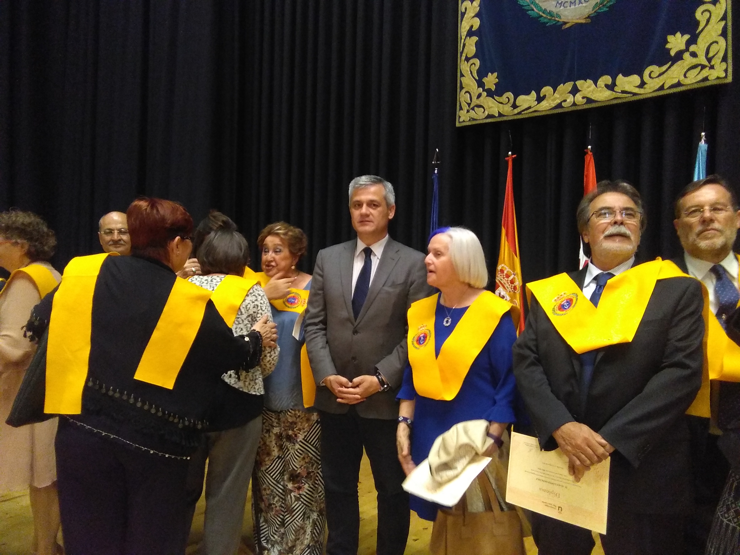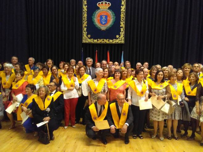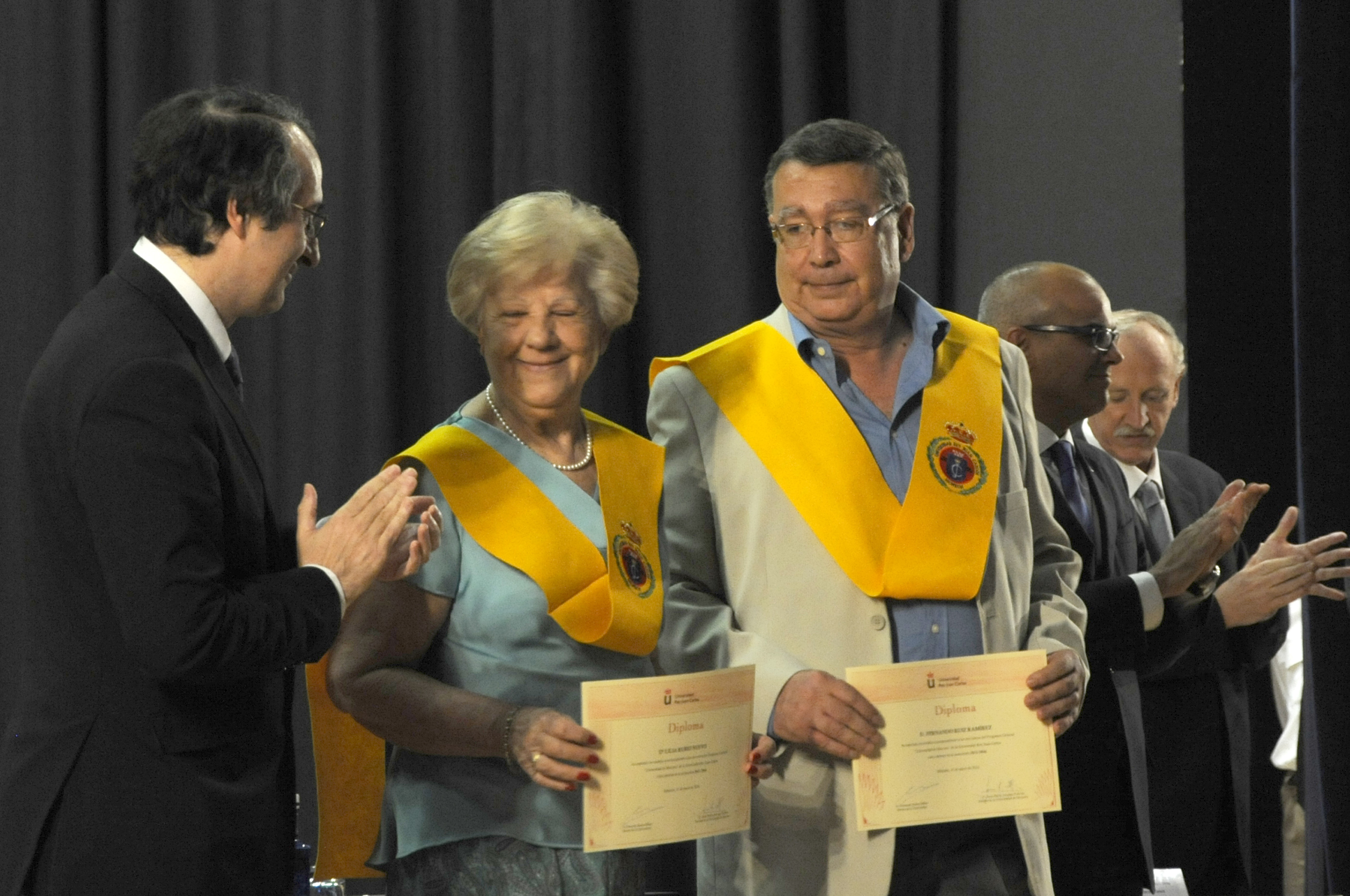 Imagen en alta resolución. Este enlace se abrirá mediante lightbox, puede haber un cambio de contextoEl alcalde de Móstoles, David Lucas, junto al Rector de la Universidad Rey Juan Carlos (URJC), Fernando Suárez, ha asistido a la graduación de alumnos de la Universidad de Mayores, de los campus de Móstoles . Los alumnos han recibido en un acto académico el titulo que acredita que han finalizado sus estudios en la Universidad Rey Juan Carlos. Los estudiantes han participado, a lo largo de tres años, en un programa de 450 horas de duración dirigido a personas mayores de 55 años, durante los cuales han cursado asignaturas teóricas, así como talleres de índole más práctico.