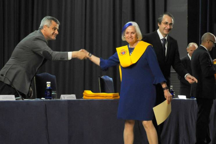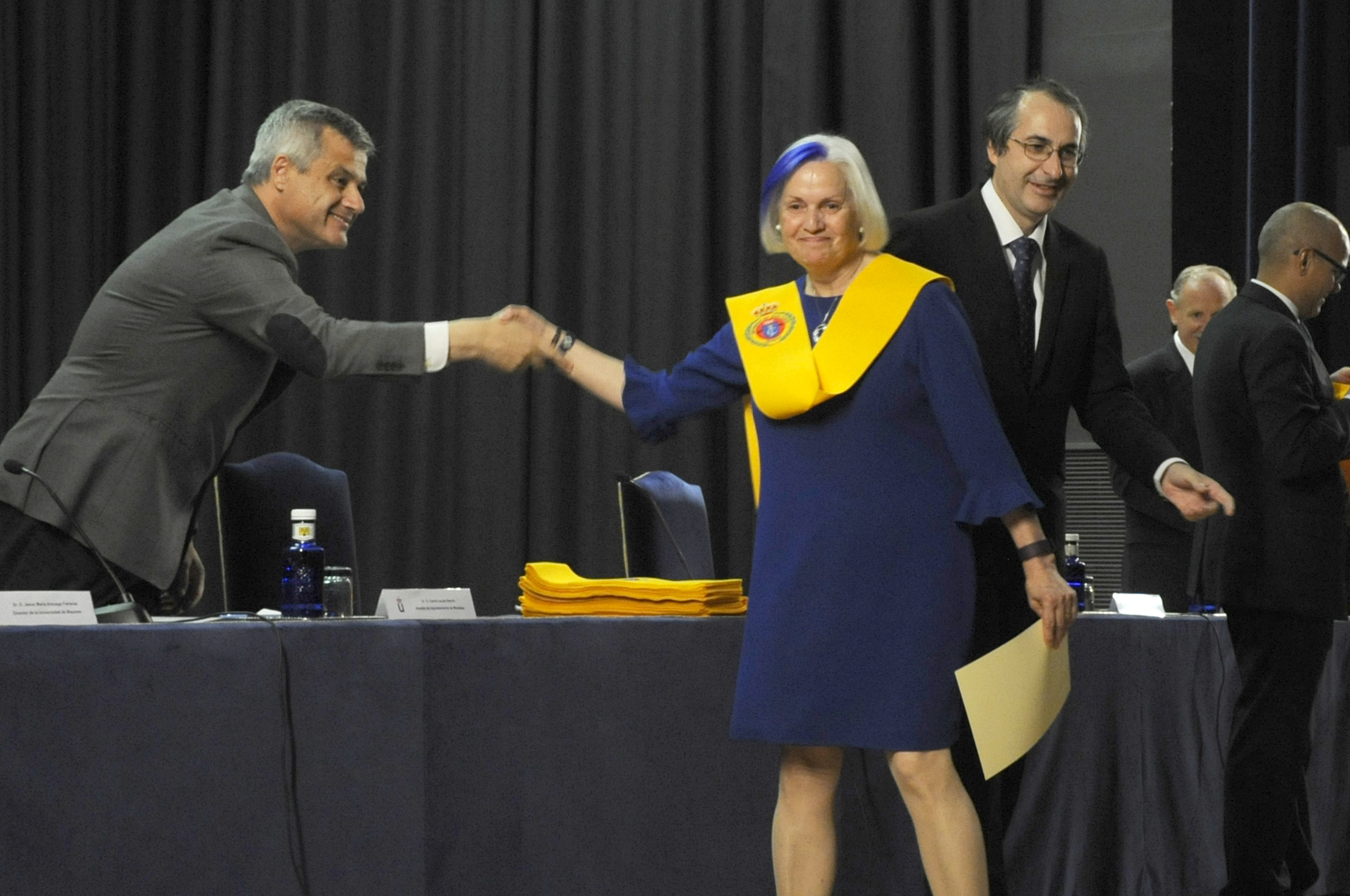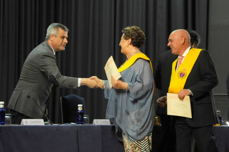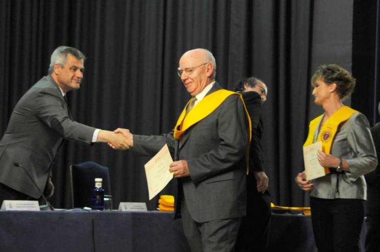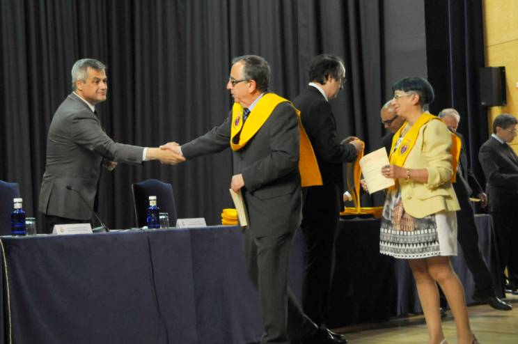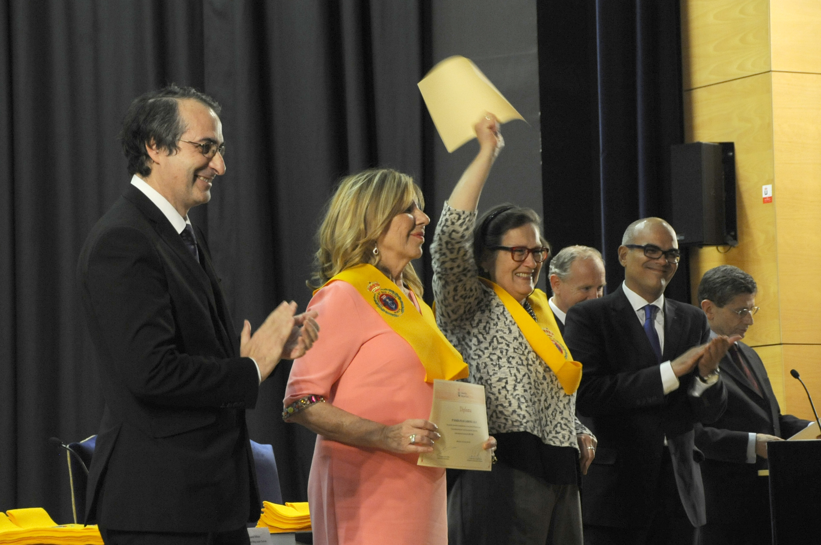 Imagen en alta resolución. Este enlace se abrirá mediante lightbox, puede haber un cambio de contextoEl alcalde de Móstoles, David Lucas, junto al Rector de la Universidad Rey Juan Carlos (URJC), Fernando Suárez, ha asistido a la graduación de alumnos de la Universidad de Mayores, de los campus de Móstoles . Los alumnos han recibido en un acto académico el titulo que acredita que han finalizado sus estudios en la Universidad Rey Juan Carlos. Los estudiantes han participado, a lo largo de tres años, en un programa de 450 horas de duración dirigido a personas mayores de 55 años, durante los cuales han cursado asignaturas teóricas, así como talleres de índole más práctico.
