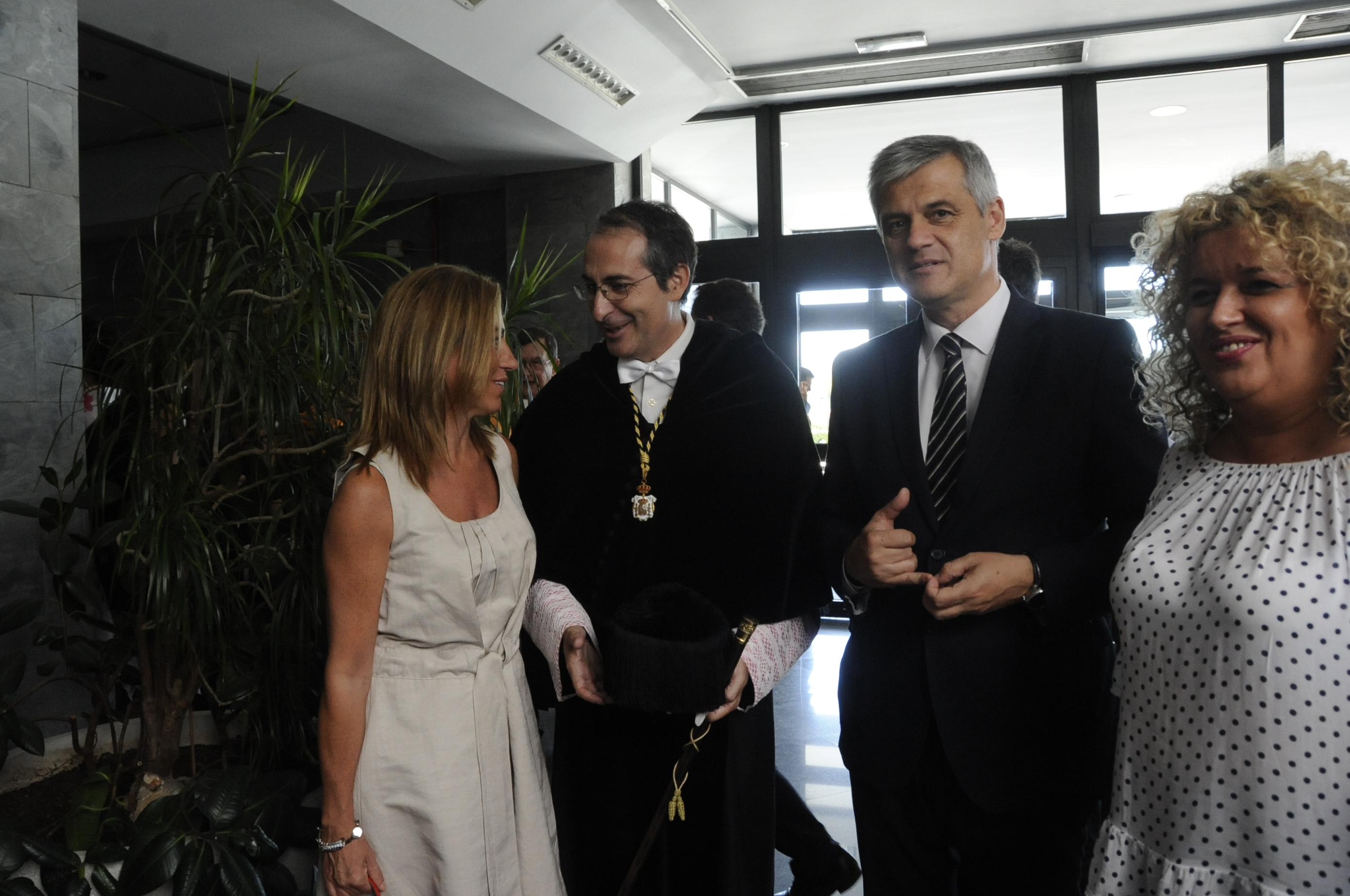 - El Alcalde de Móstoles, David Lucas, junto a la concejala de Educación, Isabel Cruceta, ha asistido al acto oficial de apertura del curso académico 2016-2017 de la Universidad Rey Juan Carlos (URJC), celebrado en el salón de actos del Rectorado del campus de Móstoles. Este presente curso lo inician un total de 9.000 nuevos alumnos distribuidos en los diversos campus con los que cuenta la universidad.