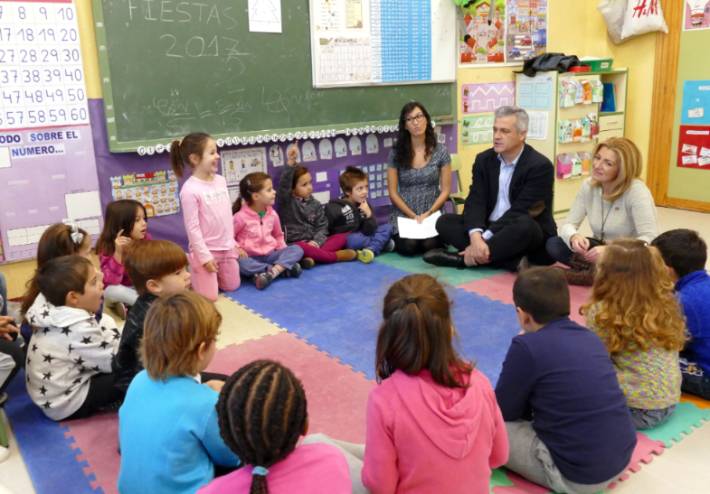 Imagen en alta resolución. Este enlace se abrirá mediante lightbox, puede haber un cambio de contextoEl alcalde de Móstoles, David Lucas, acompañado por la concejala de Educación, Isabel Cruceta ha visitado esta mañana el CEIP Pío Baroja y ha participado en un encuentro con 26 alumnos de 5 años que están realizando un proyecto sobre la ciudad de Móstoles. El regidor ha asistido a petición de los propios niños y niñas. El trabajo versa sobre cómo es una ciudad, qué diferencias hay entre un pueblo y una ciudad, cómo se llama su ciudad, los lugares más característicos de la misma, etc. Durante el encuentro han preguntado a David Lucas sobre las funciones de un Alcalde en el Ayuntamiento, así como qué es un pleno ylas figuras de los concejales y de Teniente Alcalde, entre otras cuestiones. Al término del encuentro, el Alcalde les ha hecho entrega de unos regalos como mochilas, fiambreras y cajitas con lápices y gomas.