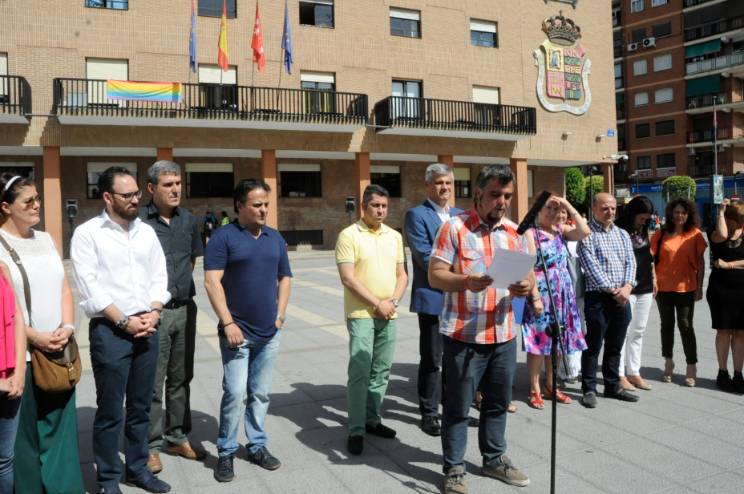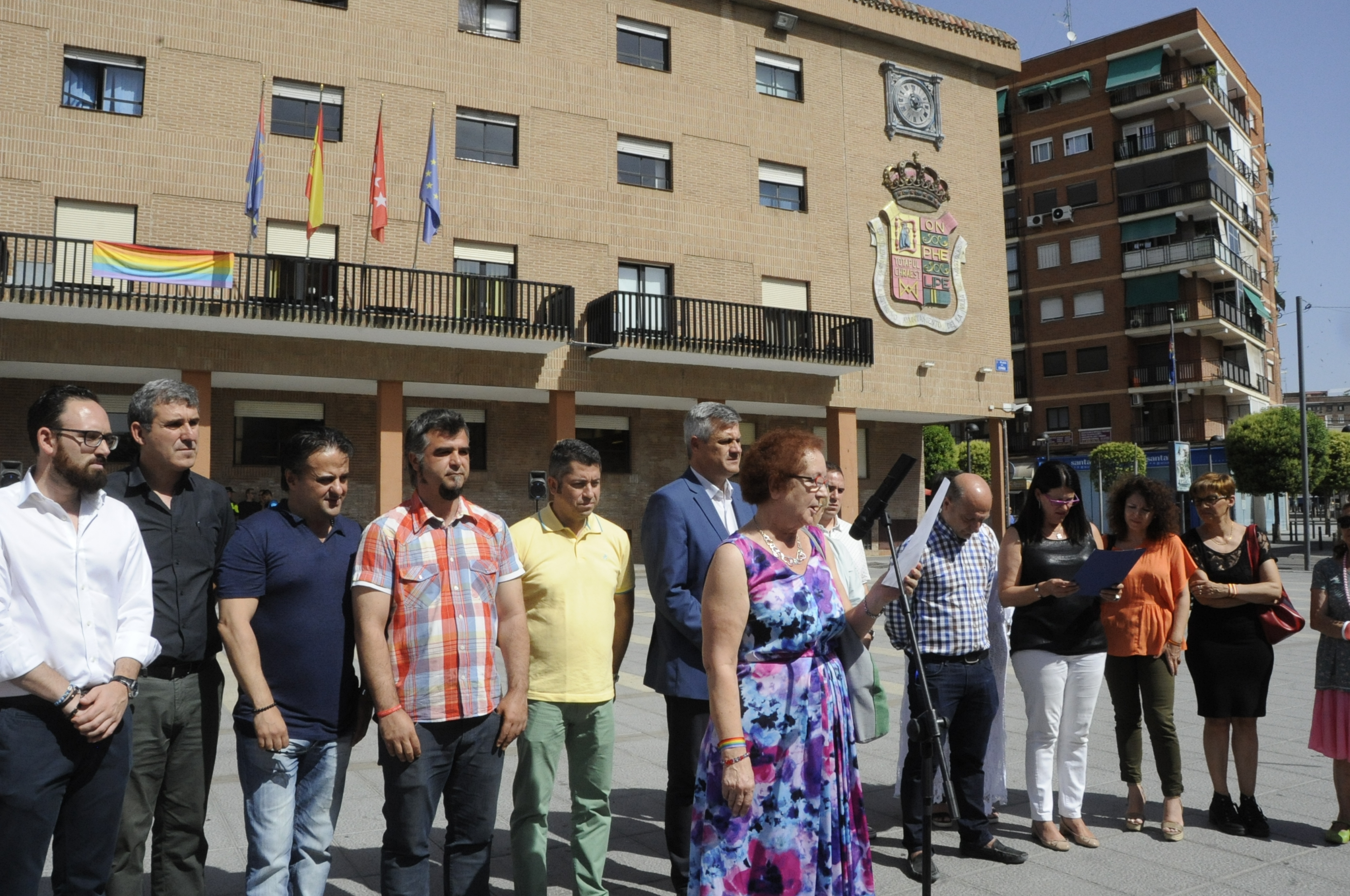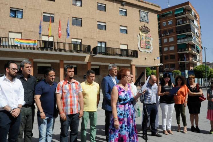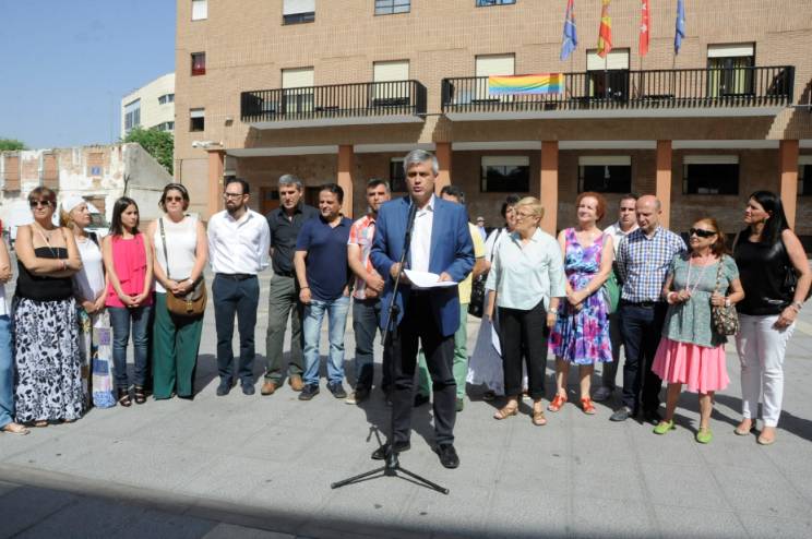 Imagen en alta resolución. Este enlace se abrirá mediante lightbox, puede haber un cambio de contextoCon motivo de la celebración del Día del Orgullo LGTBI, el alcalde de Móstoles, David Lucas, junto a la diputada socialista, Ángeles Álvarez, y miembros del Equipo de Gobierno y de la Corporación, han procedido a leer la declaración institucional contra la homofobia y la transfobia aprobada en el pleno del mes de mayo.