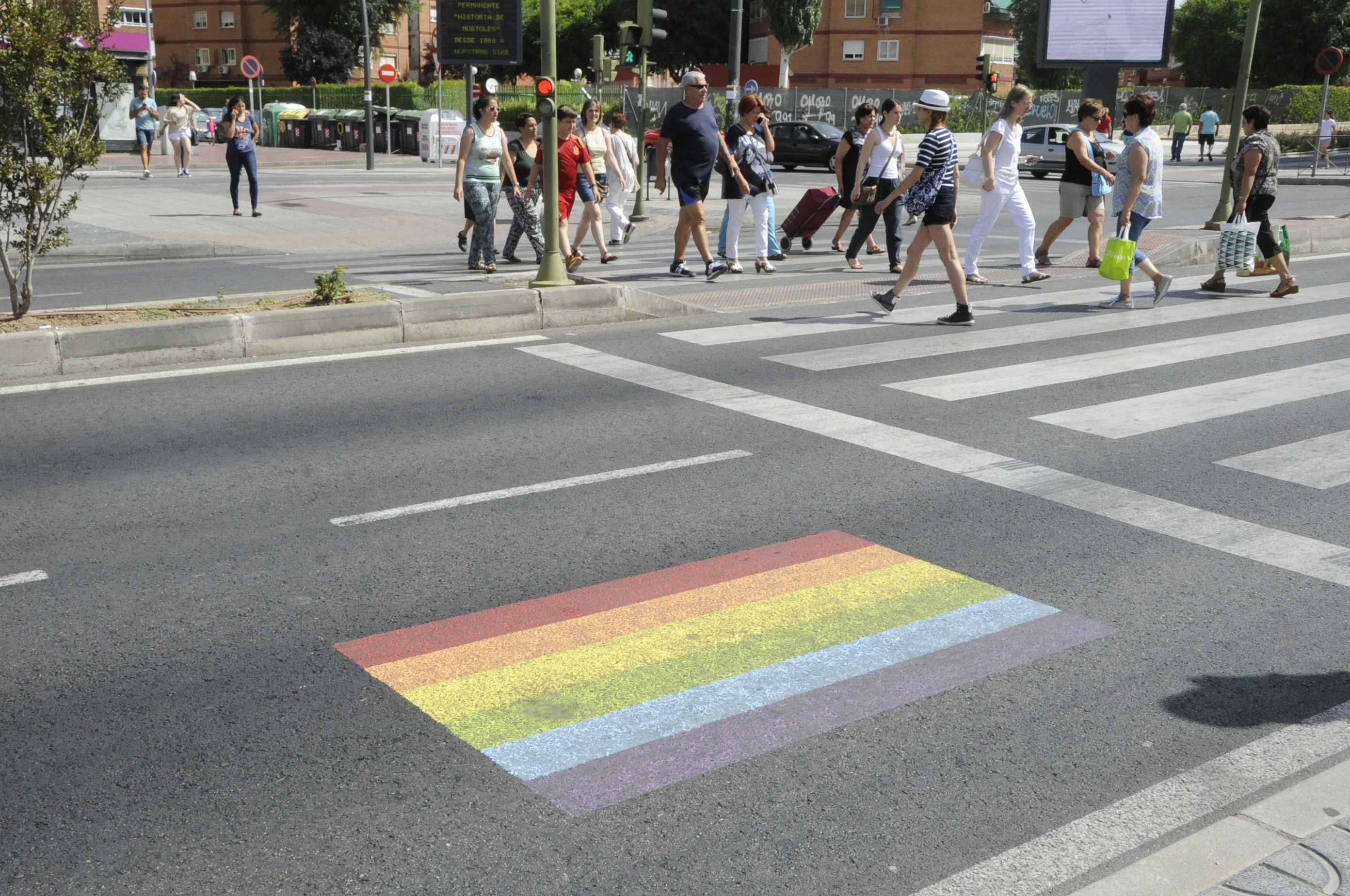 Además de emplazar la bandera LGTBI, en la ciudad se ha pintado un paso de cebra con los colores del arco iris, en la avenida de Portugal, esquina con la calle Goya.