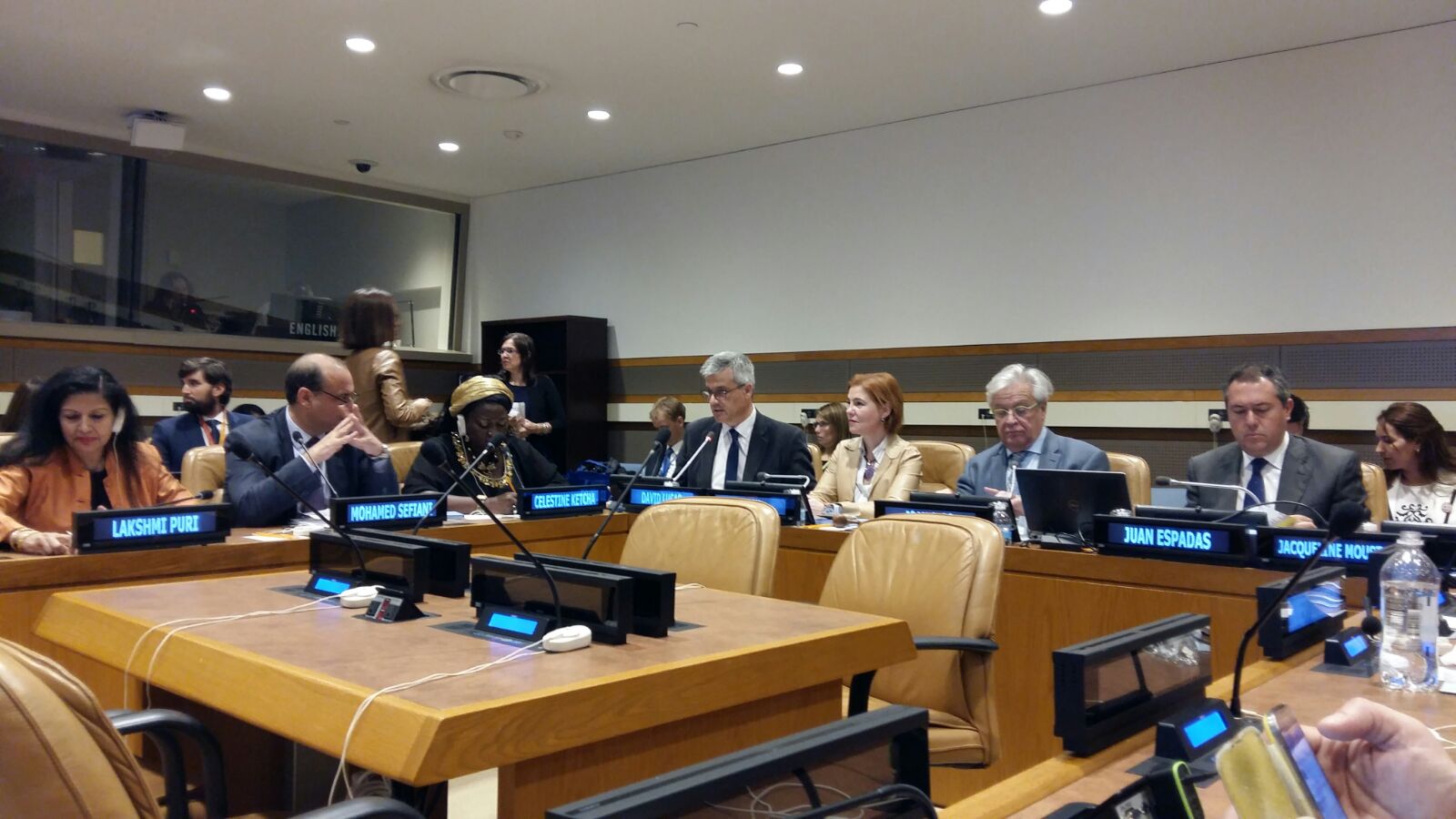 En la reunión participaron Joan Clos, director general de Onu Hábitat; Laksami Puri, directora ejecutiva adjunta de Onu Mujeres; Frederic Valler, secretario general del Consejo de Municipios y Regiones de Europa; Juan Espadas, alcalde de Sevilla y presidente de la Red Española de Ciudades por el Clima; Celestine Ketcha Courtes, alcaldesa de Bangangté y presidenta de la Red de Mujeres Electas Locales de África; Mohamed Sefiani, alcalde de Chefchaouen; Hubert Julien Leferriere, alcalde del Distrito 9 Lyon y vicepresidente de Grand Lyon Habitat; Geoffrey Makhubo, teniente de alcalde de Johanessburgo y Francisca Pedrós, ministra consejera de la Misión Permanente de España ante Naciones Unidas.
