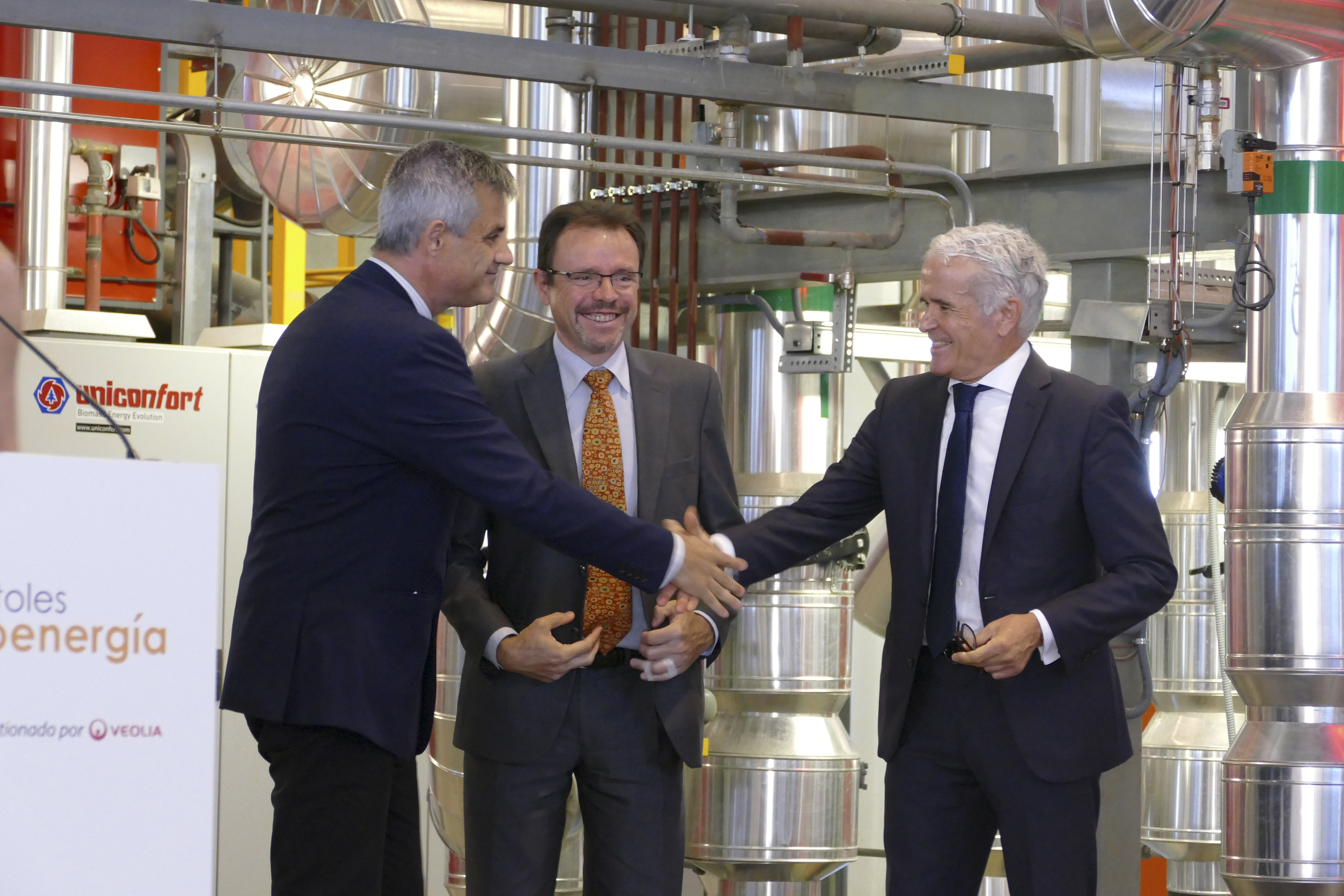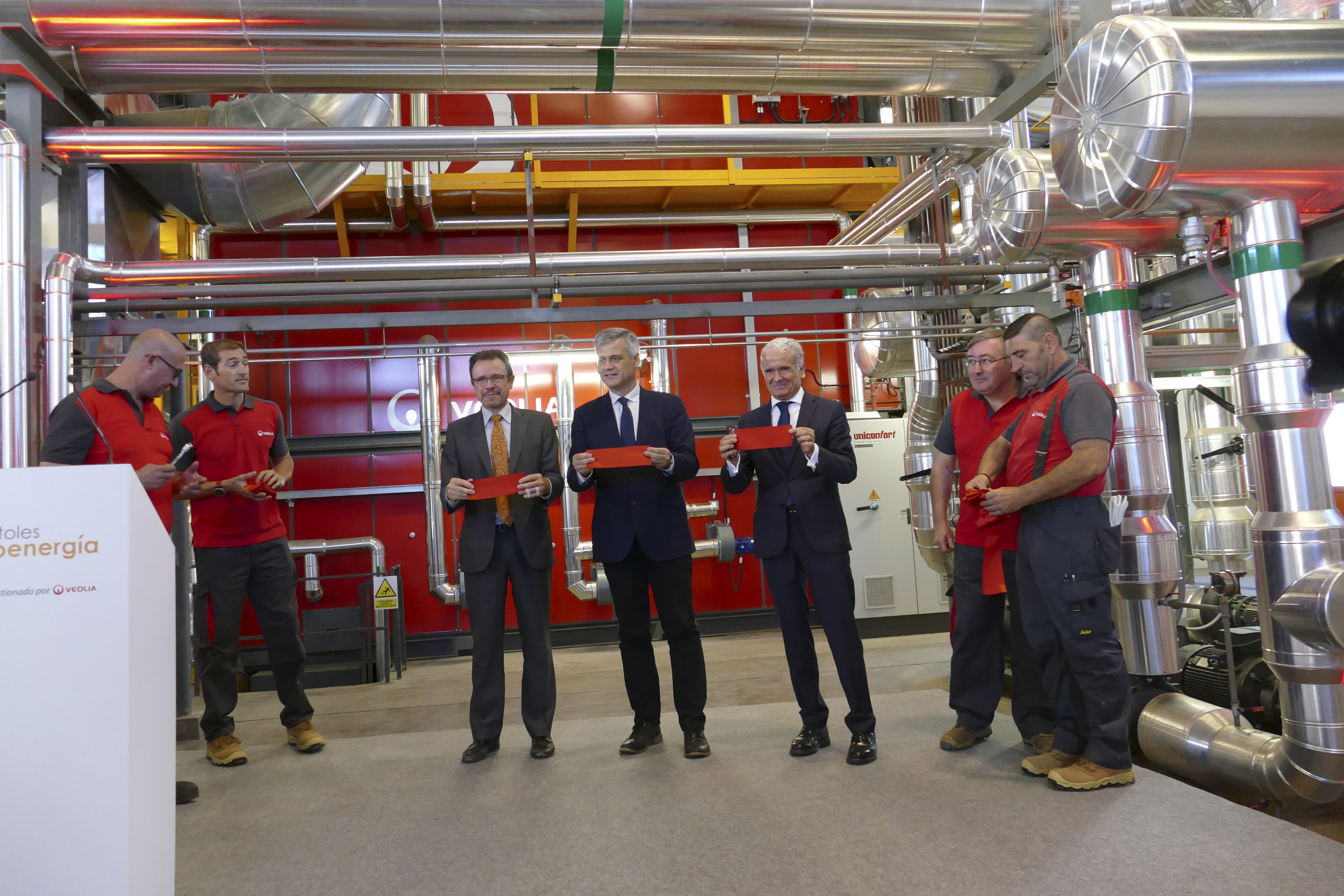 Imagen en alta resolución. Este enlace se abrirá mediante lightbox, puede haber un cambio de contextoEl alcalde de Móstoles, David Lucas, ha inaugurado esta mañana la red de calor de distrito con biomasa (distric heating) denominada `Móstoles EcoEnergía´ y desarrollada por la empresa Veolia en la ciudad. El acto ha contado también con el consejero delegado de Veolia, Hervé Peneau, y el gerente de Móstoles Ecoenergía, Francisco Villalobos, así como los concejales de Medio Ambiente, Parques y Jardines y Limpieza Viaria, Miguel Ángel Ortega; la concejala de Obras, Infraestructuras, Mantenimiento de Vías Públicas y Festejos, Noelia Posse; el concejal de Cultura y Bienestar Social, Gabriel Ortega; la concejala de Desarrollo Económico, Empleo y Nuevas Tecnologías, Jessica Antolín; la concejala Beatriz Mogrovejo y otros miembros de la Corporación Municipal.