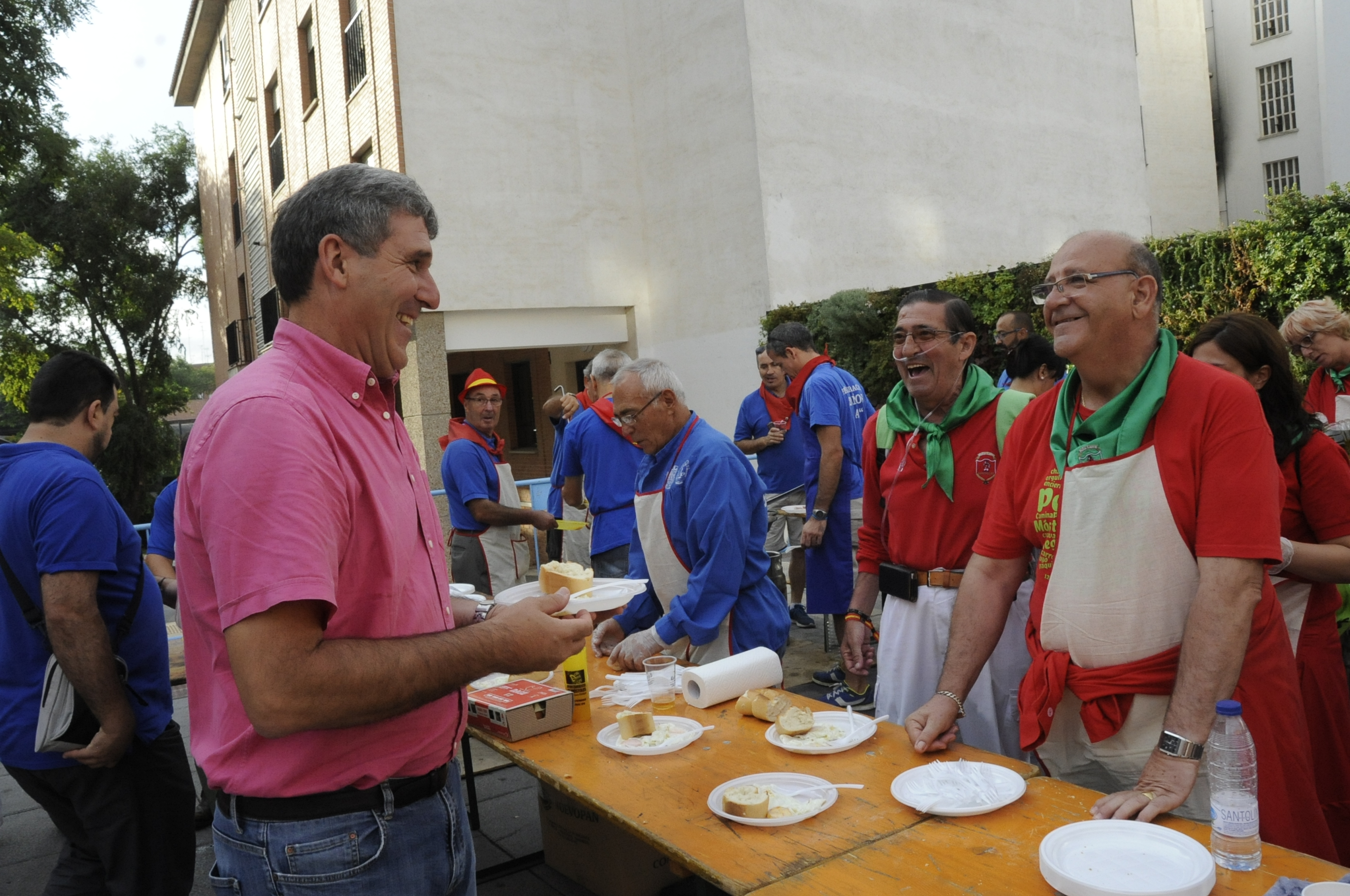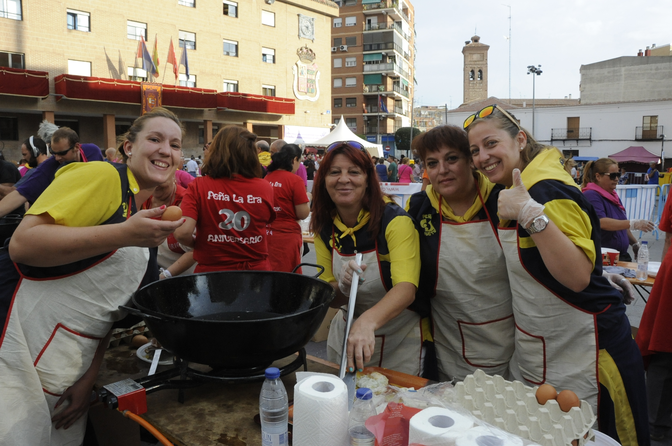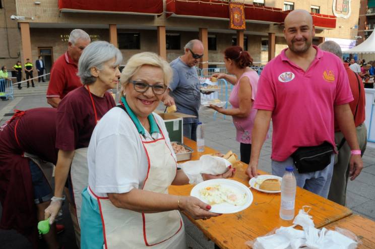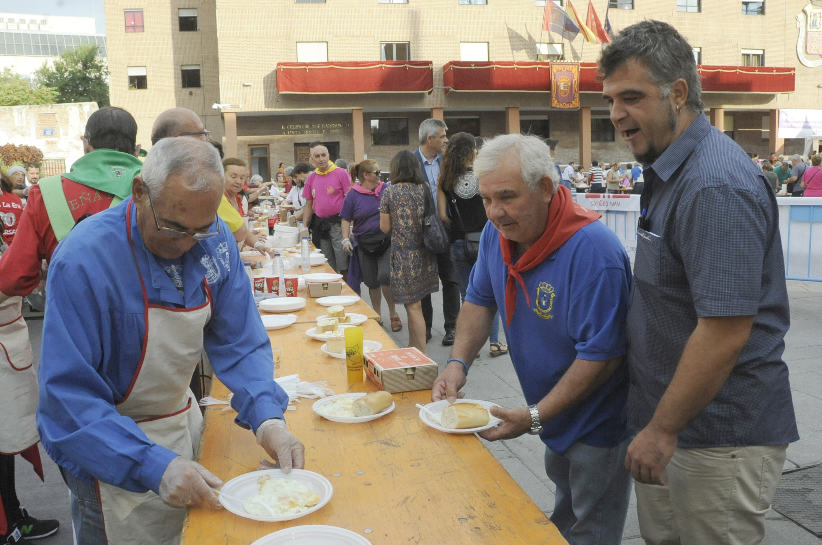 Las peñas de Móstoles se encargan de la preparación de los platos que constan de huevos fritos, bacon y una bebida para los adultos y refrescos para los más pequeños. Esta actividad cuenta con la colaboración de la empresa de huevos DAGU y de los comerciantes del Mercado de Artesanía.