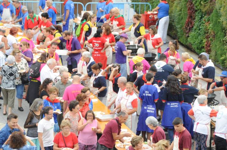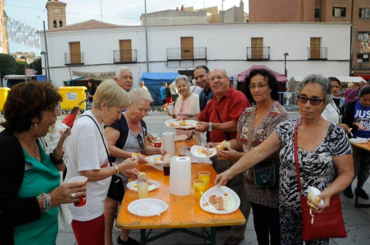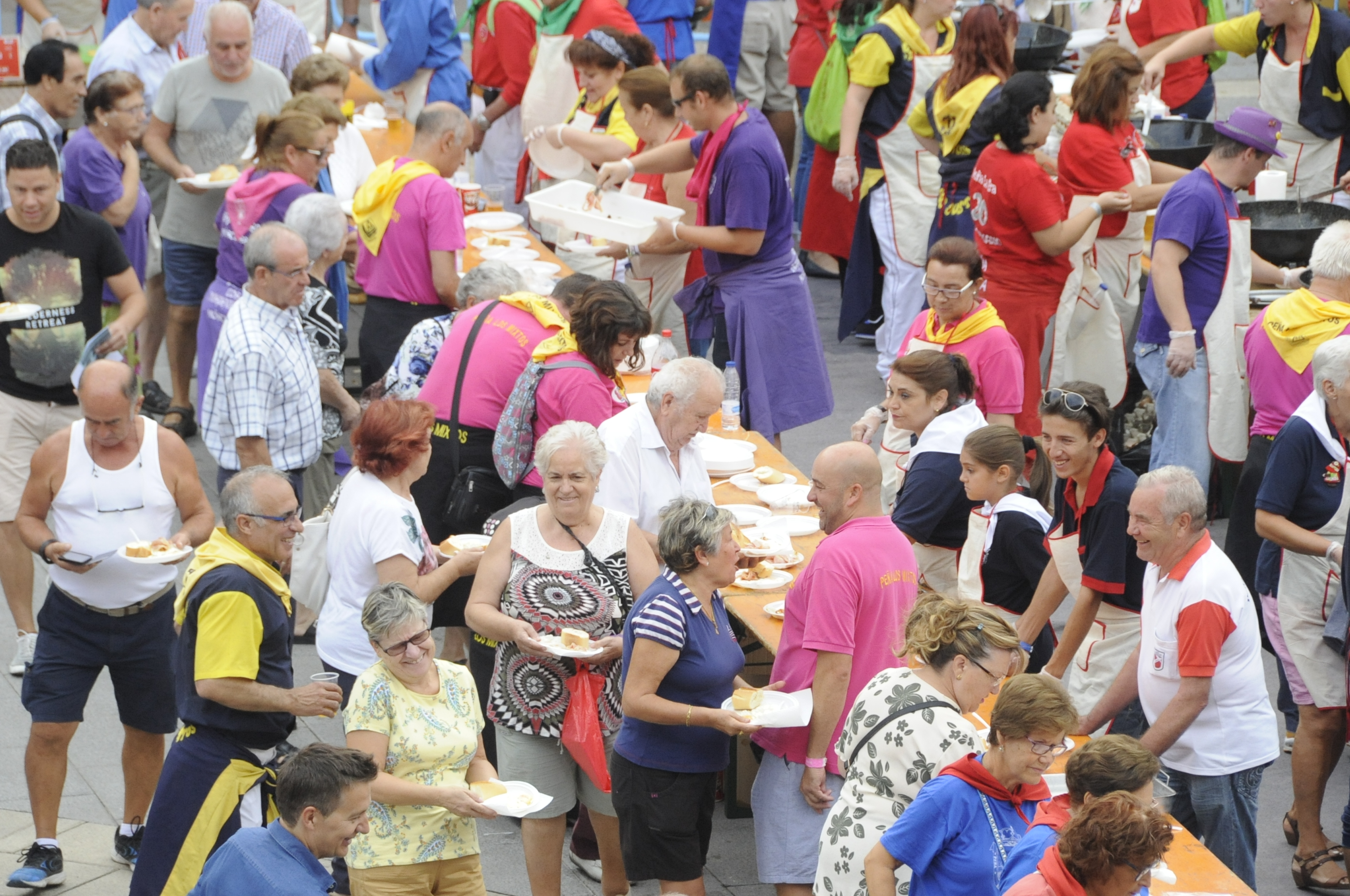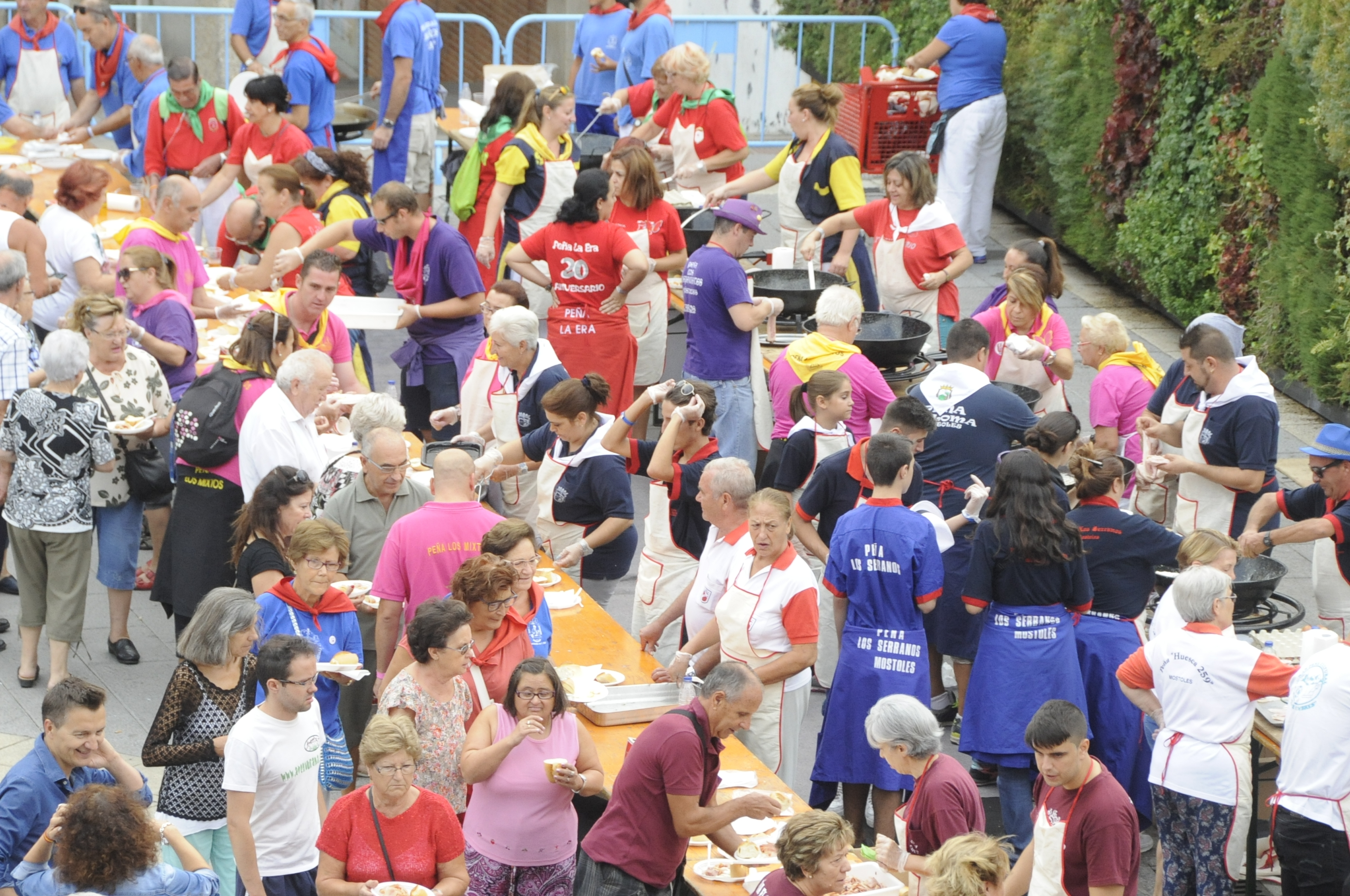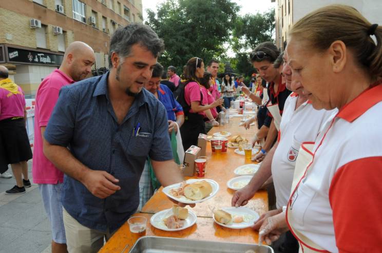 Las peñas de Móstoles se encargan de la preparación de los platos que constan de huevos fritos, bacon y una bebida para los adultos y refrescos para los más pequeños. Esta actividad cuenta con la colaboración de la empresa de huevos DAGU y de los comerciantes del Mercado de Artesanía.