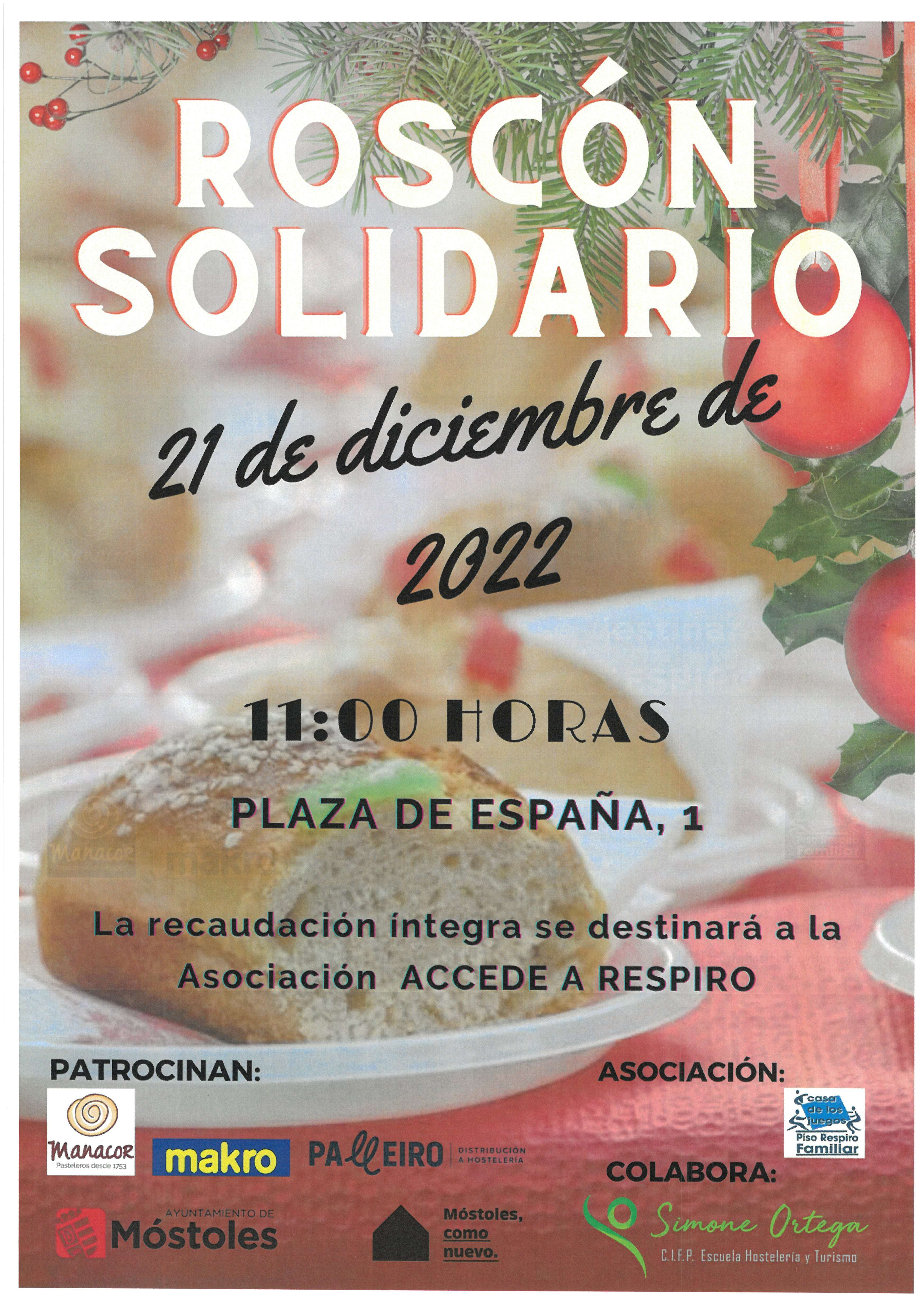 El Ayuntamiento de Móstoles organiza mañana 21 de diciembre a las 11:00 h, en colaboración con la Escuela de Hostelería y Turismo Simone Ortega, la degustación del tradicional roscón solidario de Navidad en la Plaza de España. Los fondos que se recauden con las aportaciones de los participantes serán destinados a la Asociación Accede a Respiro.