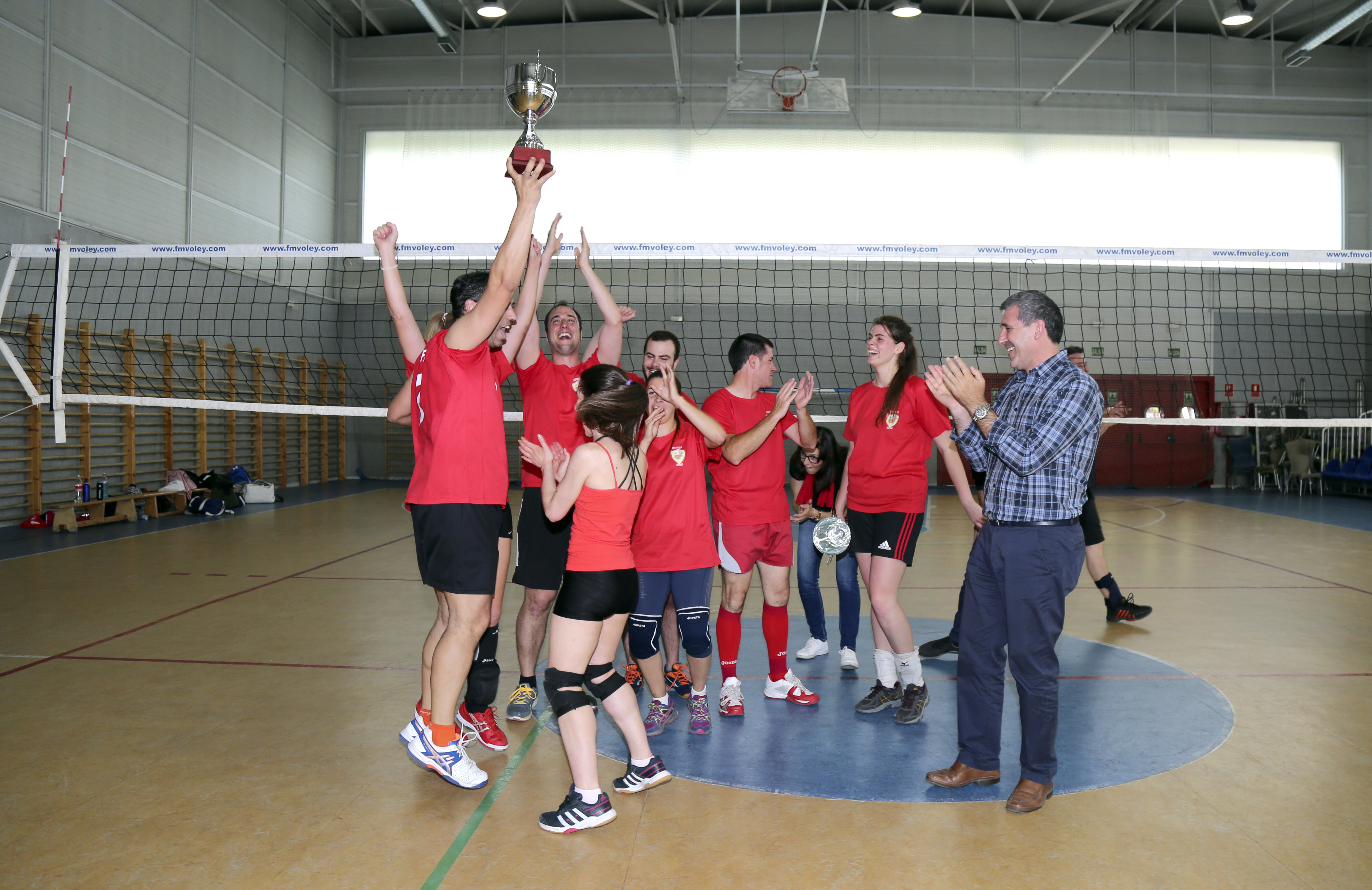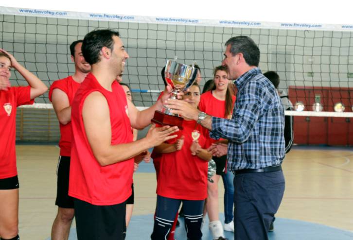 Imagen en alta resolución. Este enlace se abrirá mediante lightbox, puede haber un cambio de contextoEl pasado sábado 28 de mayo, se celebró en el pabellón La Loma la final de copa correspondiente a la competición de voleibol mixto municipal, donde participaron 10 equipos y posteriormente la entrega de trofeos de liga y copa. La final de copa la jugaron `Águila Coja´ contra `Huevos Masacradores´, venciendo `Águila Coja´ por 2-0 en un precioso y disputado partido. El trofeo lo entregó el concejal de Cultura y Deportes, Agustín Martín.