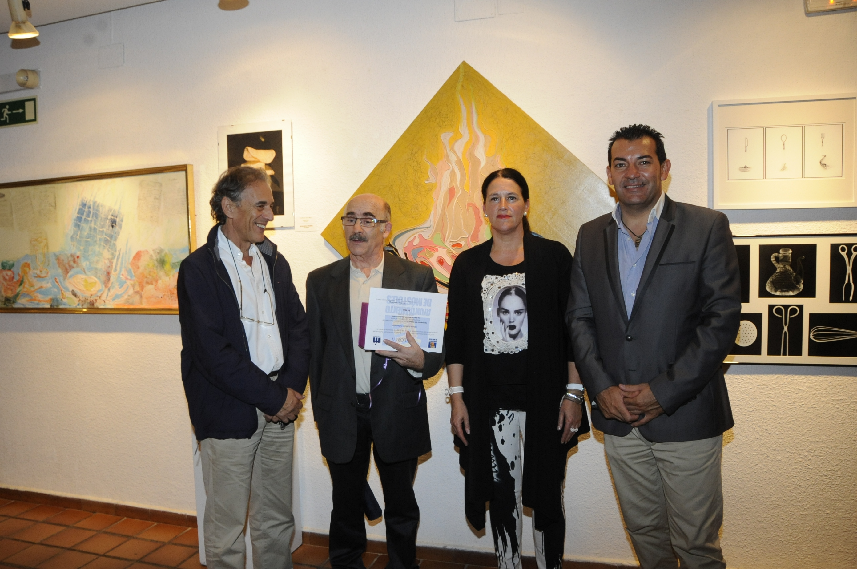 Mirina Cortés, concejal de Educación, Cultura y Promoción Turística, Jesús Díaz Raboso, director de la Escuela de Hostelería de localidad, y miembros del jurado hicieron ayer entrega en el Centro Cultural Caleidoscopio de los premios del "Certamen Local de Artes Plásticas 100x100". Así mismo, inauguraron la exposición de las obras presentadas a la XVI edición del certamen, que este año se convocó bajo el lema "LA GASTRONOMÍA. Cocina tu obra" y que se puede visitar hasta el 30 de octubre, de lunes a viernes de 9 a 21 h.