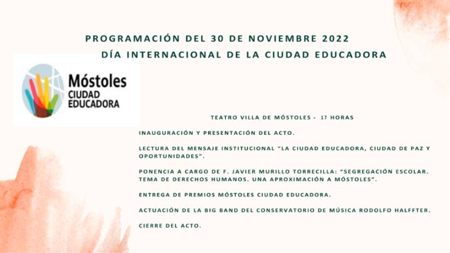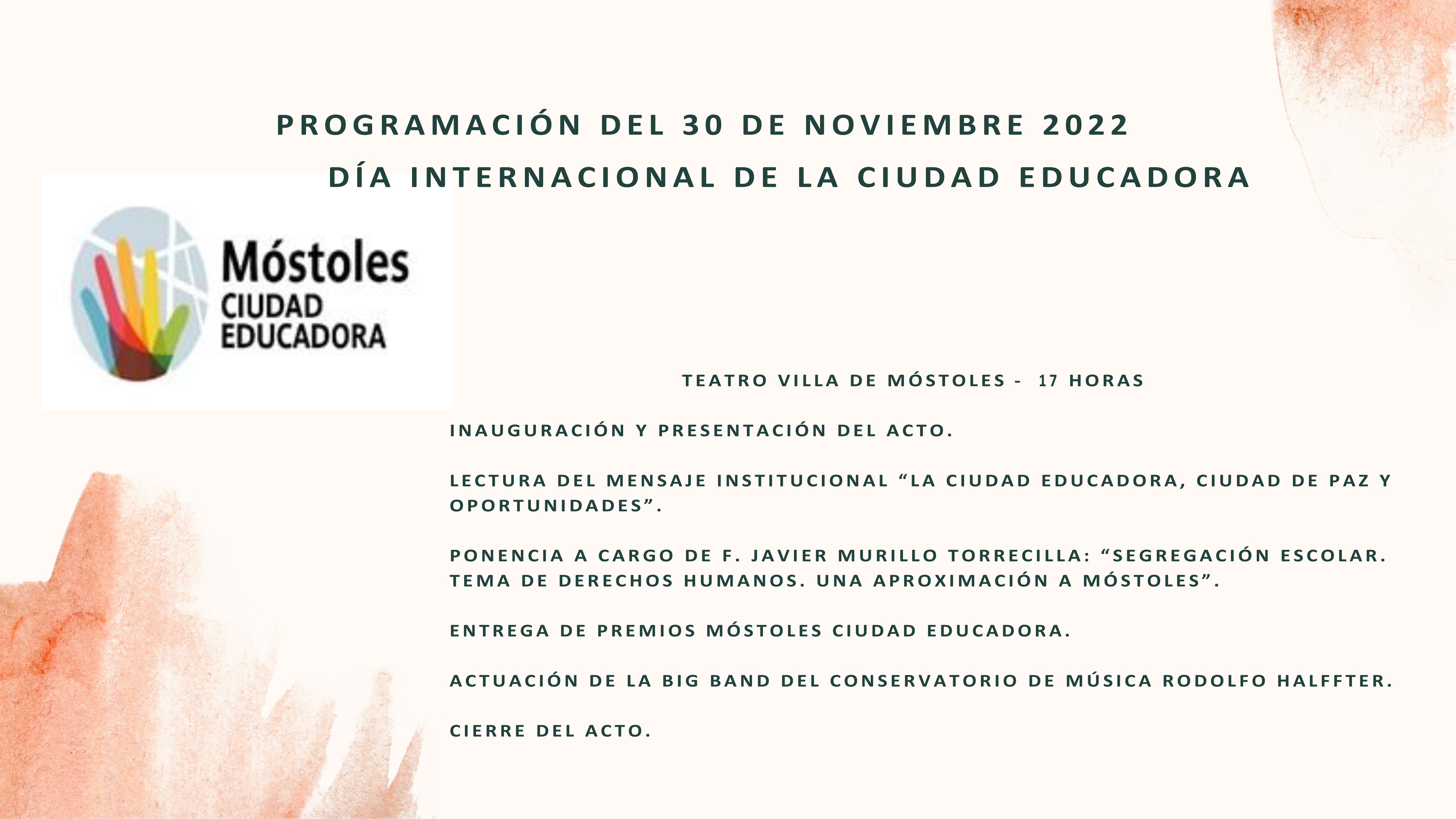 Hoy miércoles 30 de noviembre a las 17:00 h, tendrá lugar en el Teatro Villa de Móstoles la entrega de premios "Móstoles, Ciudad Educadora", que el Gobierno de Móstoles organiza con motivo del Día Internacional de las Ciudades Educadoras.