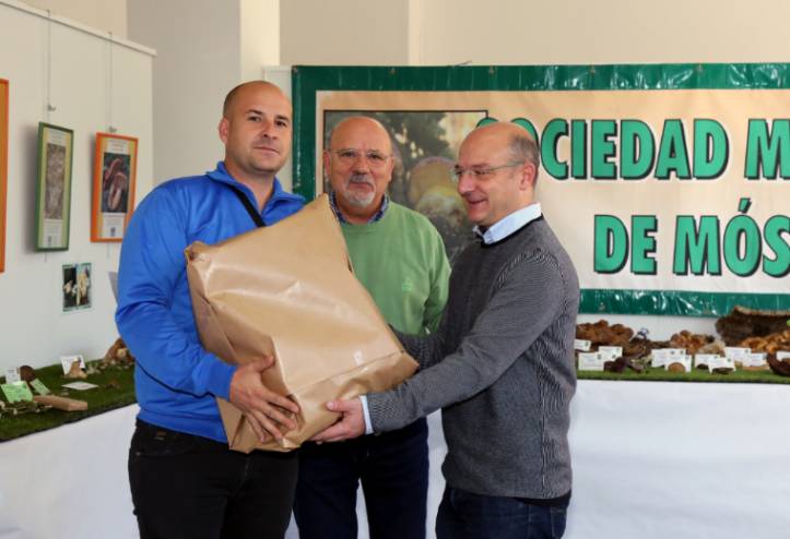 Imagen en alta resolución. Este enlace se abrirá mediante lightbox, puede haber un cambio de contextoEl concejal de Hacienda y Patrimonio, Javier Gómez, y el concejal de Medio Ambiente, Parques y Jardines y Limpieza Viaria, Miguel Ángel Ortega, asistieron este domingo a la entrega de premios del I Concurso Amateur de Fotografías de Setas. Durante el acto, celebrado en el marco de las XXIII Jornadas Micológicas, organizadas por la Sociedad Micológica y el Ayuntamiento a través de la Concejalía de Medio Ambiente, Parques y Jardines y Limpieza Viaria, con la colaboración de la Concejalía de Cultura y Bienestar Social, los ediles y presidente de la Asociación Micológica, Alejandro Alonso, hicieron entrega de los premios a Francisco Luque Merino, primer premio, y a Isidora González Gómez, segundo premio. Ambos fueron obsequiados con diversos productos relacionados con la micología.