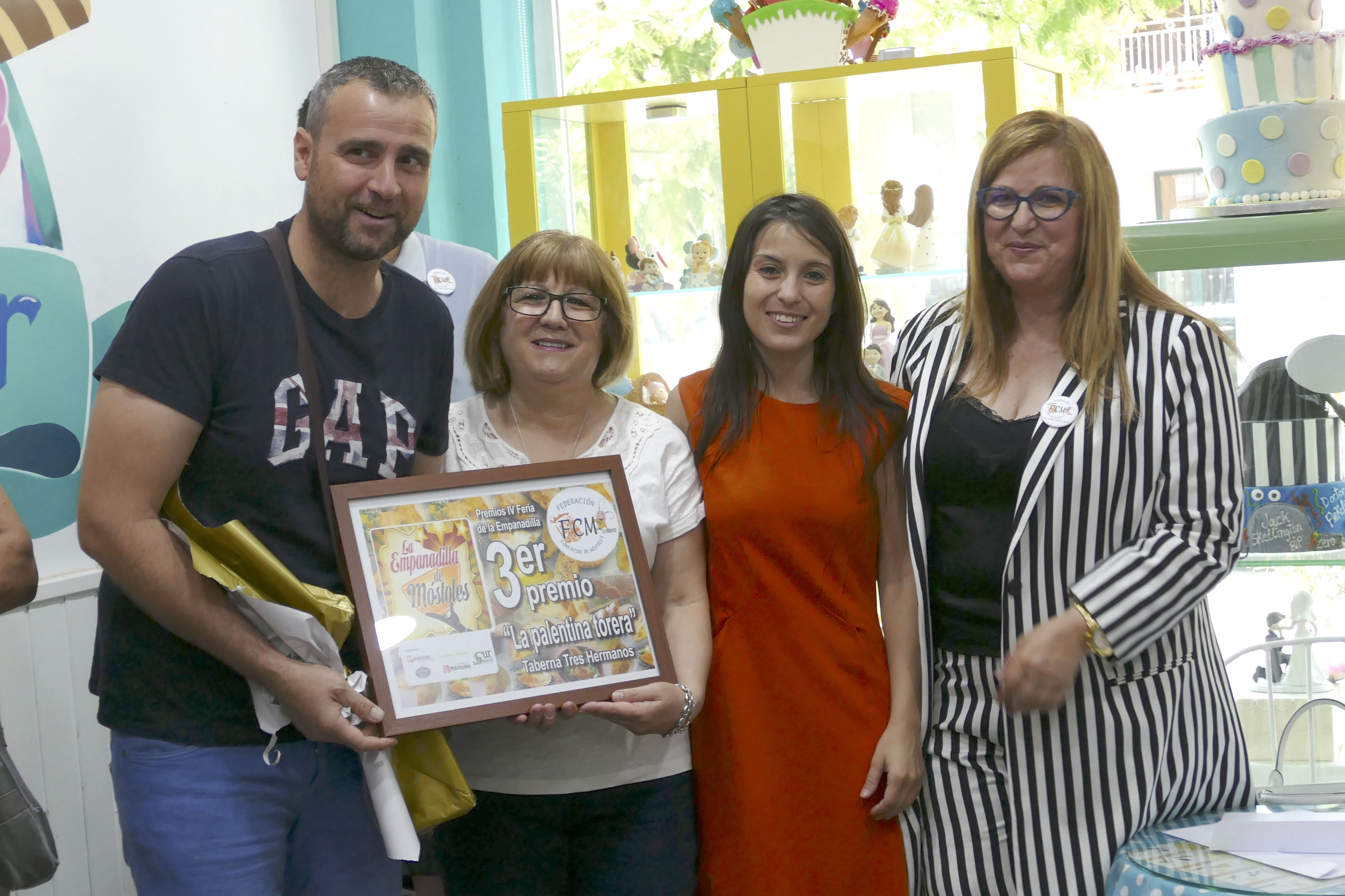 Imagen en alta resolución. Este enlace se abrirá mediante lightbox, puede haber un cambio de contextoLa concejala de Desarrollo Económico, Empleo y Nuevas Tecnologías, Jessica Antolín, y la presidenta de la Federación de Comerciantes de Móstoles, Chelo García, junto a diversos patrocinadores del evento, han hecho entrega esta mañana de los premios de la "IV Feria de la Empanadilla de Móstoles", en el restaurante Dulce Hogar.