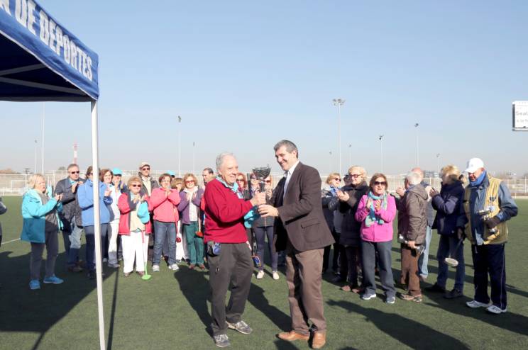 Agustín Martín, concejal de Cultura, Festejos y Deportes, asistió a la entrega de trofeos del Torneo de Ground Golf de Navidad que se ha desarrollado esta mañana en los campos de Iker Casillas de Móstoles.