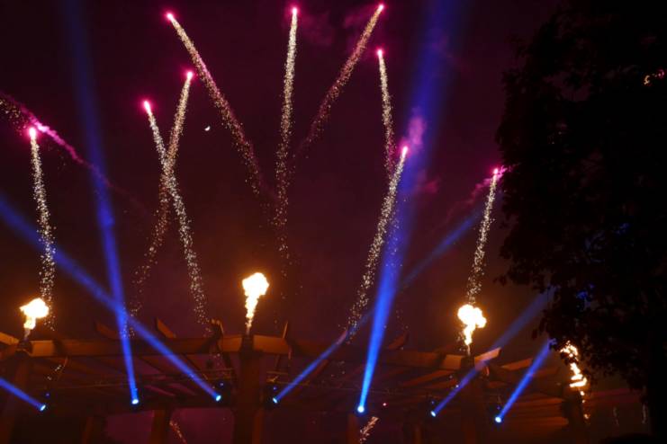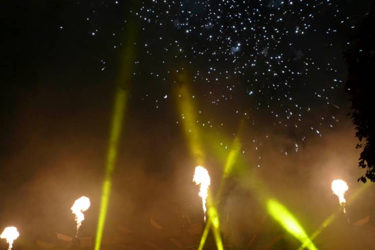 Este espectáculo a cargo de Focs d´Artifici Europlá,que se ha representado por segundo año consecutivo lleno de luces, sonidos, fuego y pirotecnia, se desarrolló sobre el negro manto de la noche, ofreciendo de este modo un fantástico cuadro de características multicolores, que evocó en el espectador sentimientos y emociones de serena felicidad.
