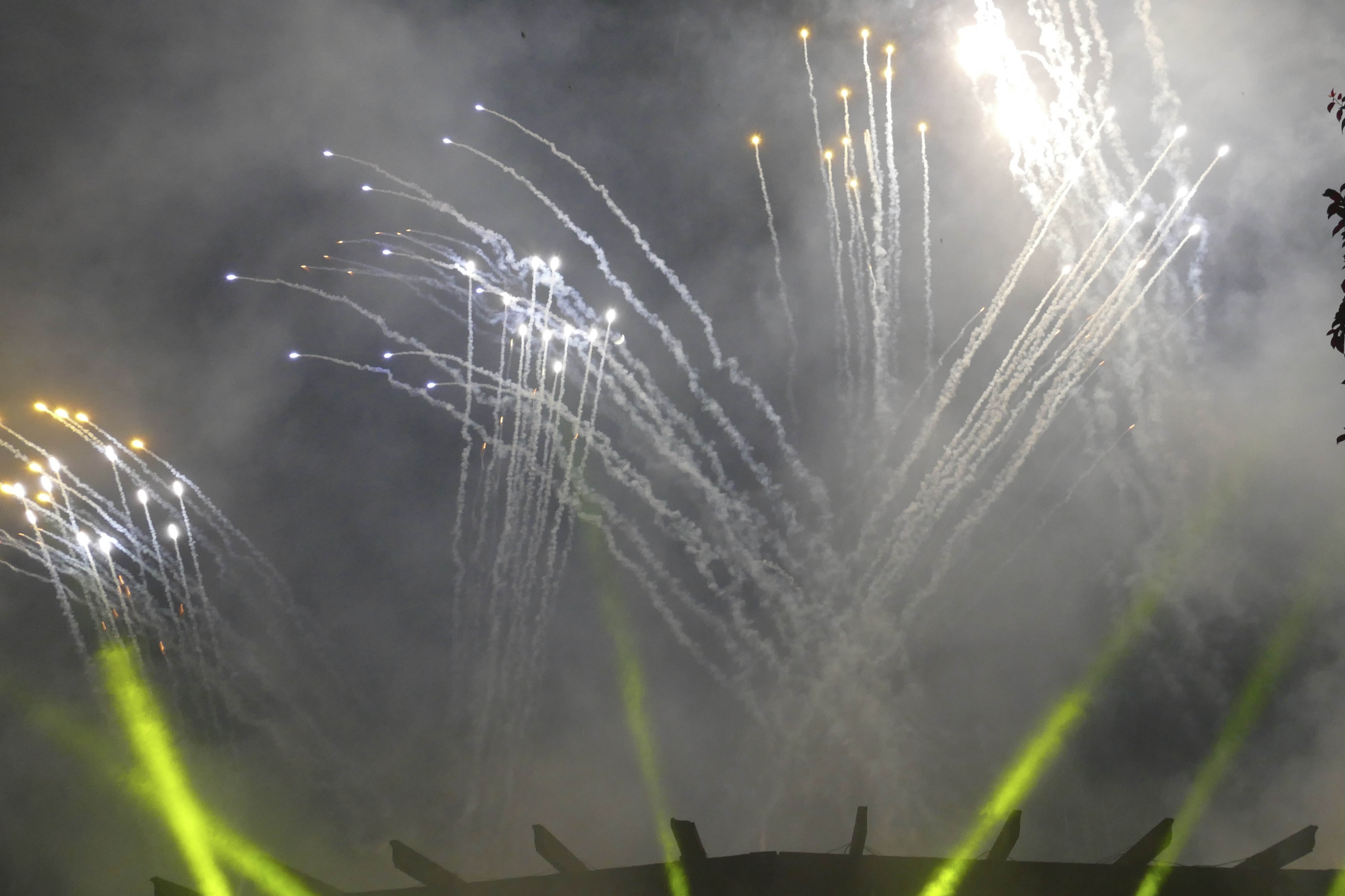 Se lanzaron, en total, 98,26 kilos de pólvora, 919 artificios y 3.643 unidades pirotécnicas que, combinados con danza y focos de luz, emocionaron a los más de ocho mil vecinos y vecinas asistentes.