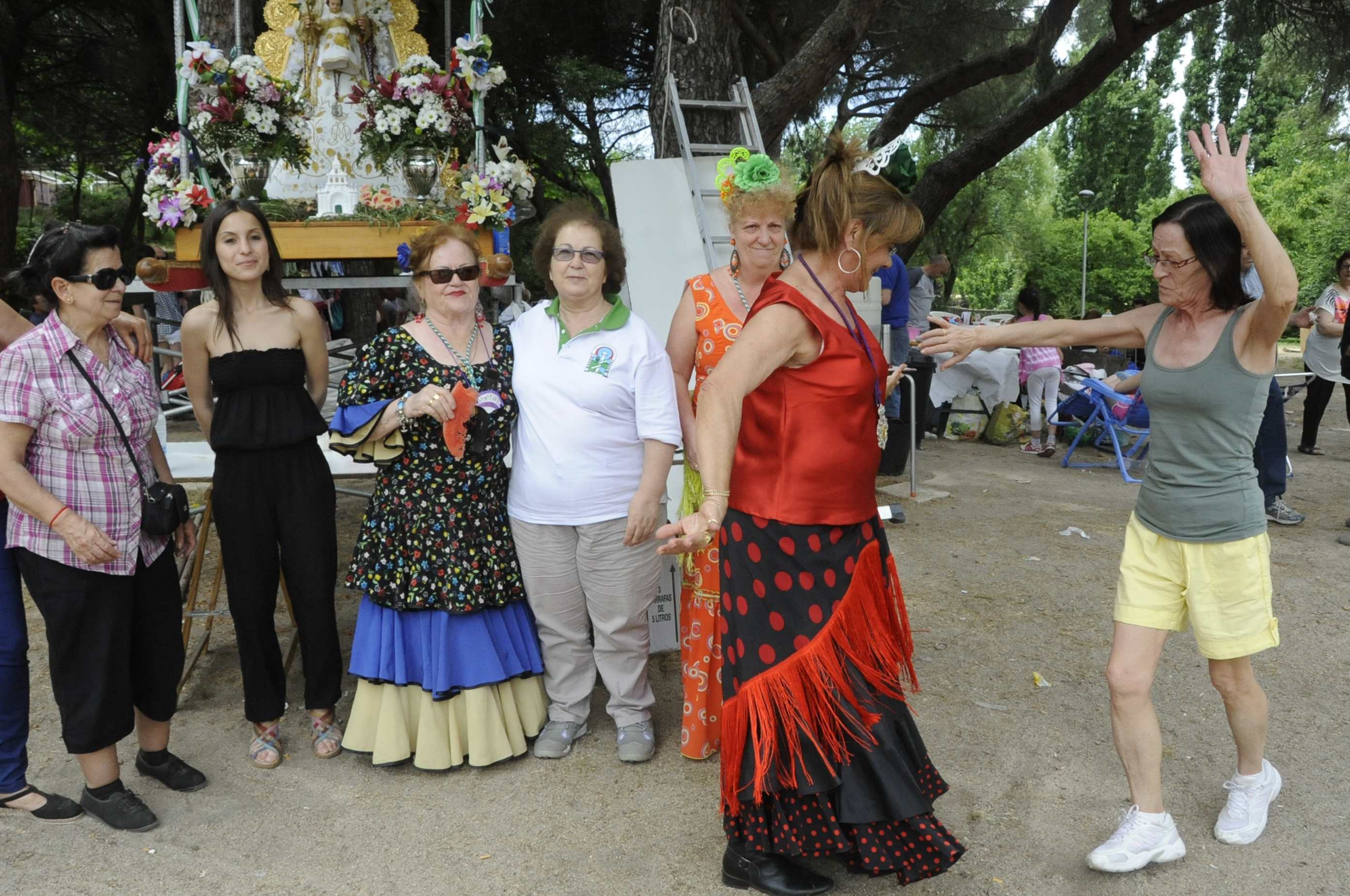 Imagen en alta resolución. Este enlace se abrirá mediante lightbox, puede haber un cambio de contextoEl parque natural del Soto fue escenario este fin de semana como en otros años de la Romería Rociera, que ya ha cumplido 27 años, organizada por el Centro Regional de Andalucía. Una fiesta con la que se suman a la multitudinaria peregrinación al Rocío en Almonte (Huelva), una de las romerías más famosas que reúne a millones de peregrinos de todas las partes del mundo para realizar un trayecto a pie, a caballo o en carretas hasta llegar a su destino, la Ermita del Rocío. A continuación los rocieros de Móstoles han iniciado su tradicional romería que concluye en el Parque Natural El Soto, con un almuerzo y diversas actividades, deteniéndose previamente en Finca Liana y en la iglesia de El Soto. Numerosos rocieros, con asistencia de la primera teniente de alcalde, Jessica Antolín Manzano y la concejala de Bienestar Social, Sanidad e Igualdad, Ana María Rodrigo, han acudido a esta cita campera, ilusionados con la idea disfrutar de una festiva jornada de convivencia en honor a su virgen. La Hermandad del Rocío de Móstoles, fundada en 2008, cuenta en la actualidad con 330 miembros que a lo largo del año celebran diversas actividades en honor a su virgen.