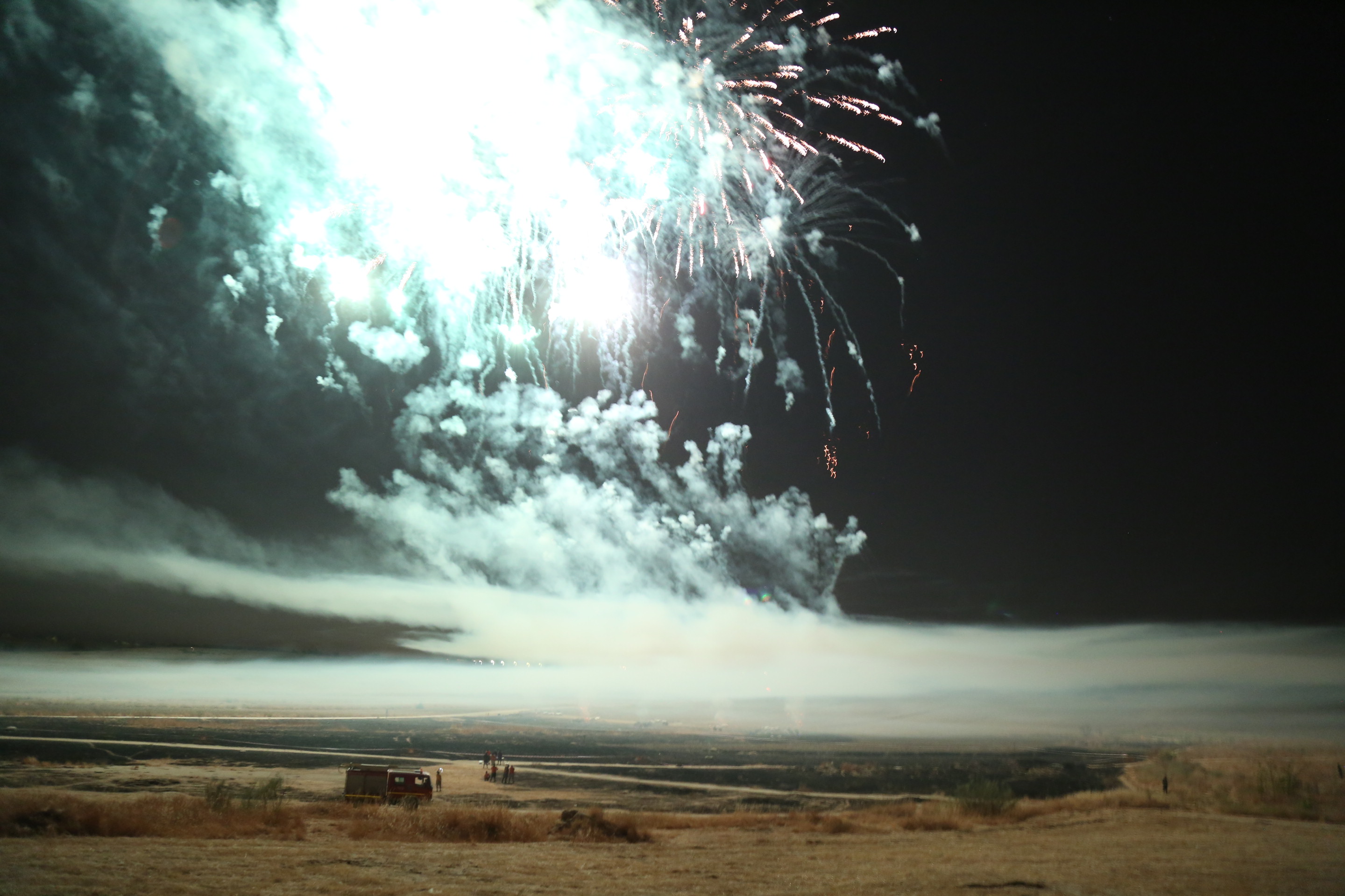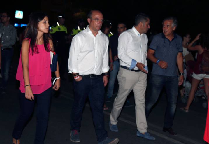 El Alcalde, David Lucas, junto a Roberto Sánchez, concejal de Presidencia, Seguridad Ciudadana, Movilidad y Comunicación, Jessica Antolín, concejala de Desarrollo Económico, Empleo y Nuevas Tecnologías, Noelia Posse, concejala de Obras, Infraestructuras, Mantenimiento de Vías Públicas y Festejos, Ana María Rodrigo, concejala de Igualdad, Sanidad y Mayores y Javier Gómez, concejal de Hacienda y Patrimonio, y los representantes de las peñas asistieron anoche al espectáculo de luz y color en forma de fuegos artificiales, que se celebró en los alrededores del Polideportivo El Soto y que se pudo contemplar desde Finca Liana. En la quema de los fuegos se han utilizado cerca de 1.200 kilos de pólvora.